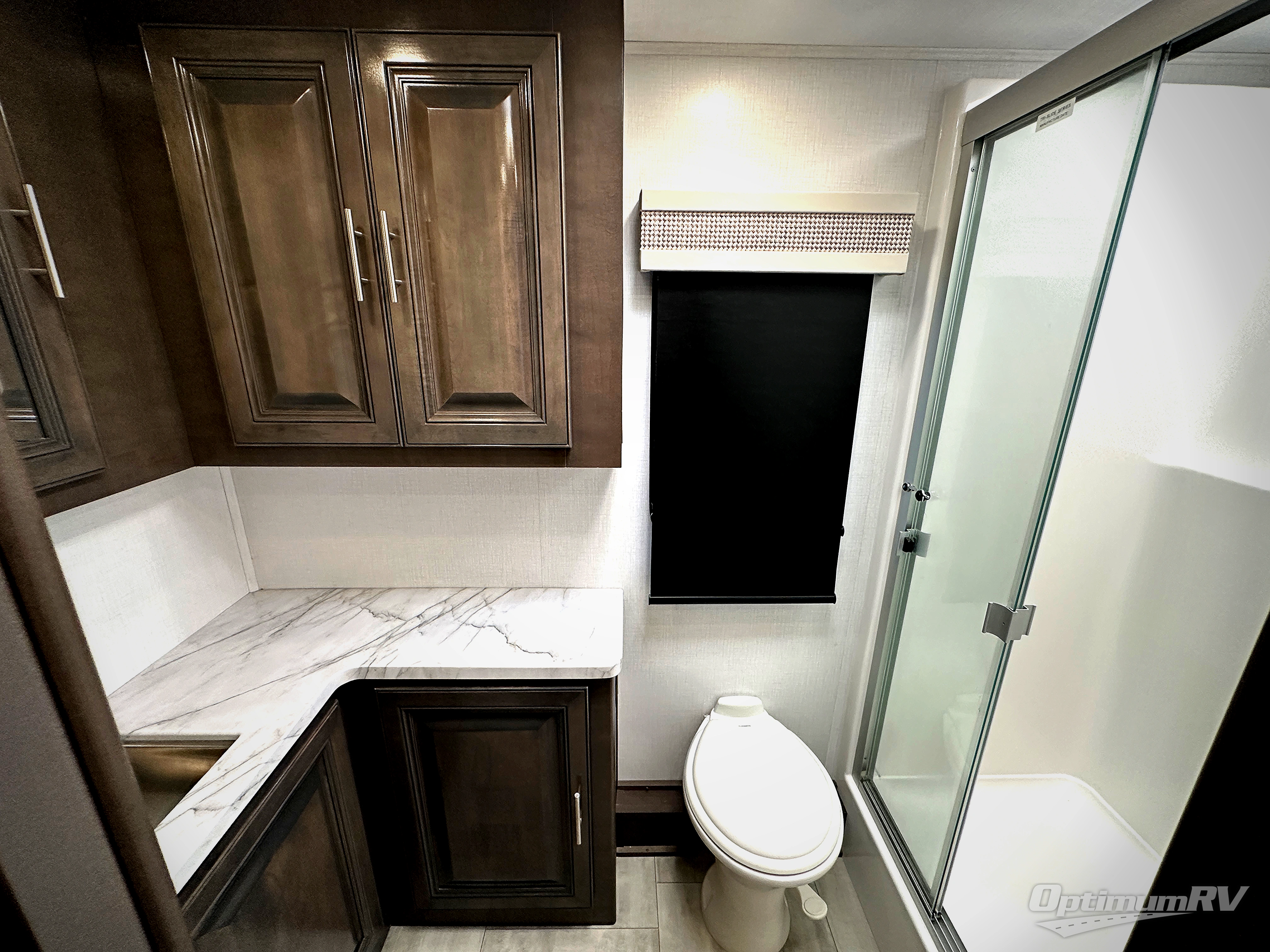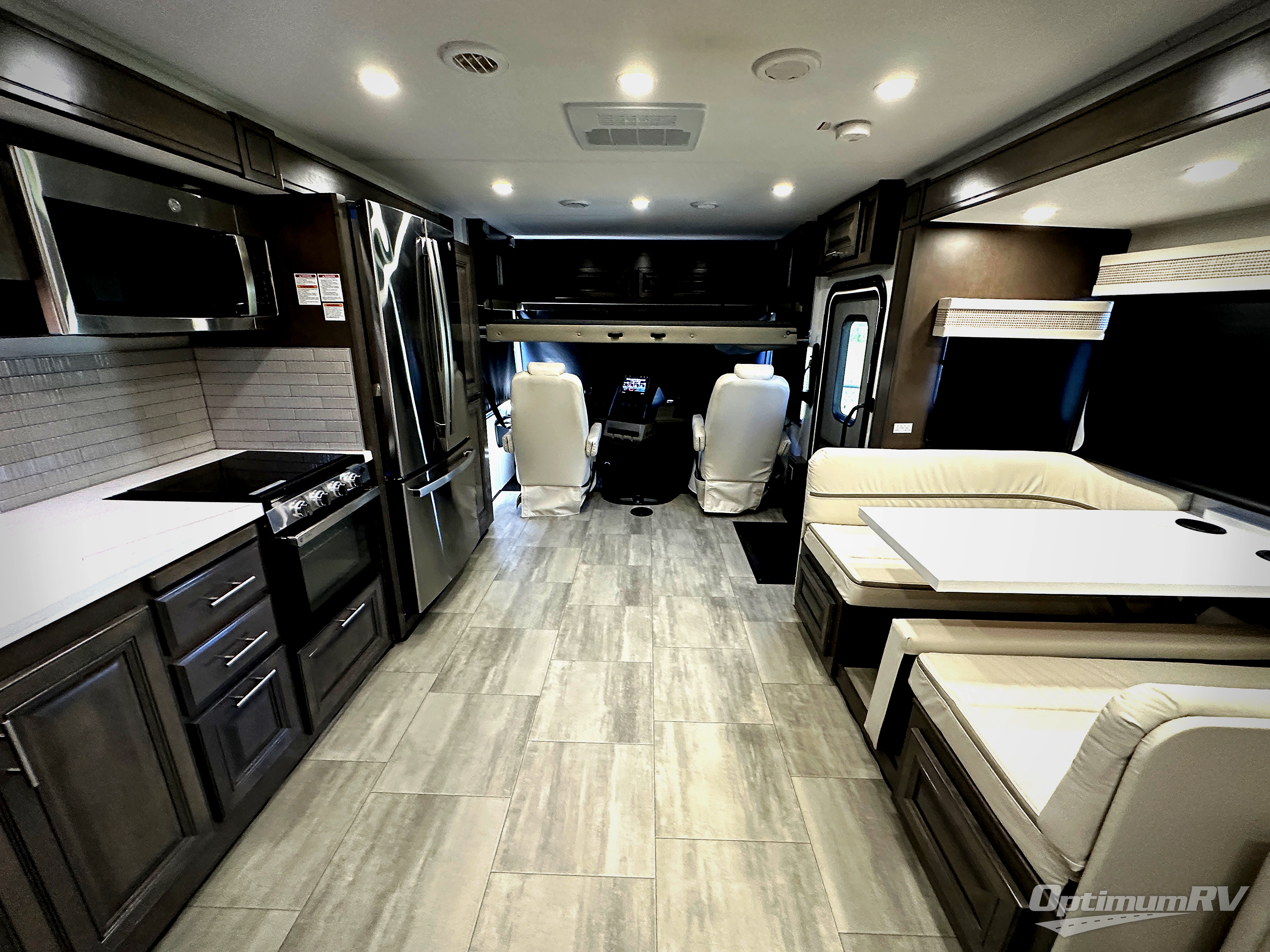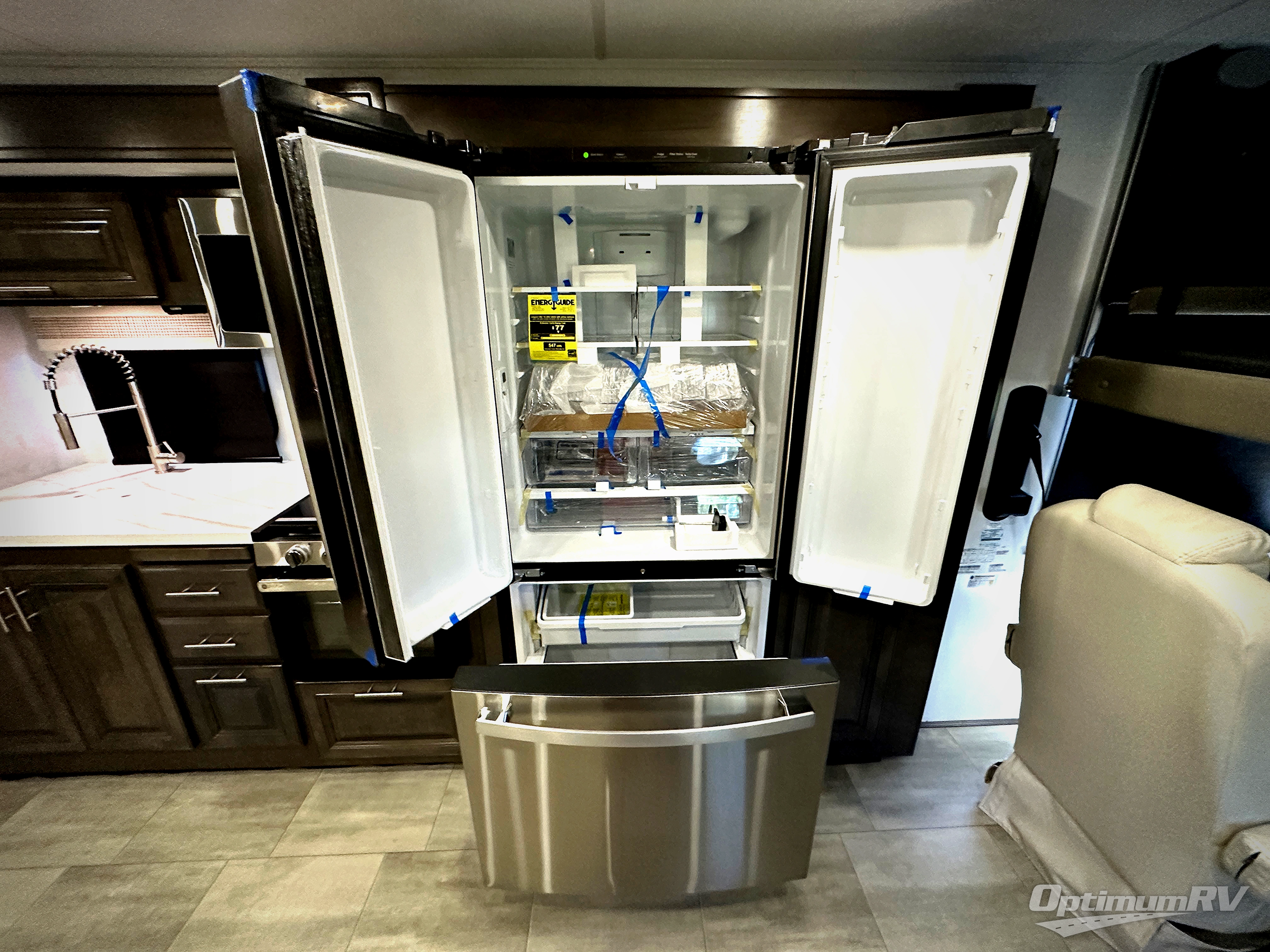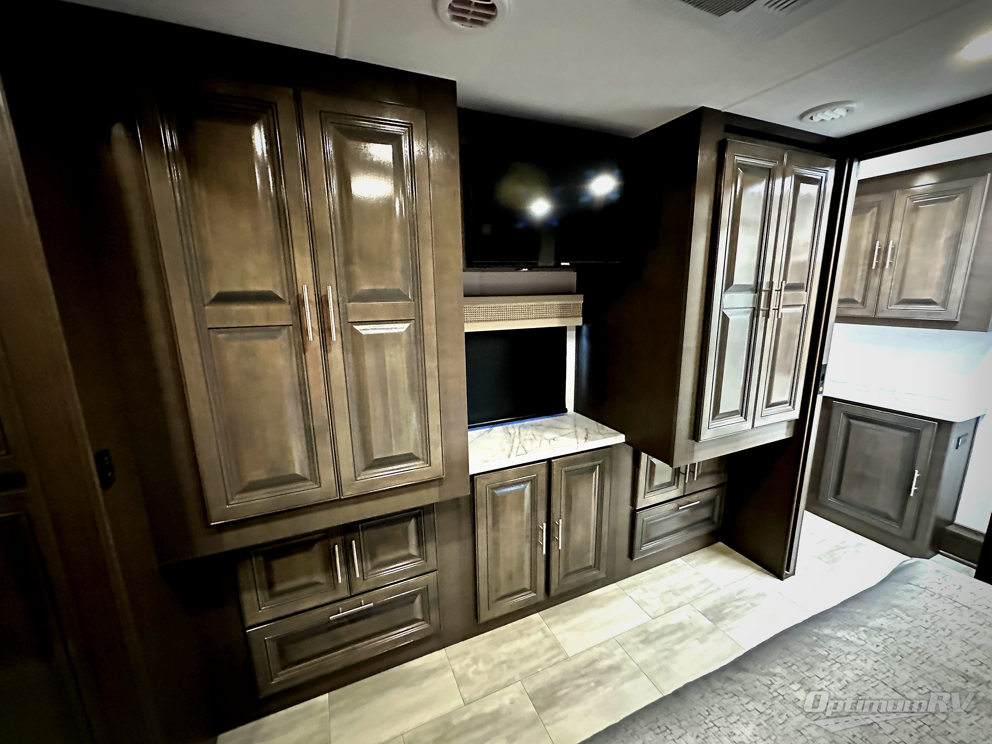 Three slides help to open up this motorhome! The kitchen slide features all of your essentials for cooking delicious meals and you even have a hutch with overhead cabinets to store all of your dishes. The Dream Dinette and Thomas Payne theater seating slide not only open up the living area, but also provide comfortable places to eat meals and unwind in front of the 5,000 BTU fireplace and 40" LED TV after a long day of traveling. The half bathroom is close to the kitchen and living area so you don't have to go far for a quick bathroom break. The master suite will have you feeling right at home with a 72" x 80" king bed slide to lay your head on at night with a dresser across from it that also has a 32" LED TV and wardrobes on either side of it with one of them with an optional washer and dryer. Plus, you even have access to the full rear bathroom which has a shower with a seat to freshen up in each morning!