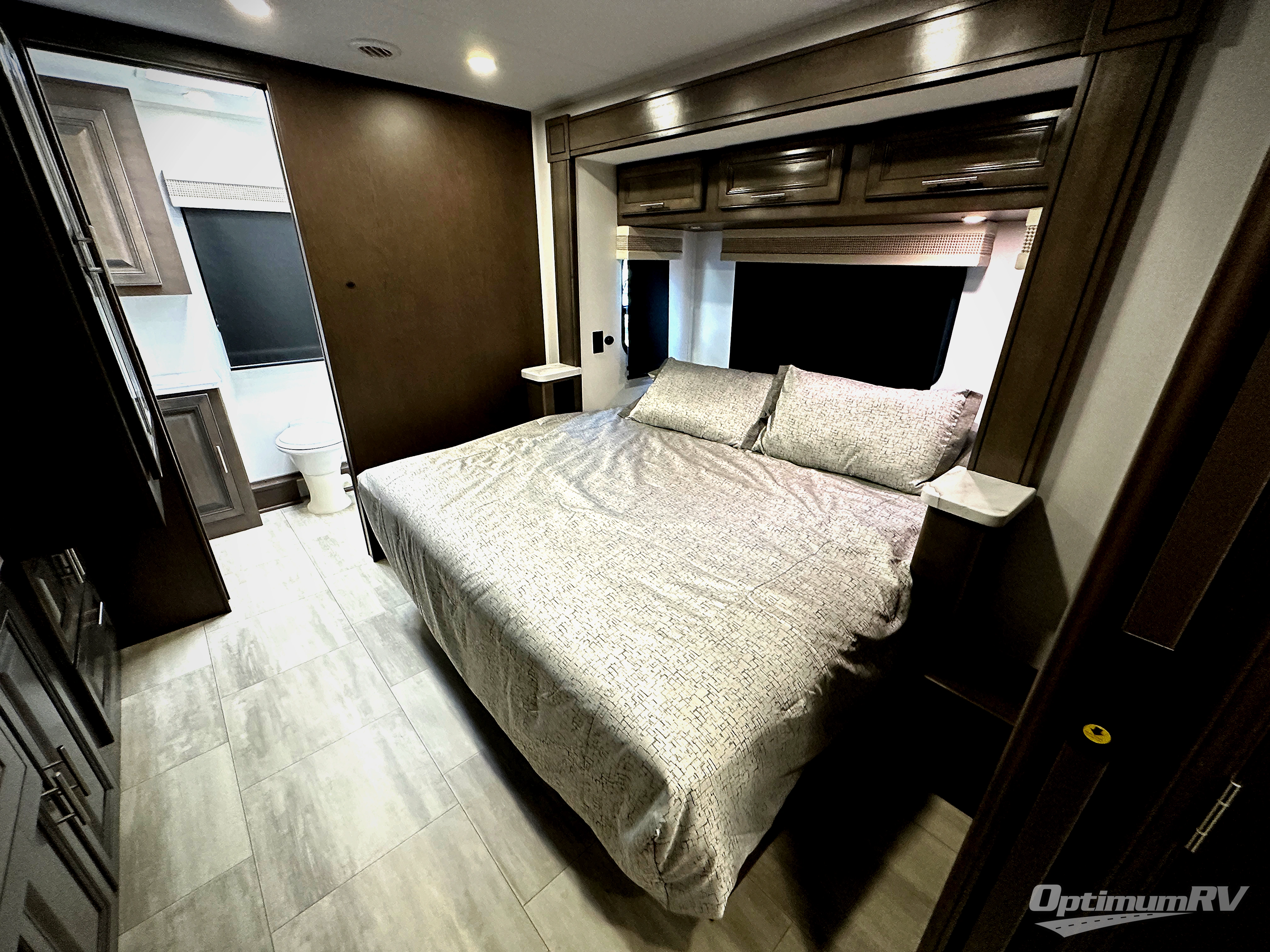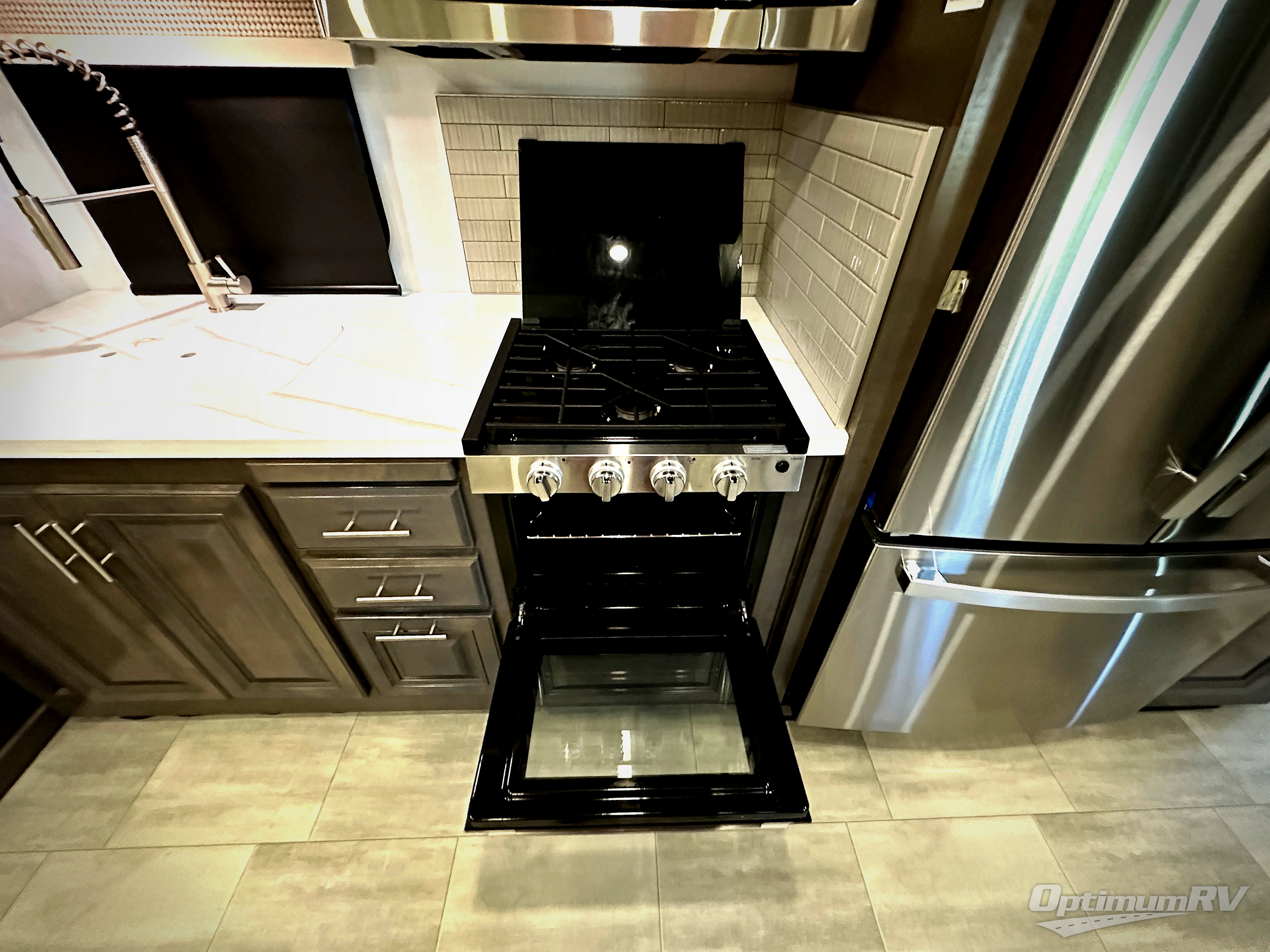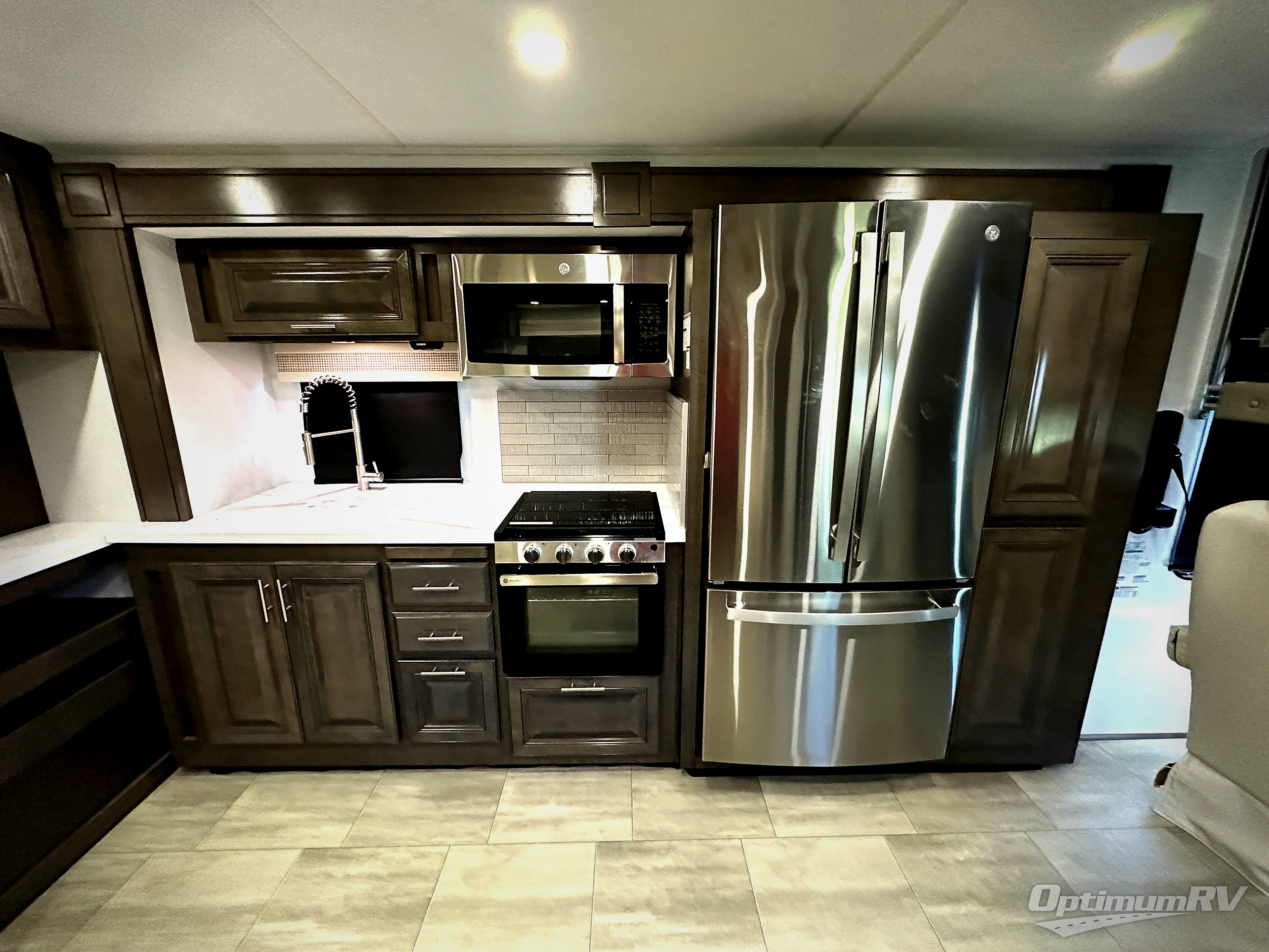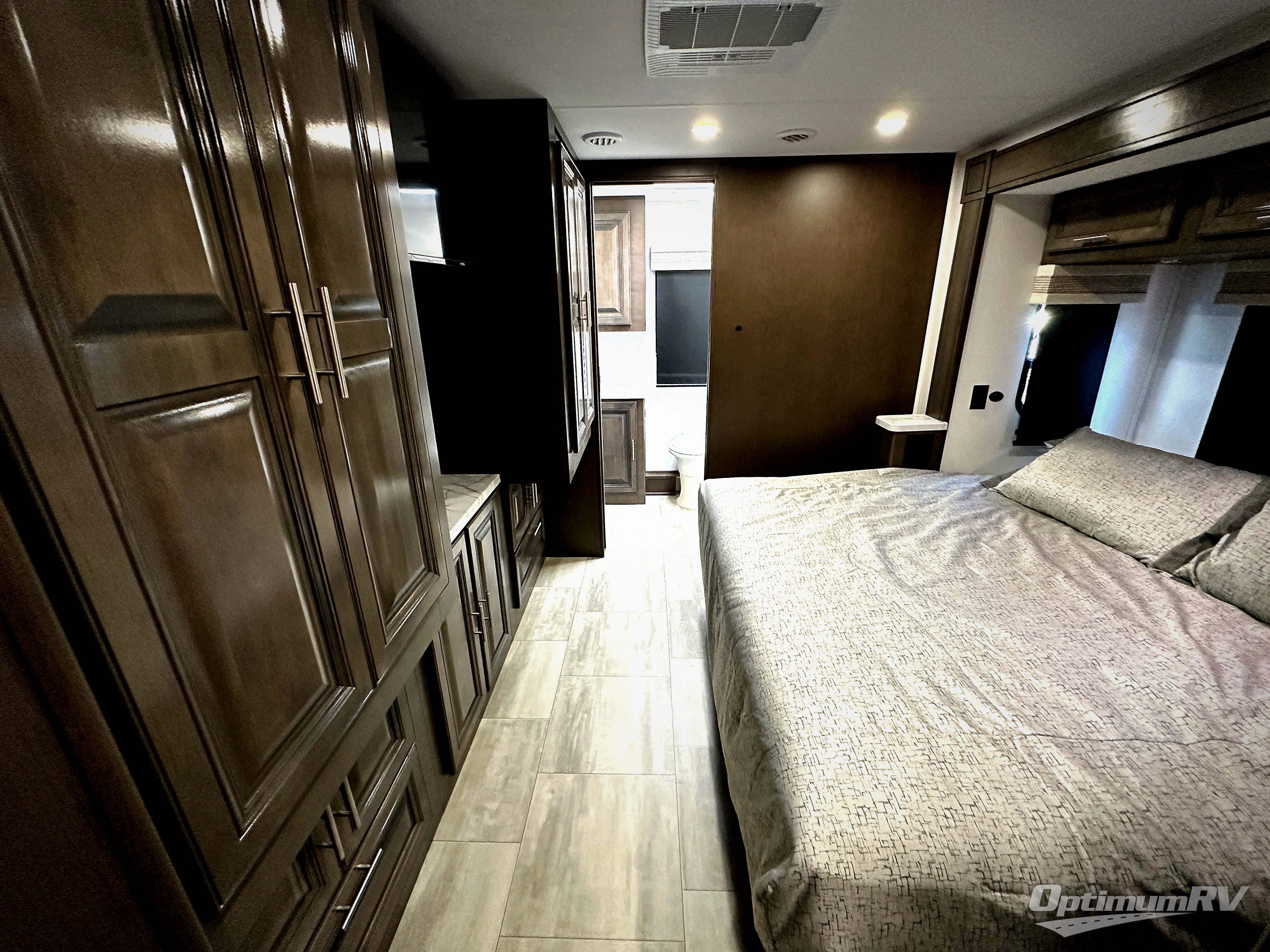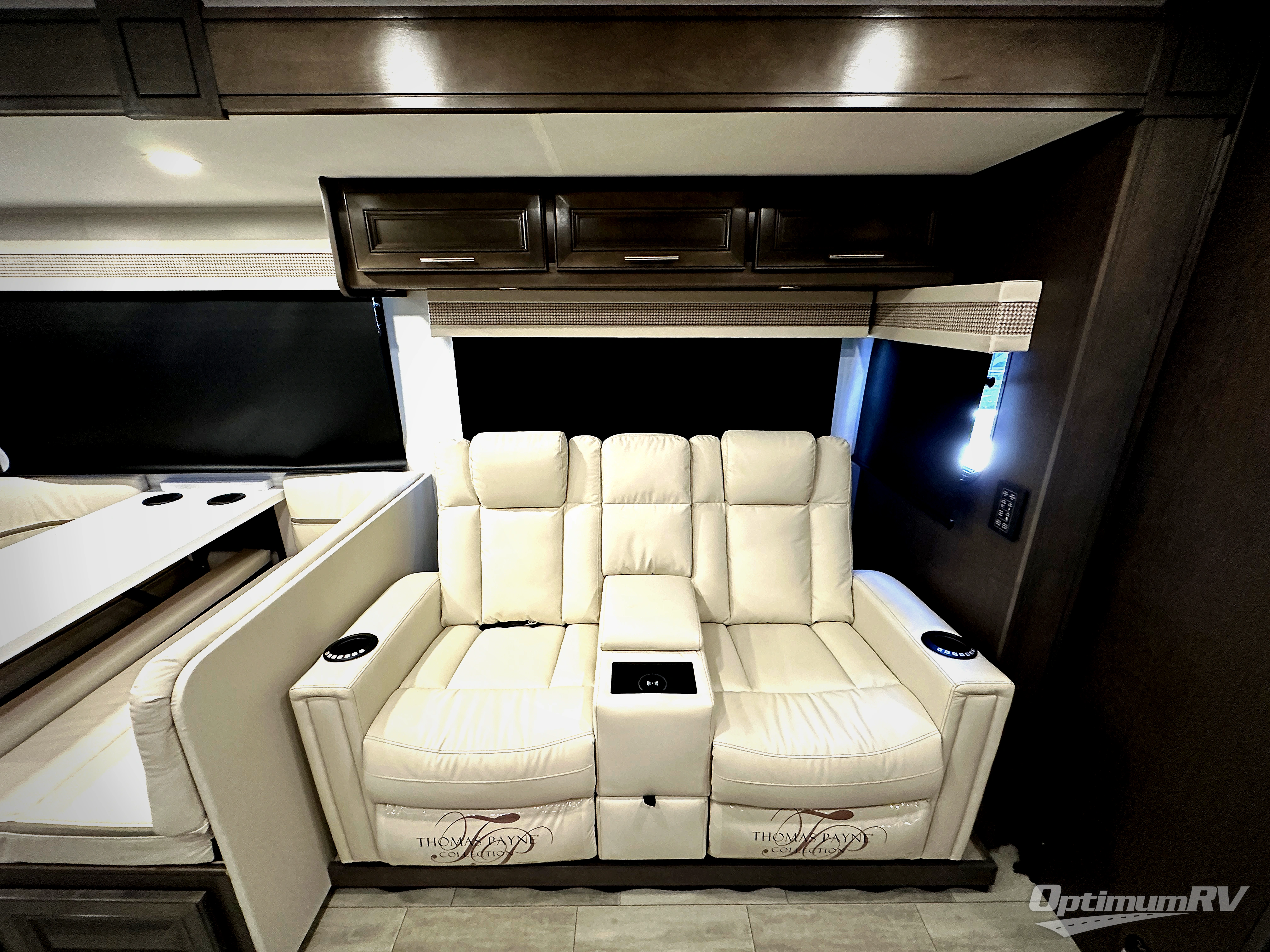 Three slides help to open up this motorhome! The kitchen slide features all of your essentials for cooking delicious meals and you even have a hutch with overhead cabinets to store all of your dishes. The Dream Dinette and Thomas Payne theater seating slide not only open up the living area, but also provide comfortable places to eat meals and unwind in front of the 5,000 BTU fireplace and 40" LED TV after a long day of traveling. The half bathroom is close to the kitchen and living area so you don't have to go far for a quick bathroom break. The master suite will have you feeling right at home with a 72" x 80" king bed slide to lay your head on at night with a dresser across from it that also has a 32" LED TV and wardrobes on either side of it with one of them with an optional washer and dryer. Plus, you even have access to the full rear bathroom which has a shower with a seat to freshen up in each morning!