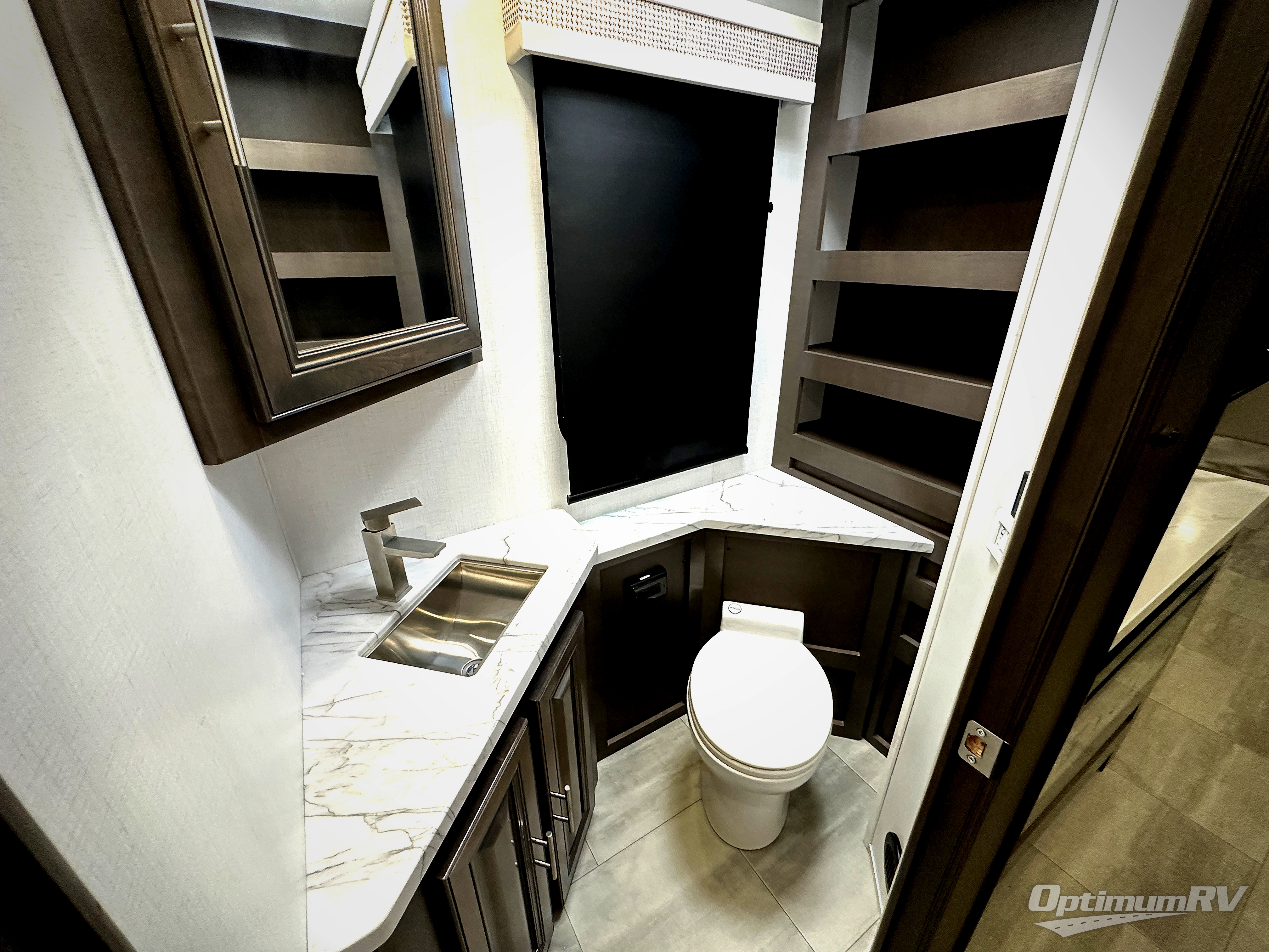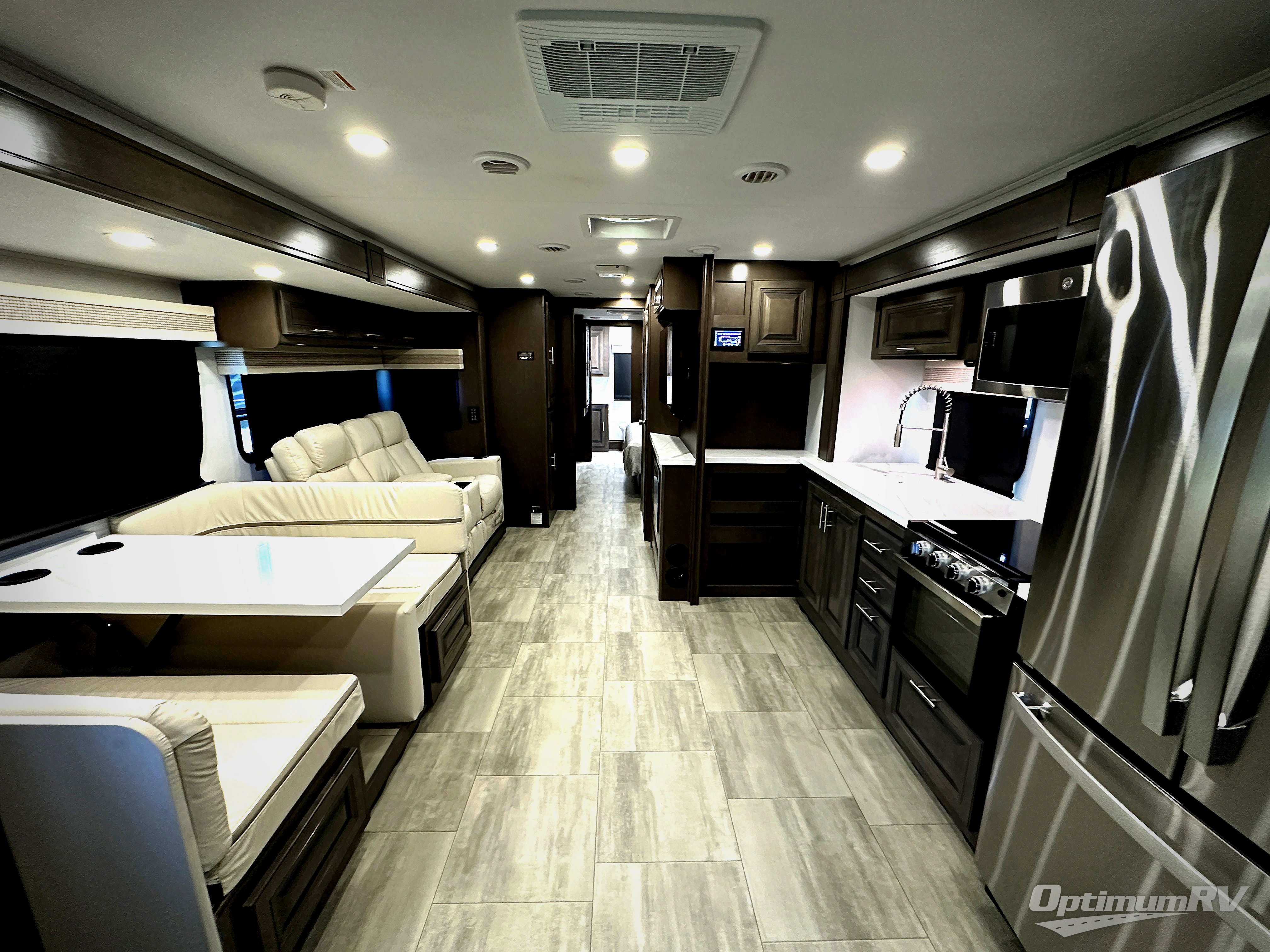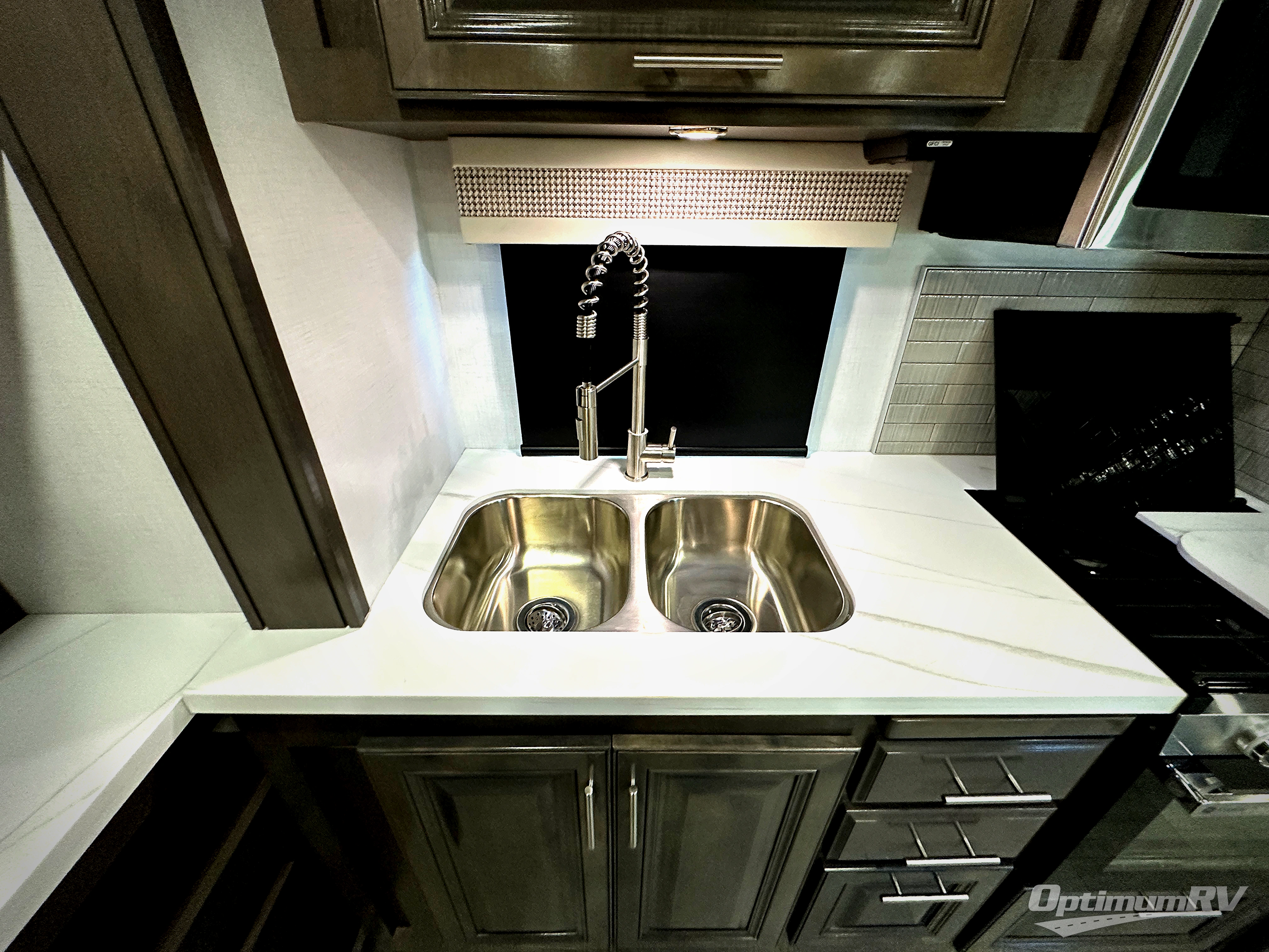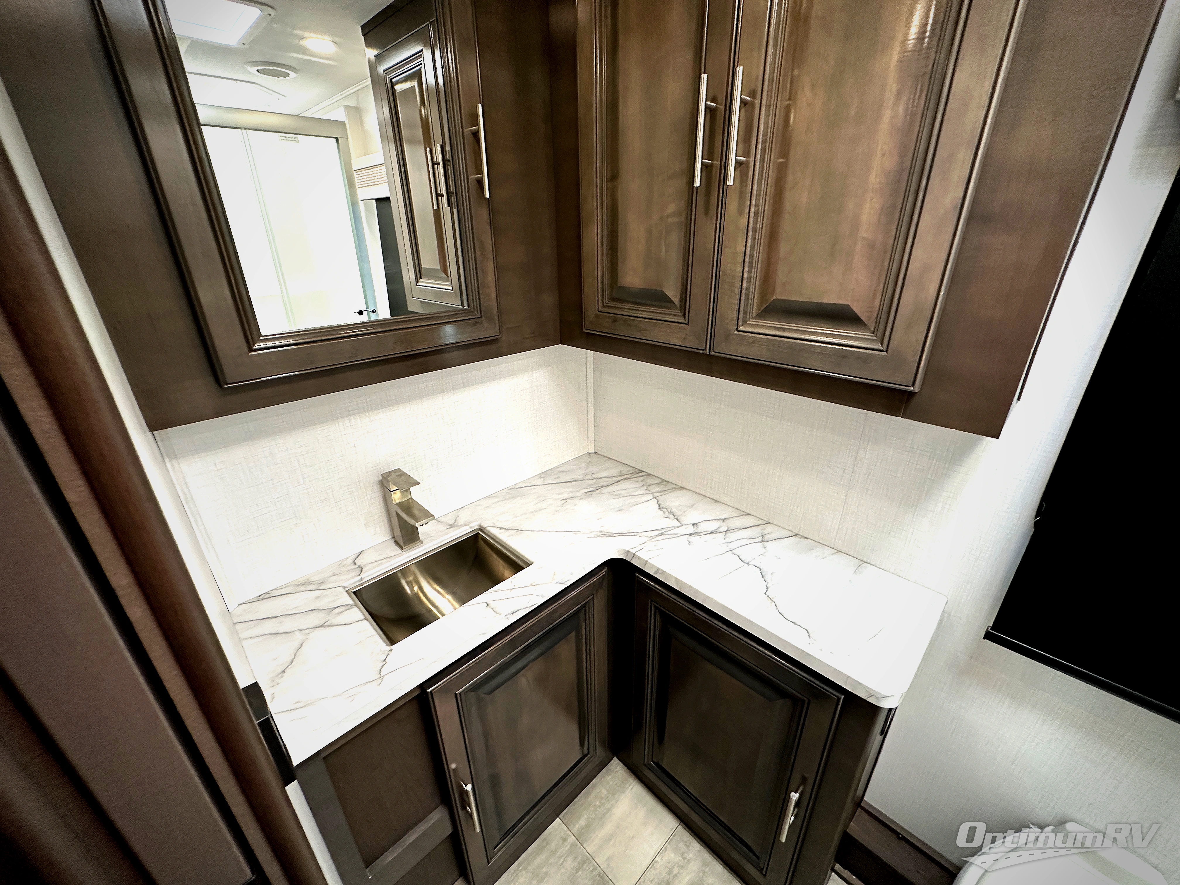 Three slides help to open up this motorhome! The kitchen slide features all of your essentials for cooking delicious meals and you even have a hutch with overhead cabinets to store all of your dishes. The Dream Dinette and Thomas Payne theater seating slide not only open up the living area, but also provide comfortable places to eat meals and unwind in front of the 5,000 BTU fireplace and 40" LED TV after a long day of traveling. The half bathroom is close to the kitchen and living area so you don't have to go far for a quick bathroom break. The master suite will have you feeling right at home with a 72" x 80" king bed slide to lay your head on at night with a dresser across from it that also has a 32" LED TV and wardrobes on either side of it with one of them with an optional washer and dryer. Plus, you even have access to the full rear bathroom which has a shower with a seat to freshen up in each morning!