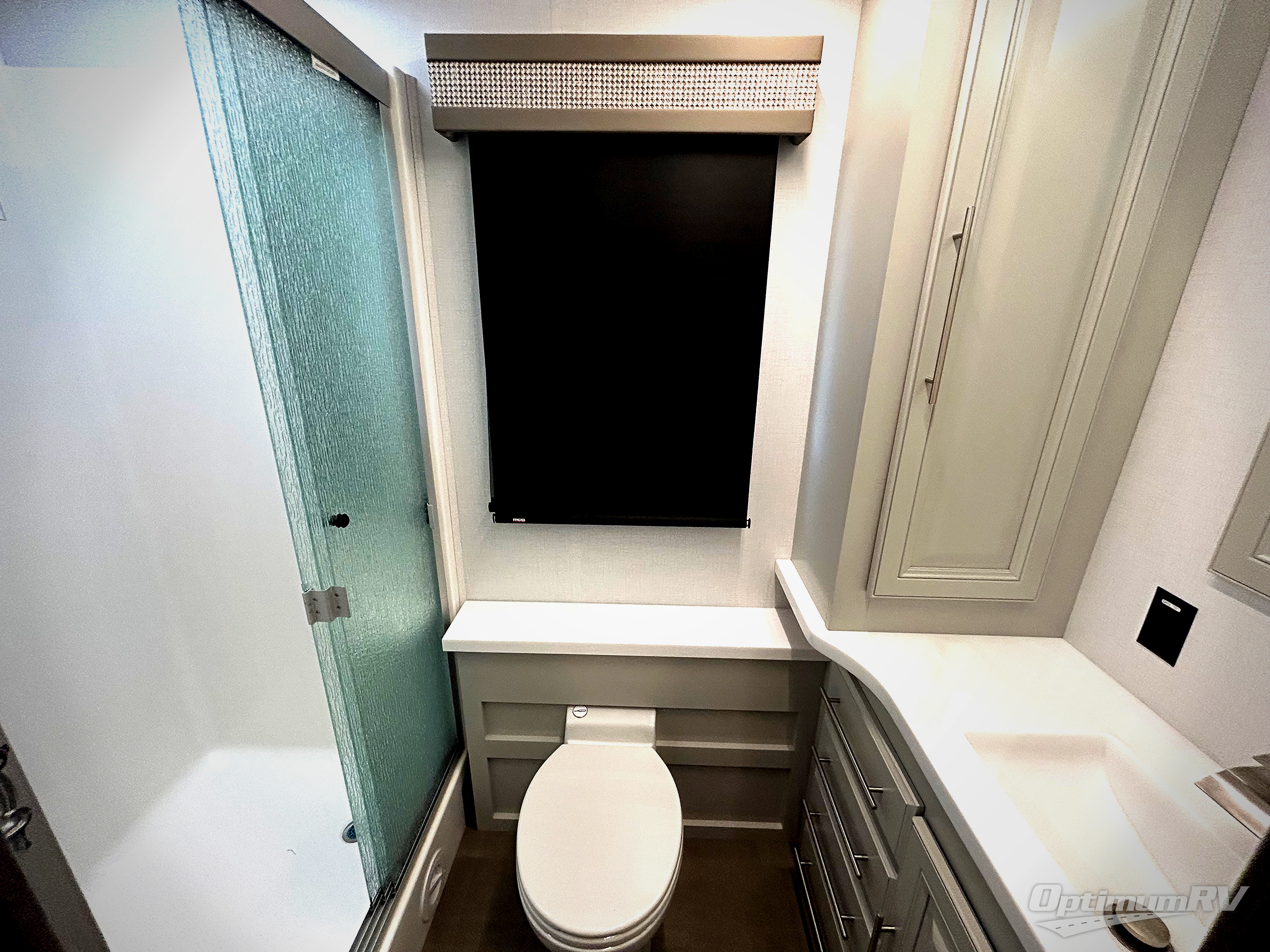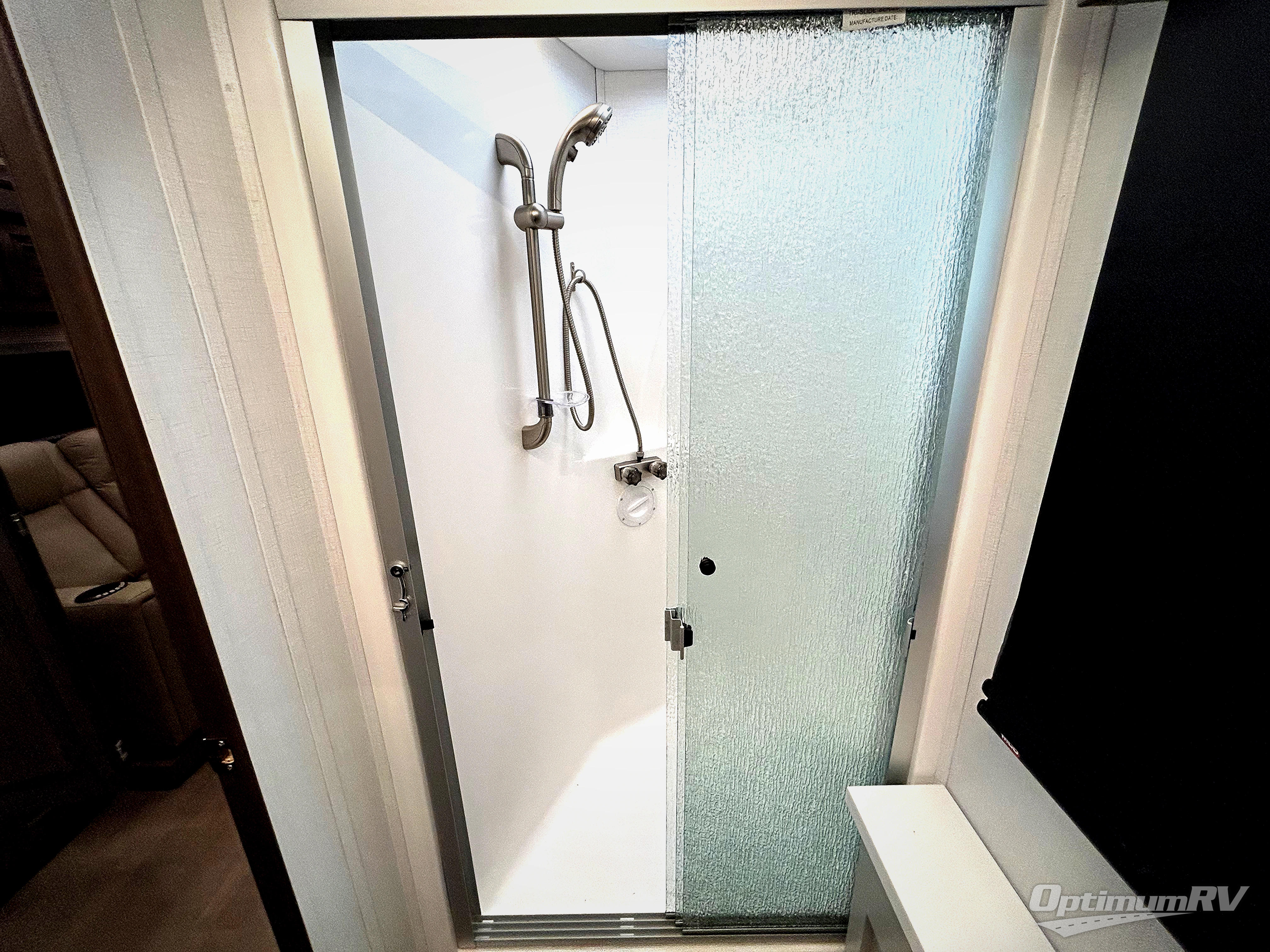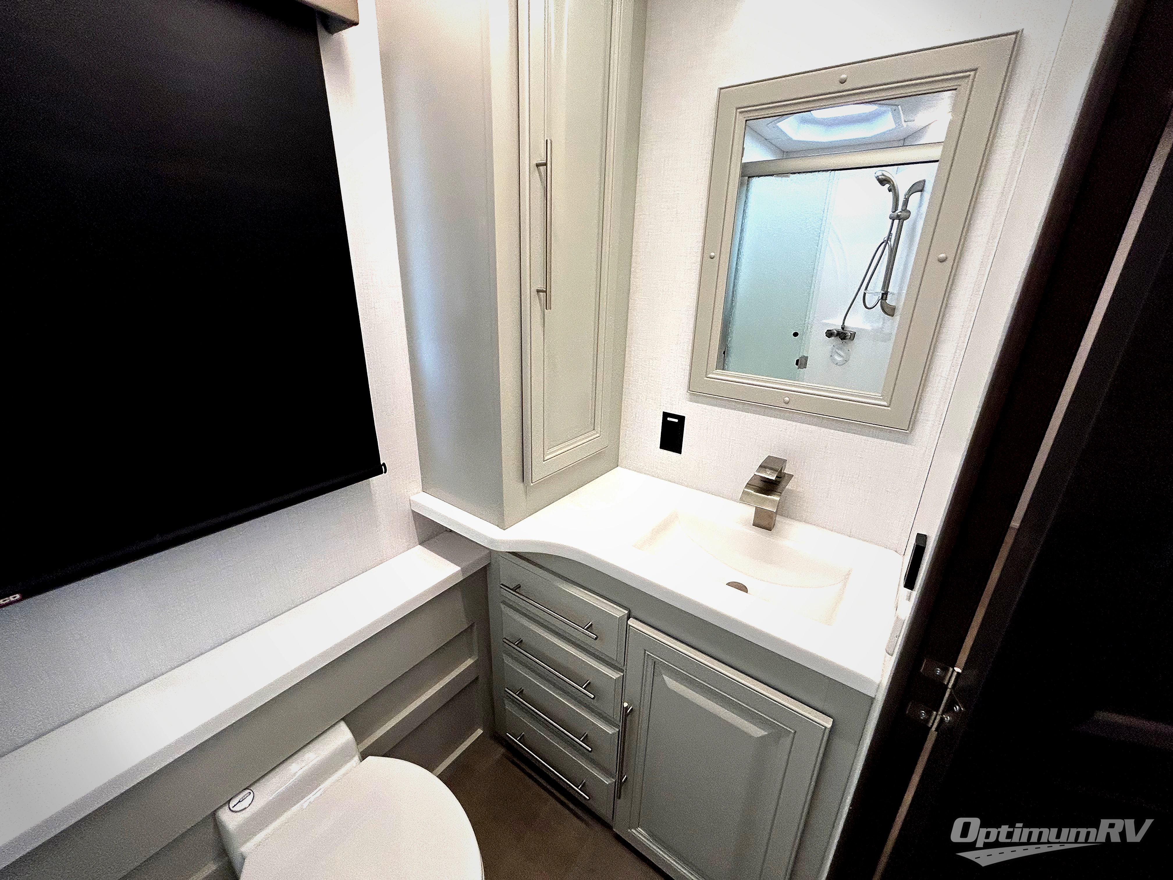 It's a clean decision to take this motorhome on all of your adventures with two full bathrooms! The full rear bathroom has a shower with a seat and creates a master suite with the bedroom which has a 72" x 80" Power Tilt king bed slide across from a dresser with a 32" LED TV and wardrobes on either side of it with one of them with washer and dryer prep. The set of bunk beds are conveniently across from the second full bathroom which will come in handy at night and keep things running smoothly in the mornings with a shower. Prepare your best home cooked meals with the three burner cooktop and enjoy them at the booth dinette then relax on the theater seating!