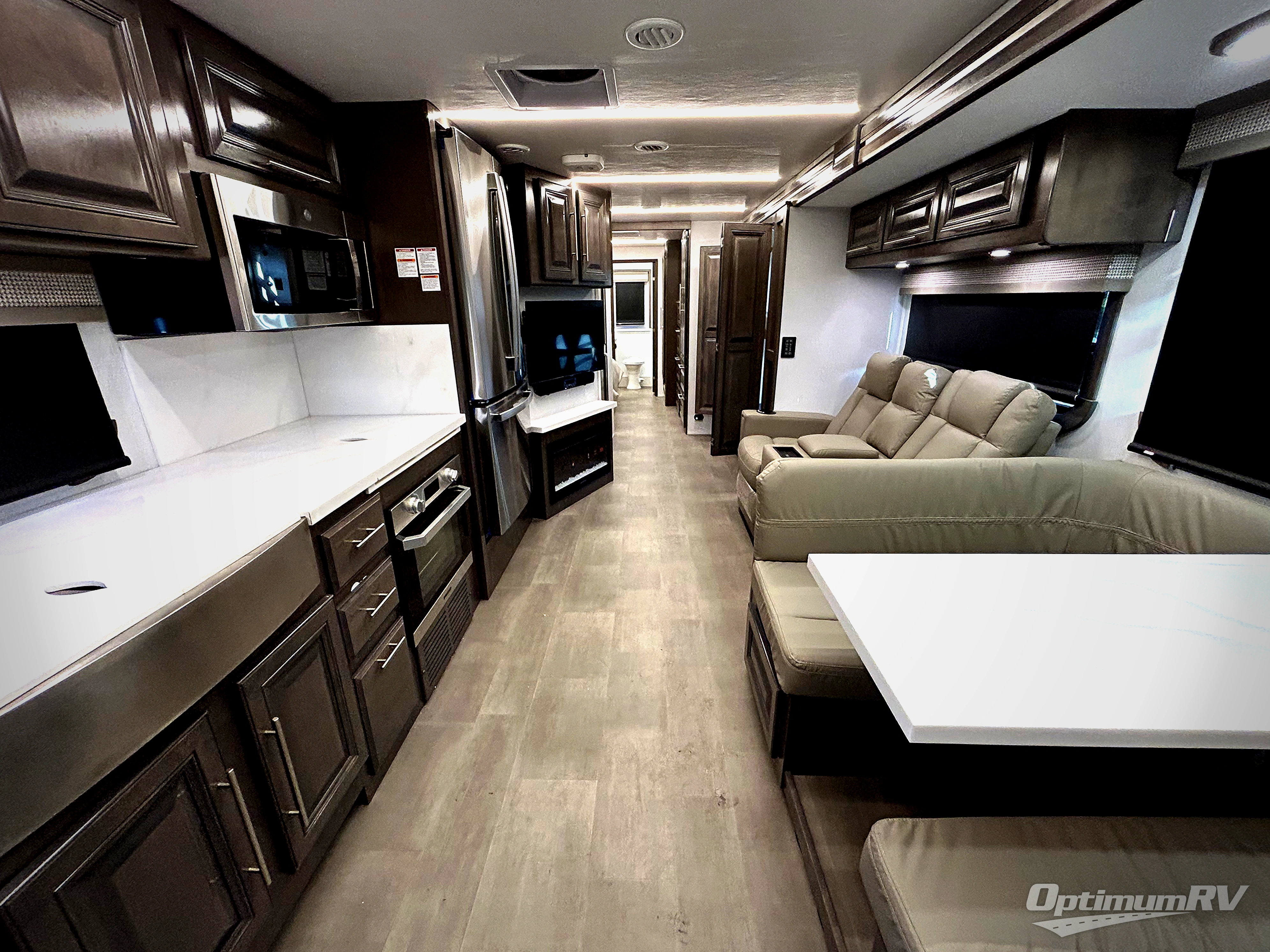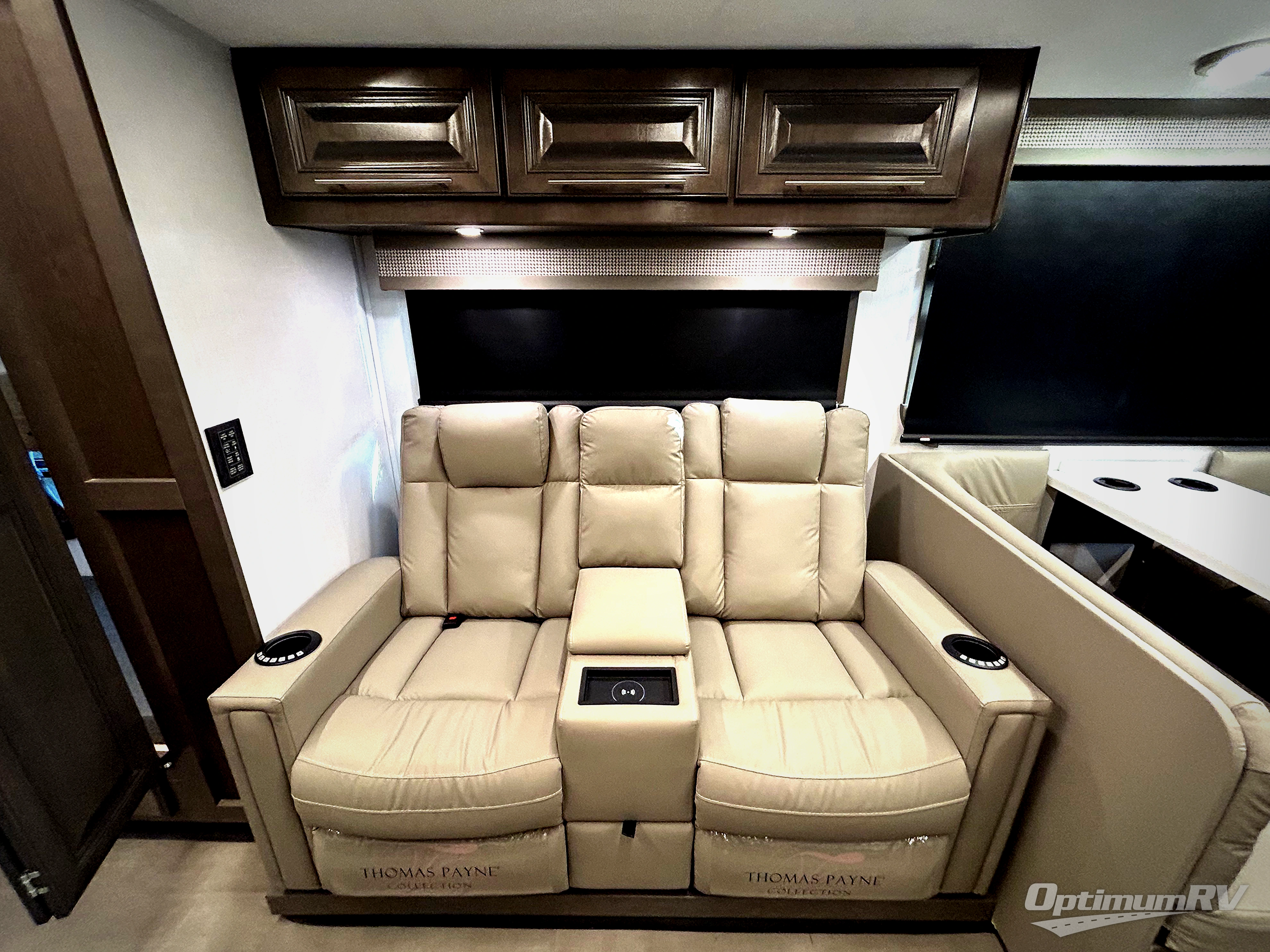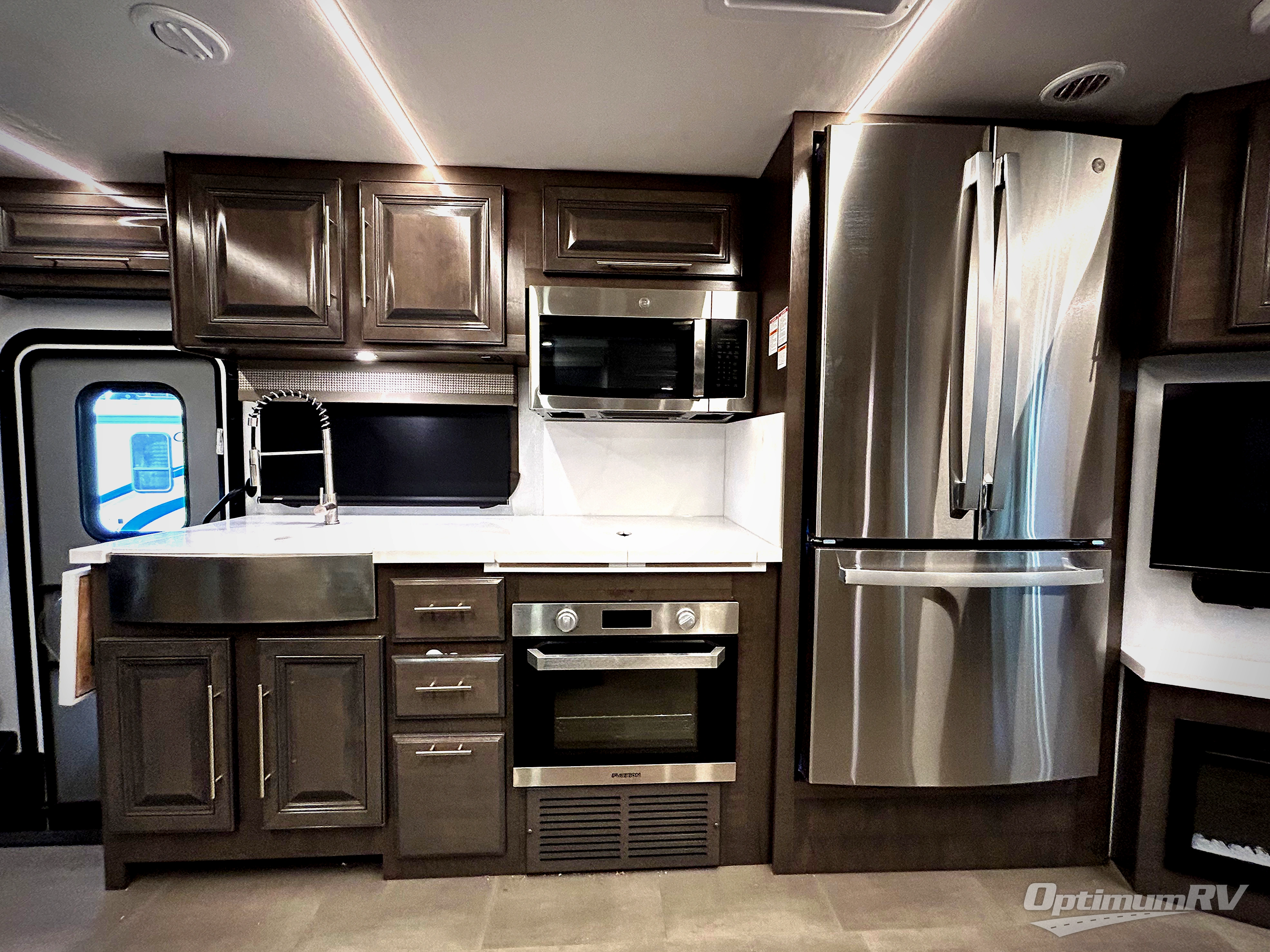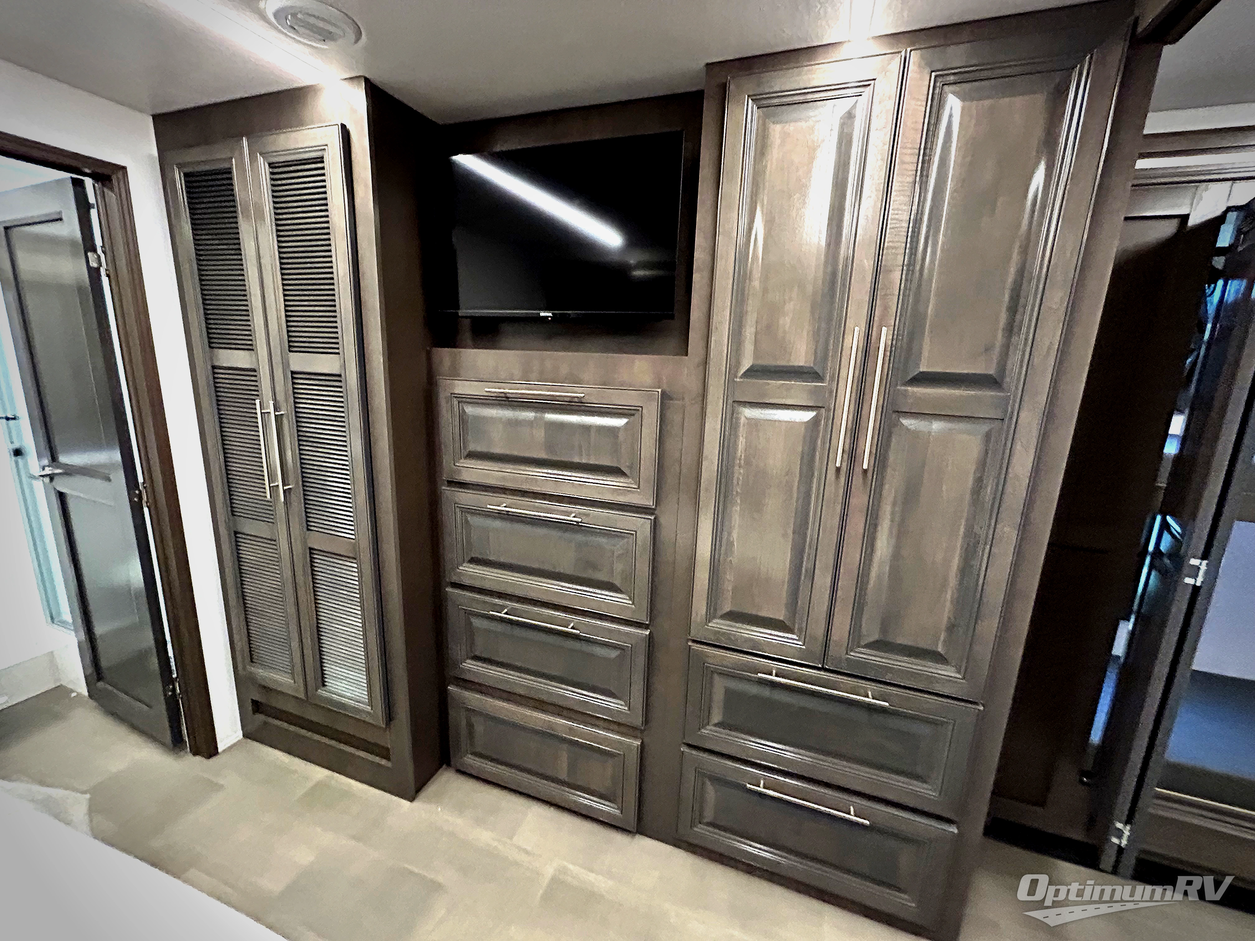 It's a clean decision to take this motorhome on all of your adventures with two full bathrooms! The full rear bathroom has a shower with a seat and creates a master suite with the bedroom which has a 72" x 80" Power Tilt king bed slide across from a dresser with a 32" LED TV and wardrobes on either side of it with one of them with washer and dryer prep. The set of bunk beds are conveniently across from the second full bathroom which will come in handy at night and keep things running smoothly in the mornings with a shower. Prepare your best home cooked meals with the three burner cooktop and enjoy them at the booth dinette then relax on the theater seating!