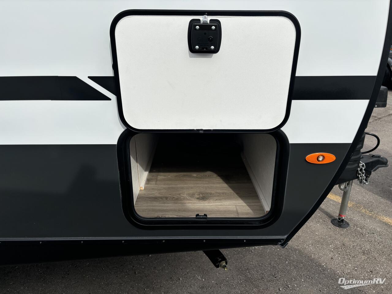 This versatile travel trailer is perfect for two adventure-seeking campers! You will love having a queen-size Murphy bed up front since you can fold it away during the day and relax on the sofa. There are also dual wardrobes to keep your clothes out of the way plus dual end end tables to set your coffee or book on. A full kitchen includes a convection microwave, 12V black glass refrigerator, and a counter with two chairs where you can dine each day. You will also love the flip-up window above the table, along with a 12V TV to keep you entertained, plus a pantry to keep food stocked. Head to the full rear bath that includes a large linen closet, a shower, and a night light for added convenience. The exterior is just as accommodating with its large roof mounted solar panel, rear accessory hitch, slam latch cargo doors, and more!