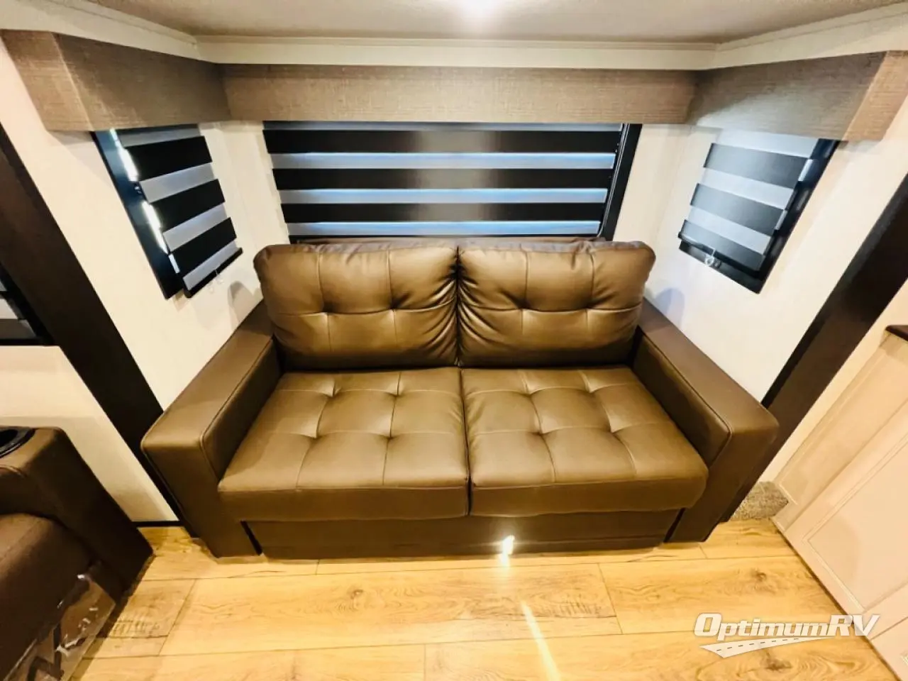 There is only one word that can describe this Sabre fifth wheel; fabulous! You will be amazed by the amount of comfort and convenience that is scattered all throughout this model for you and your family or friends. From the tri-fold sofa slides and theater seating to the rear bedroom with its camper king bed and wardrobe slide out, you will always have a place to relax and unwind. Not only that, but there is also a double loft area up above the bedroom and bath which has sleeping space, storage, a wardrobe, and railing for safety. The cook will enjoy the 12V refrigerator with French doors and pantry for all of your food storage needs, and the table with chairs is the perfect place to sit down and enjoy a delicious meal or play board games.
