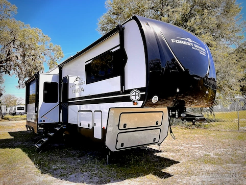 The Salem Hemisphere ROOST fifth wheels resemble a destination trailer that will be giving you residential vibes! The premium Alley Grey high-gloss gel coat fiberglass sidewalls are ultra sleek, and the flat pitched roof sheds water to the off-door side for added comfort. A Race Track A/C duct system provides maximum cooling, and the AccessiBelly underbelly with 12V tank heaters on all holding tanks will help extend your camping season. There are high-end solid surface and maple-stained wood countertops inside, along with residential-inspired wood door casings, and 6' 8" clearance in all rooms, excluding lofts. Additional features include a Gun Metal grey kitchen sink, backlit mirrors in the bathrooms, motion sensor lights by the spiral stair cases, and back up camera prep if you want the option to make parking easier than ever.