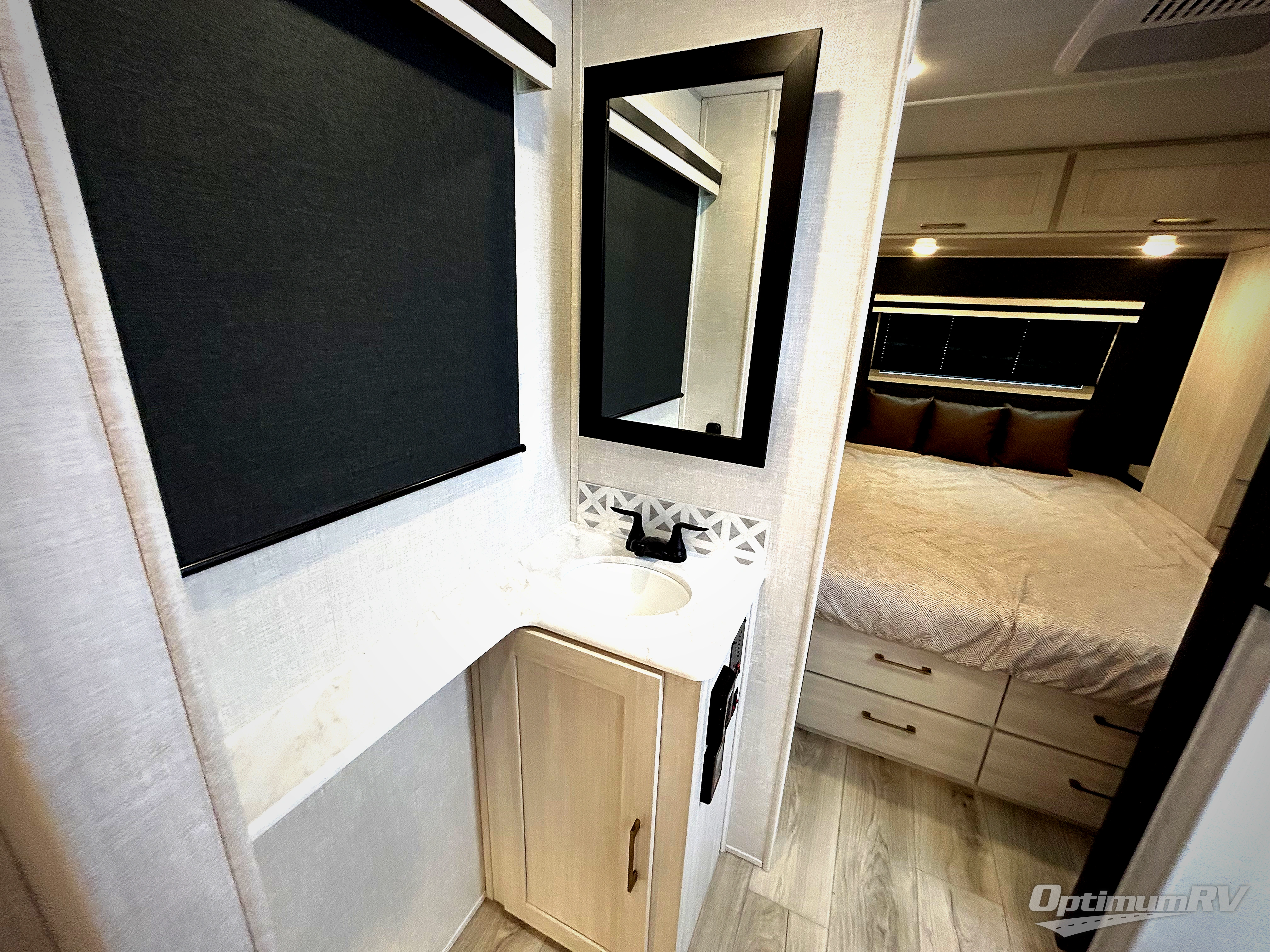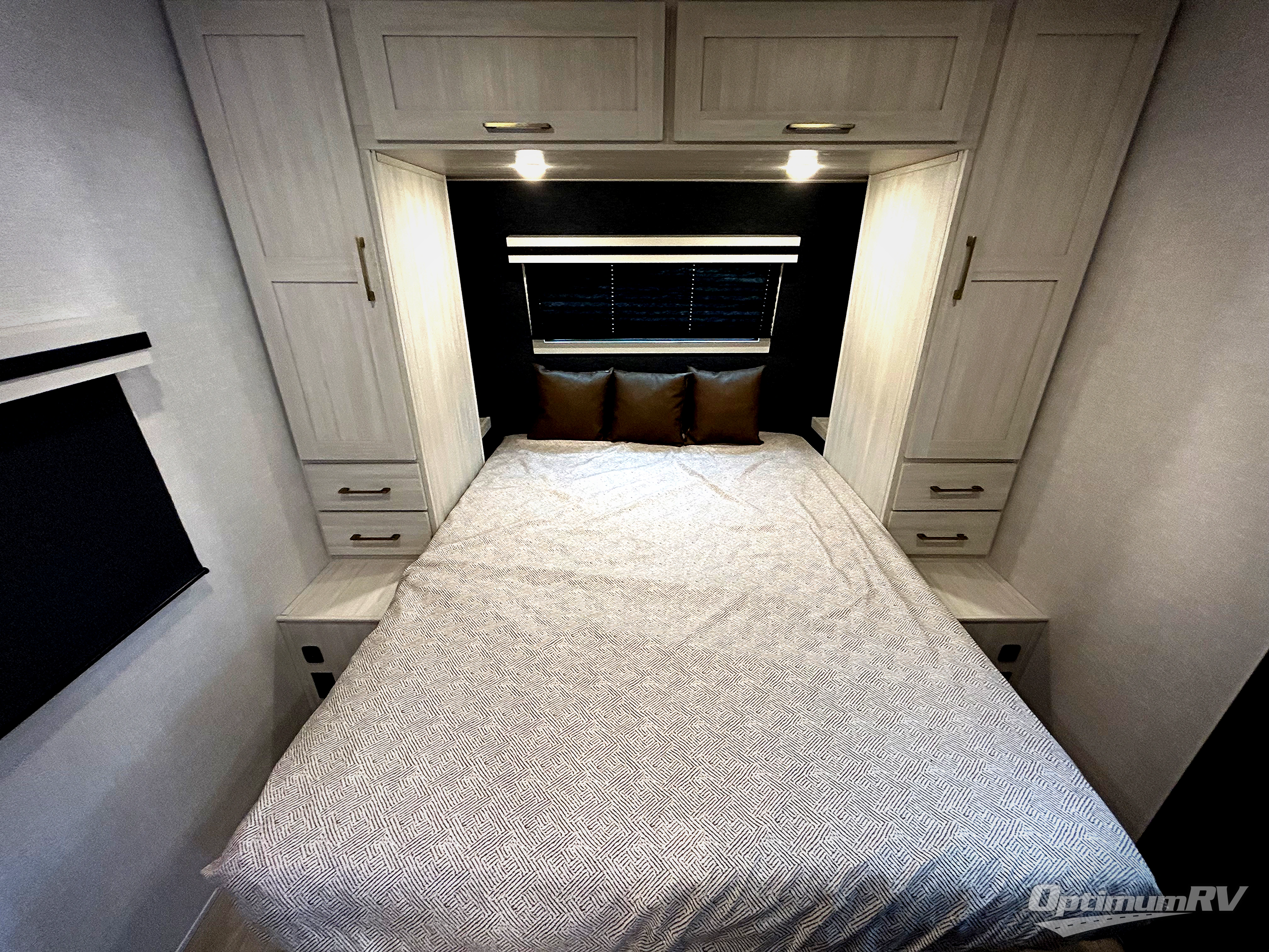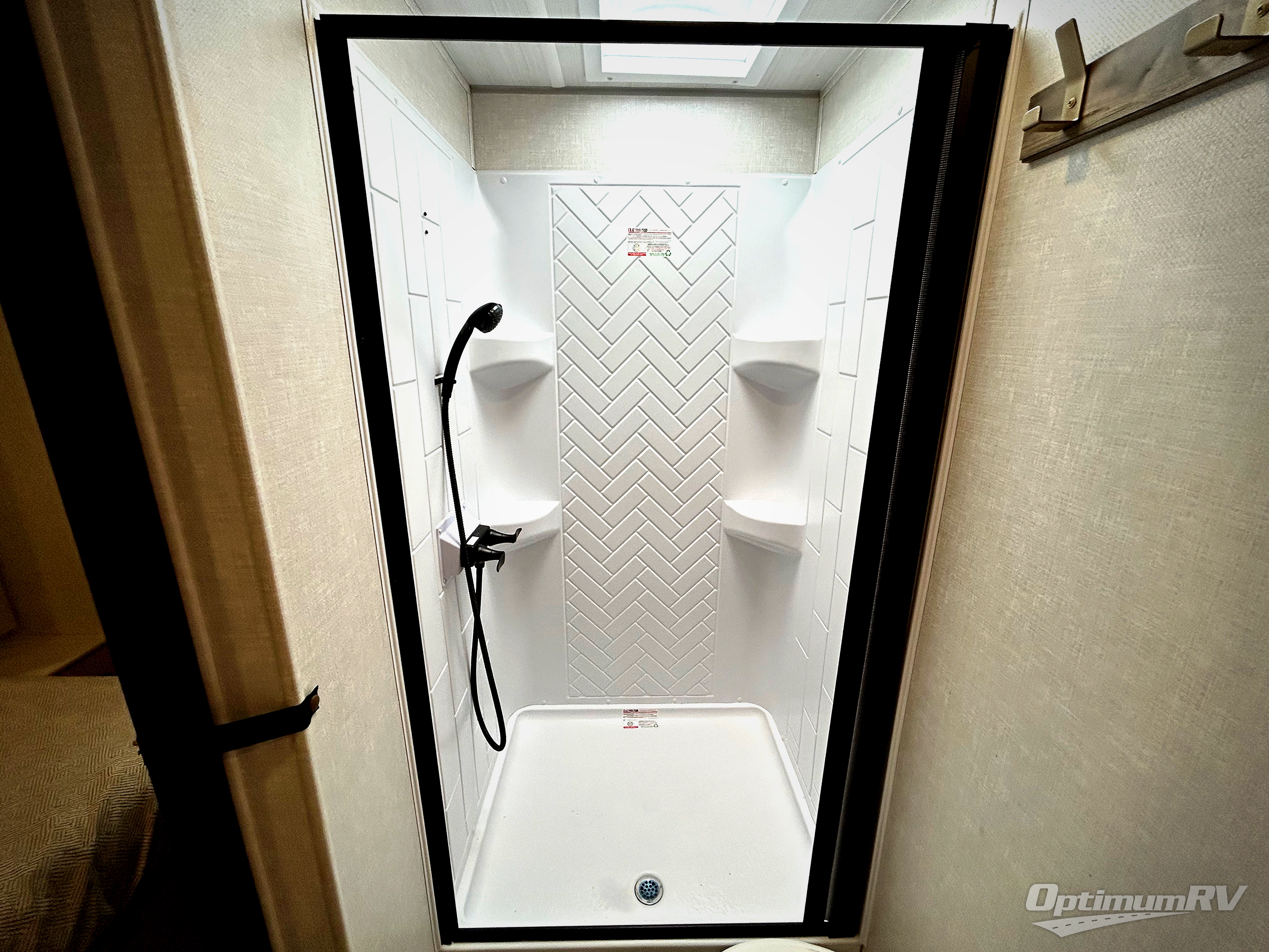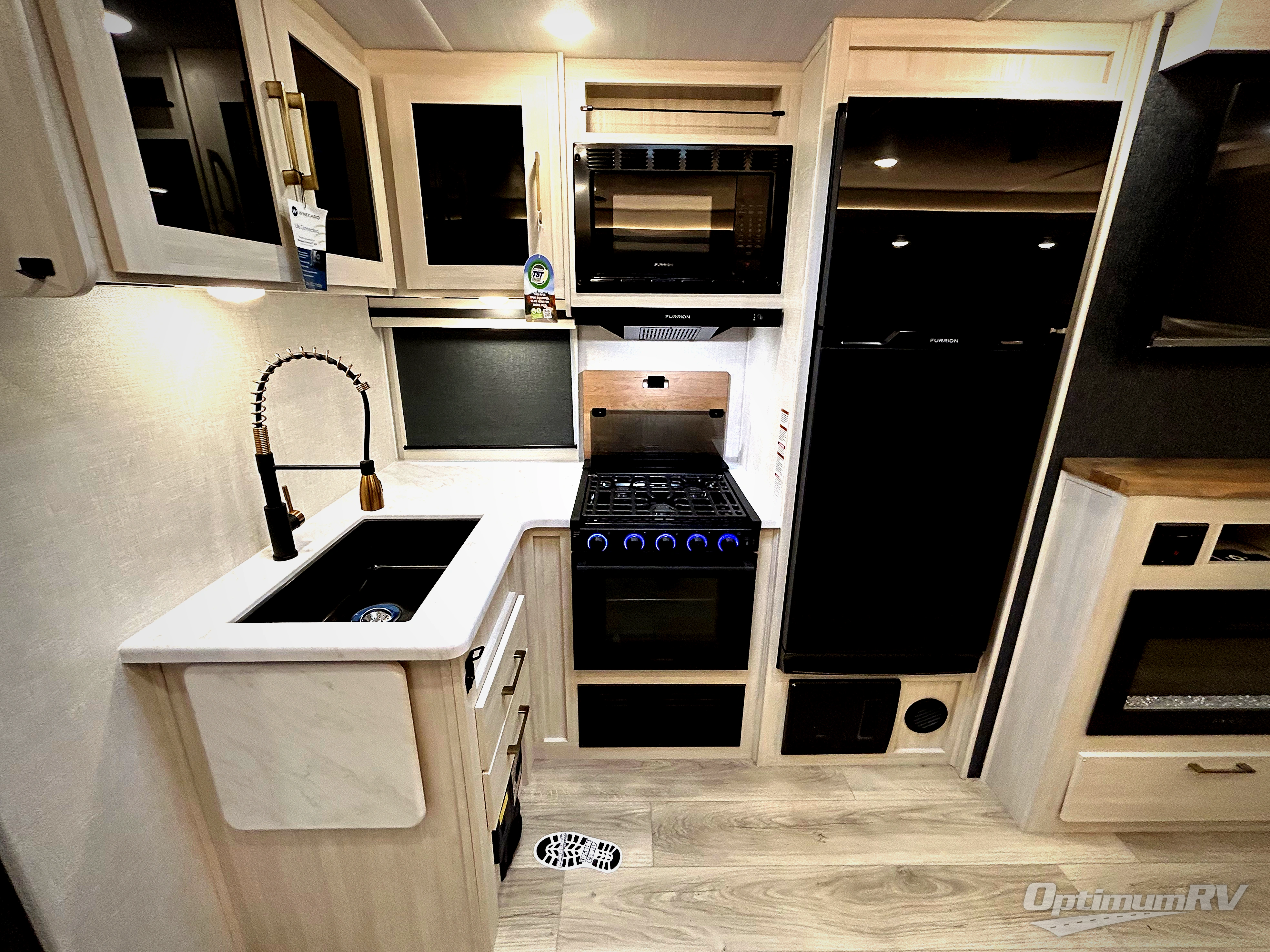 This travel trailer is perfect for larger groups or families since it can sleep up to ten people each night! There is a private bunkhouse with three bunks, a tri-fold sofa, plus storage space and a removable table! The front master bedroom is just as accommodating with its dual bedroom wardrobes, overhead cabinets, and quick access to the walk-through bath. The main living are will be a favorite hangout spot with a tri-fold sofa, a booth dinette, and an HD TV for movies. And a walk-in pantry with washer and dryer prep gives you the option to add these appliances. The chef of your group can cook meals in the fully-equipped kitchen, or head outdoors to cook on the outside kitchen. There is also a 21' electric awning here with LED lights for an inviting outdoor living space.