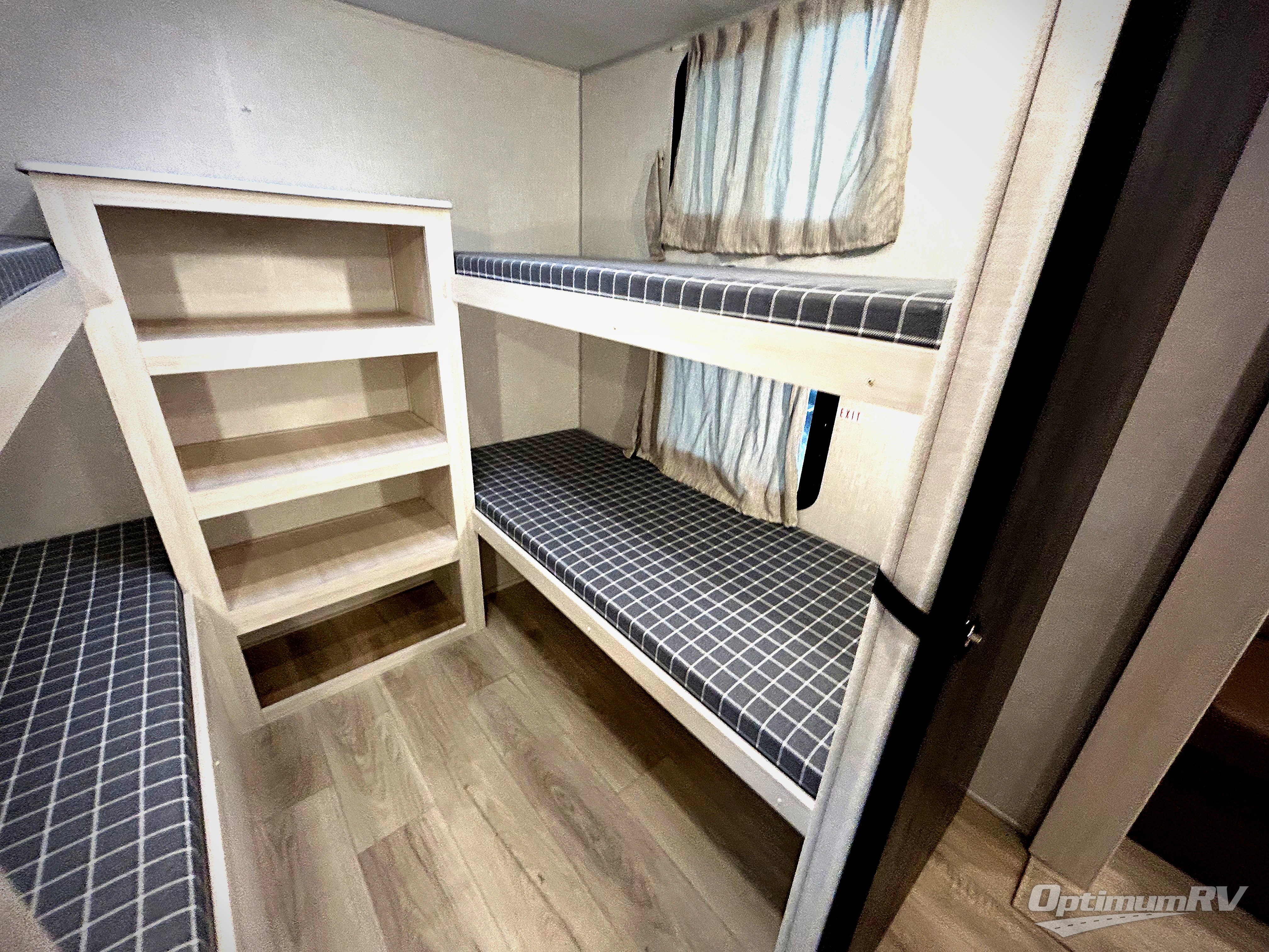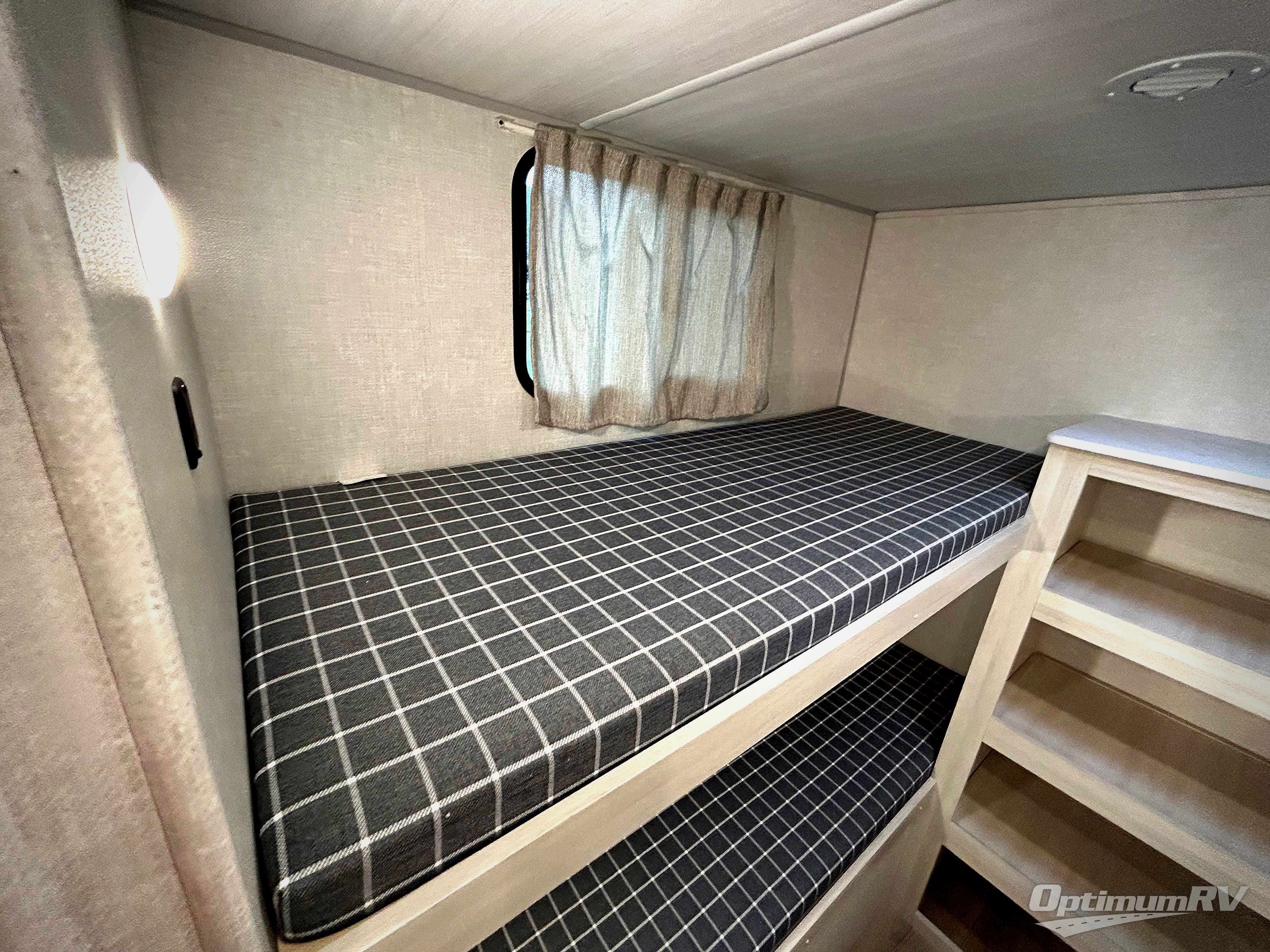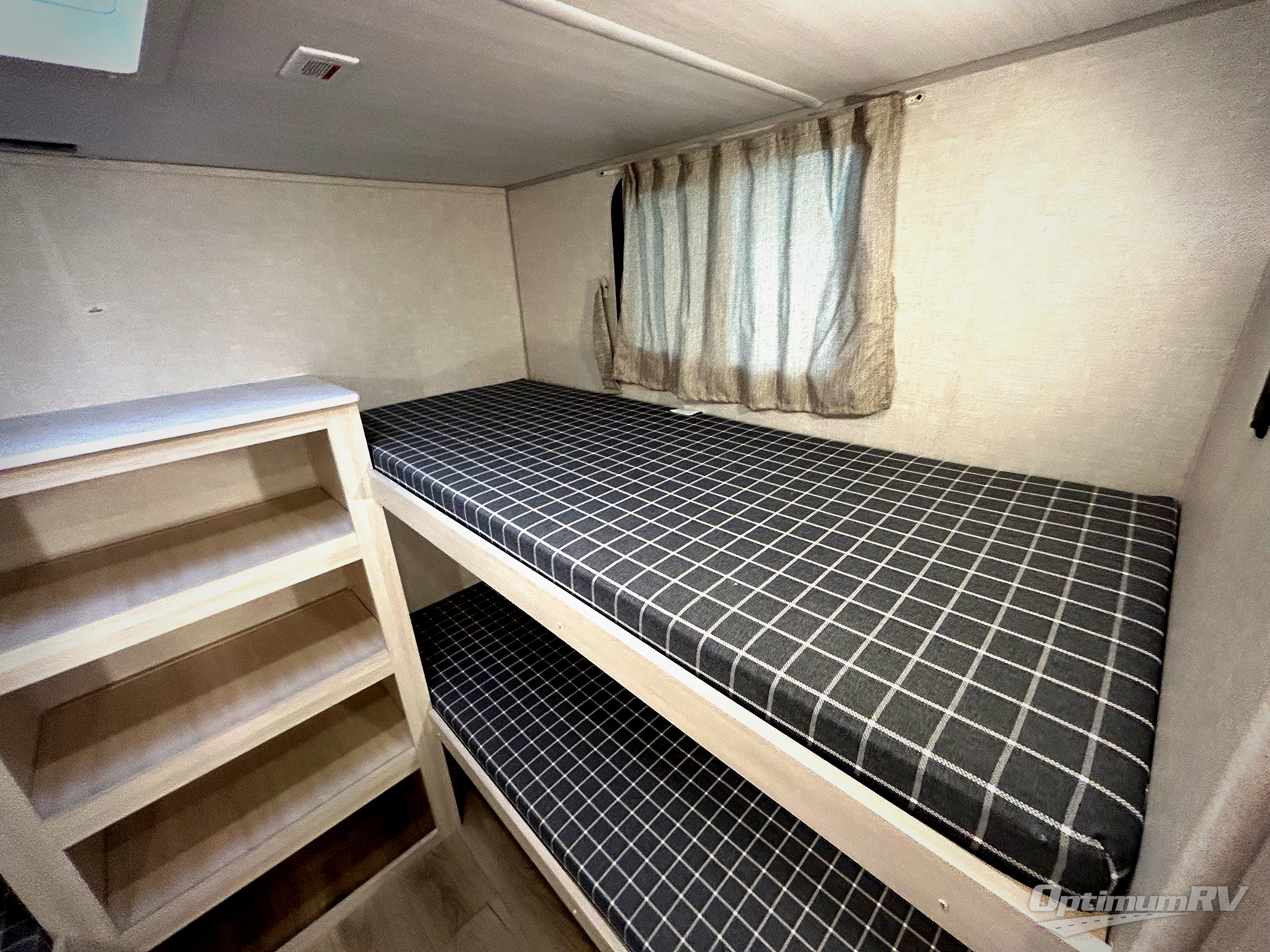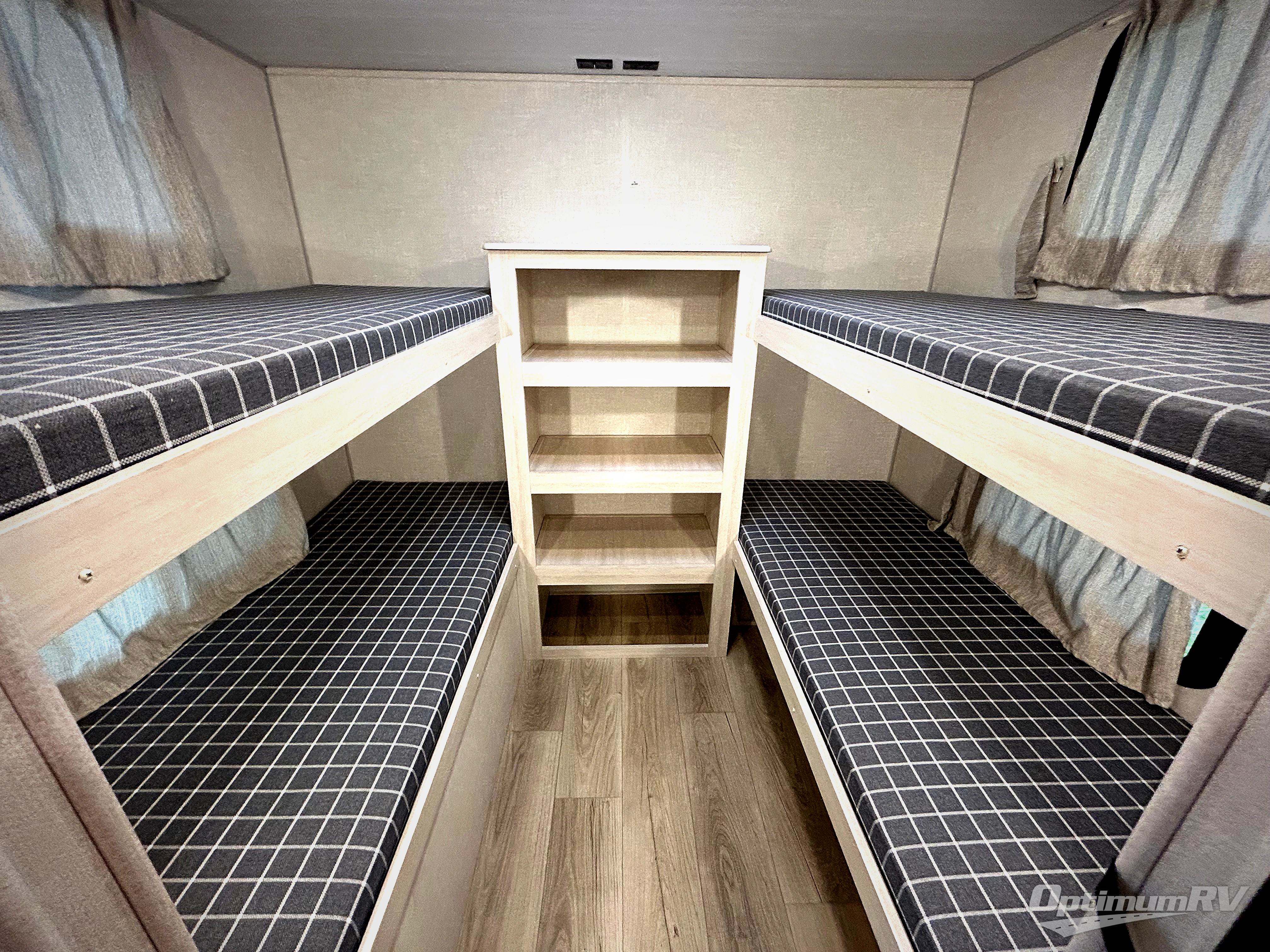 Head to your favorite camping spot with your favorite people in this spacious, dual entry travel trailer! The large slide out houses the booth dinette and sofa where you can relax in the evenings and even let guests sleep over who haven't claimed the quad bunks in the rear bunkhouse. A walk-thru bath is convenient for all, and the full kitchen lets you whip up your best meals in the microwave with an air fryer. And a walk-in pantry with washer and dryer prep makes it easier to go full-time if you choose! When it's time to call it a night, the front master bedroom with a queen bed will provide you with your own space to retreat to, and there are dual bedside wardrobes to keep your clothes organized.