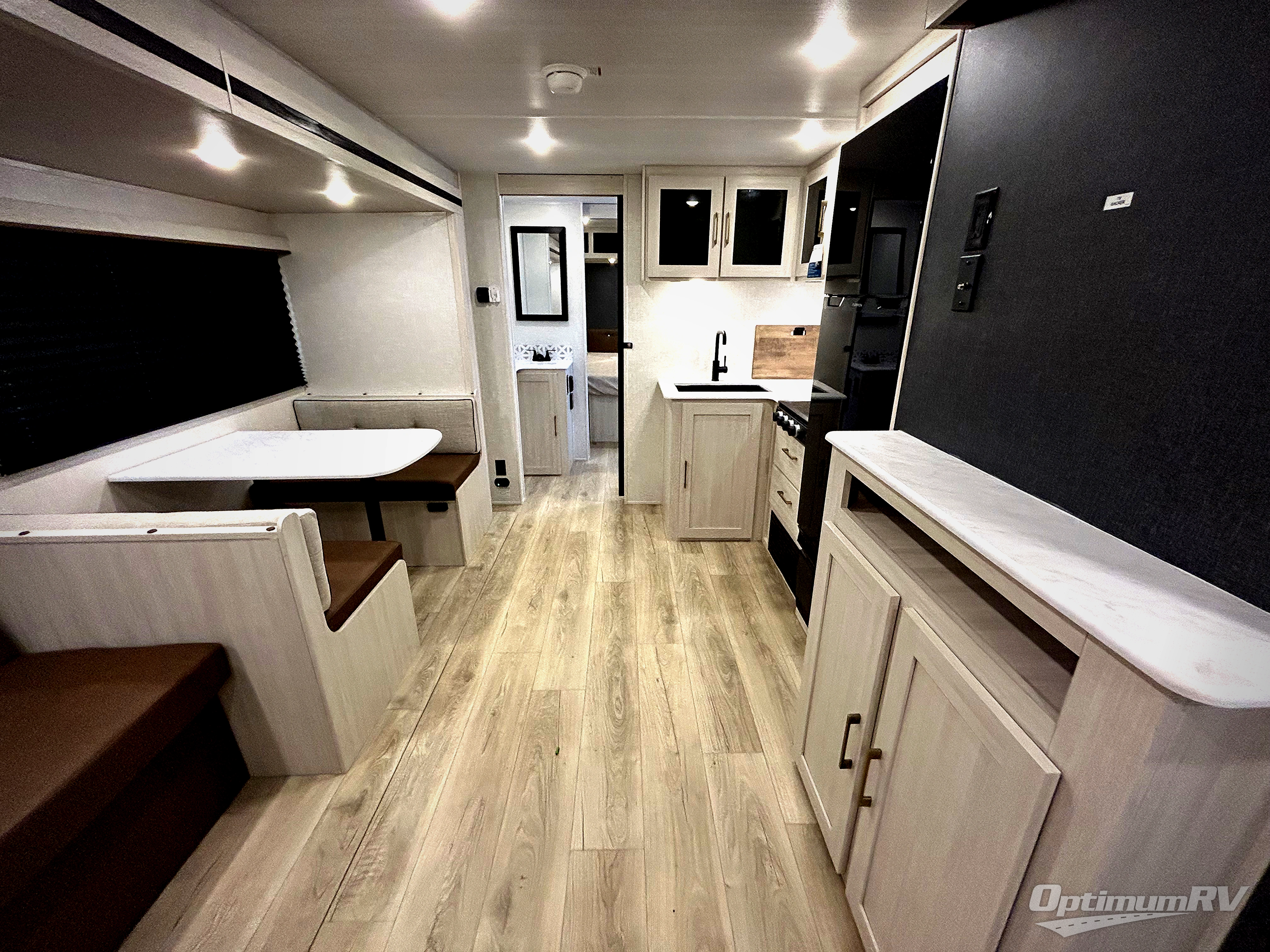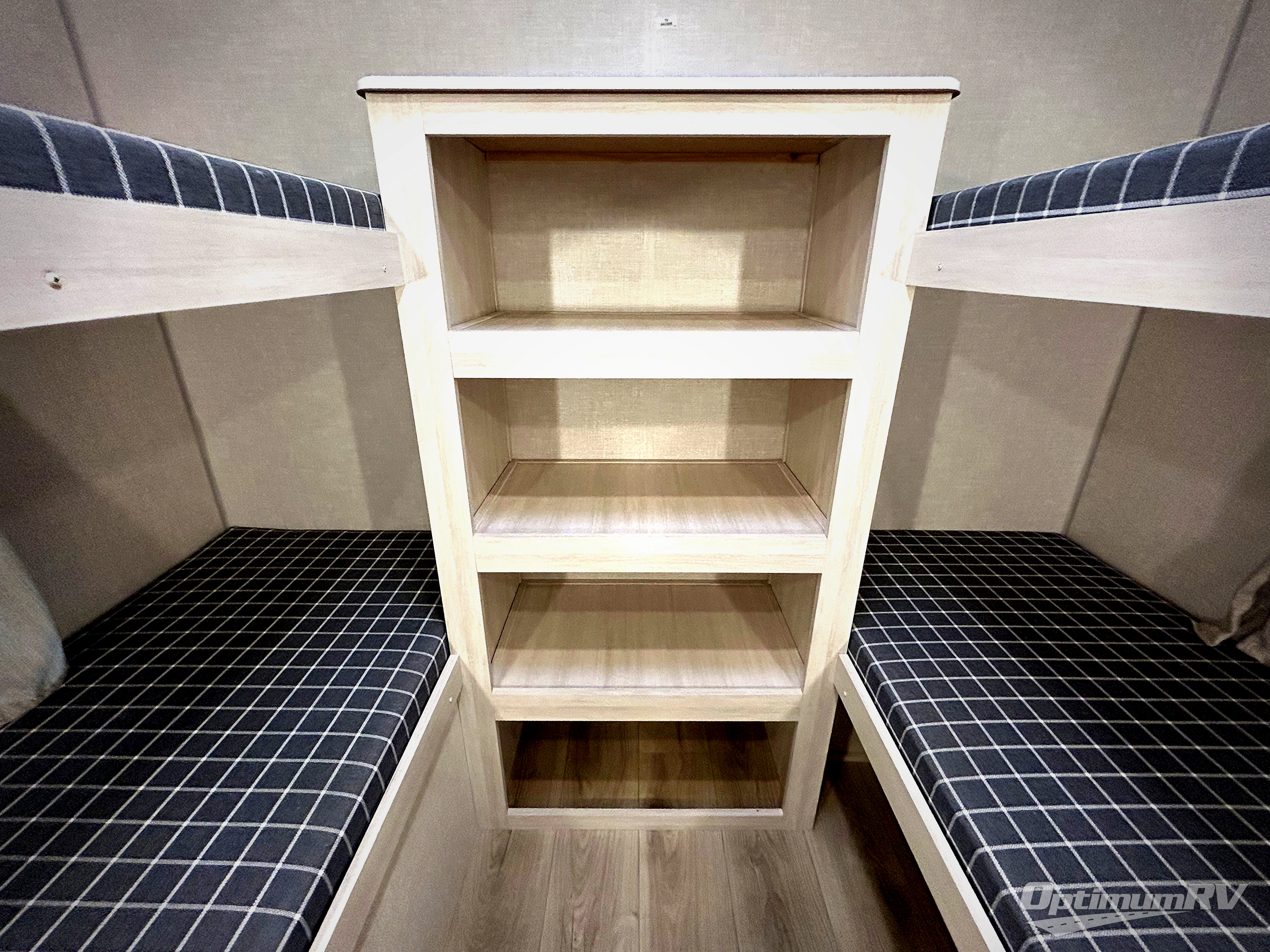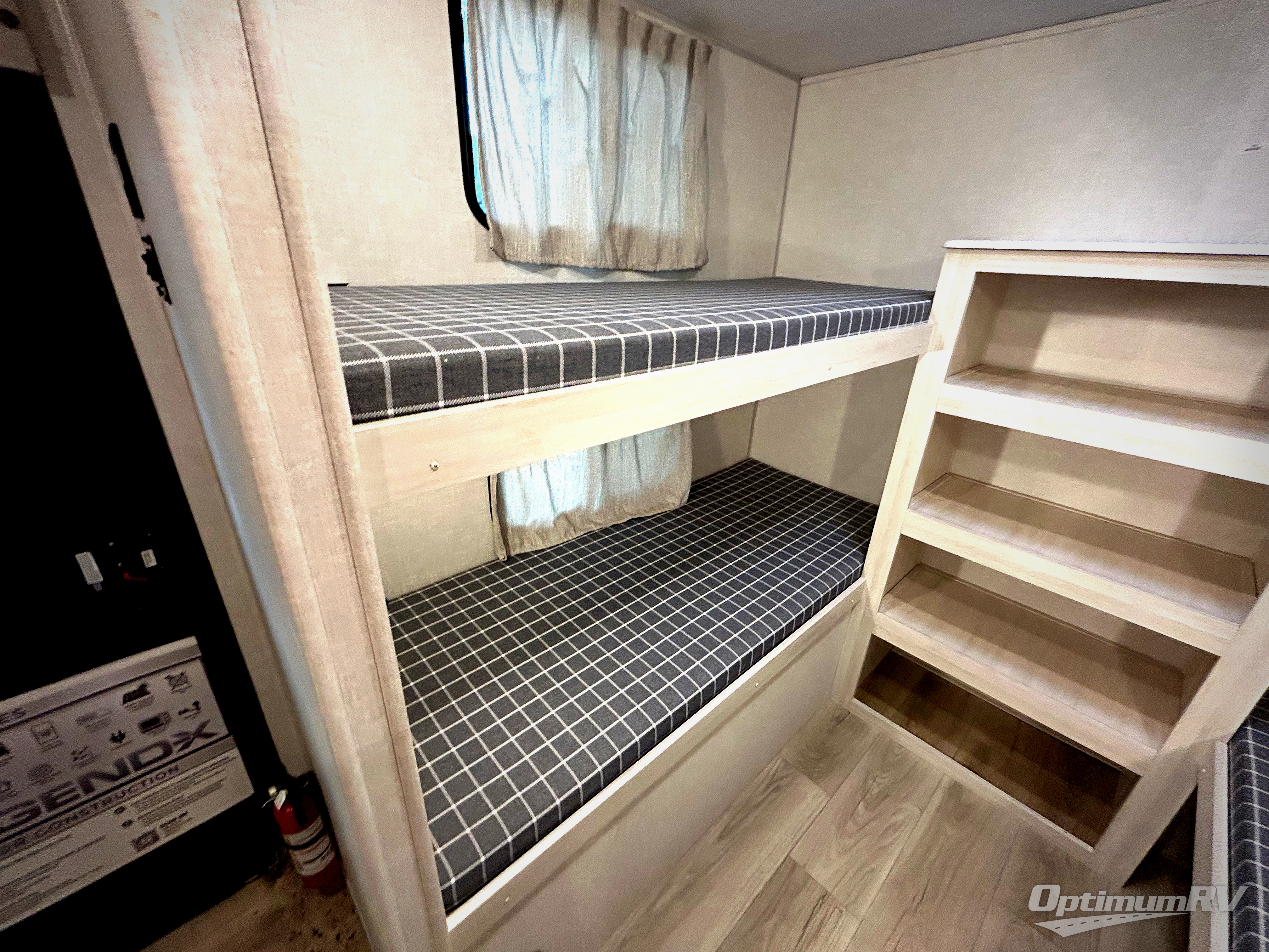 Head to your favorite camping spot with your favorite people in this spacious, dual entry travel trailer! The large slide out houses the booth dinette and sofa where you can relax in the evenings and even let guests sleep over who haven't claimed the quad bunks in the rear bunkhouse. A walk-thru bath is convenient for all, and the full kitchen lets you whip up your best meals in the microwave with an air fryer. And a walk-in pantry with washer and dryer prep makes it easier to go full-time if you choose! When it's time to call it a night, the front master bedroom with a queen bed will provide you with your own space to retreat to, and there are dual bedside wardrobes to keep your clothes organized.