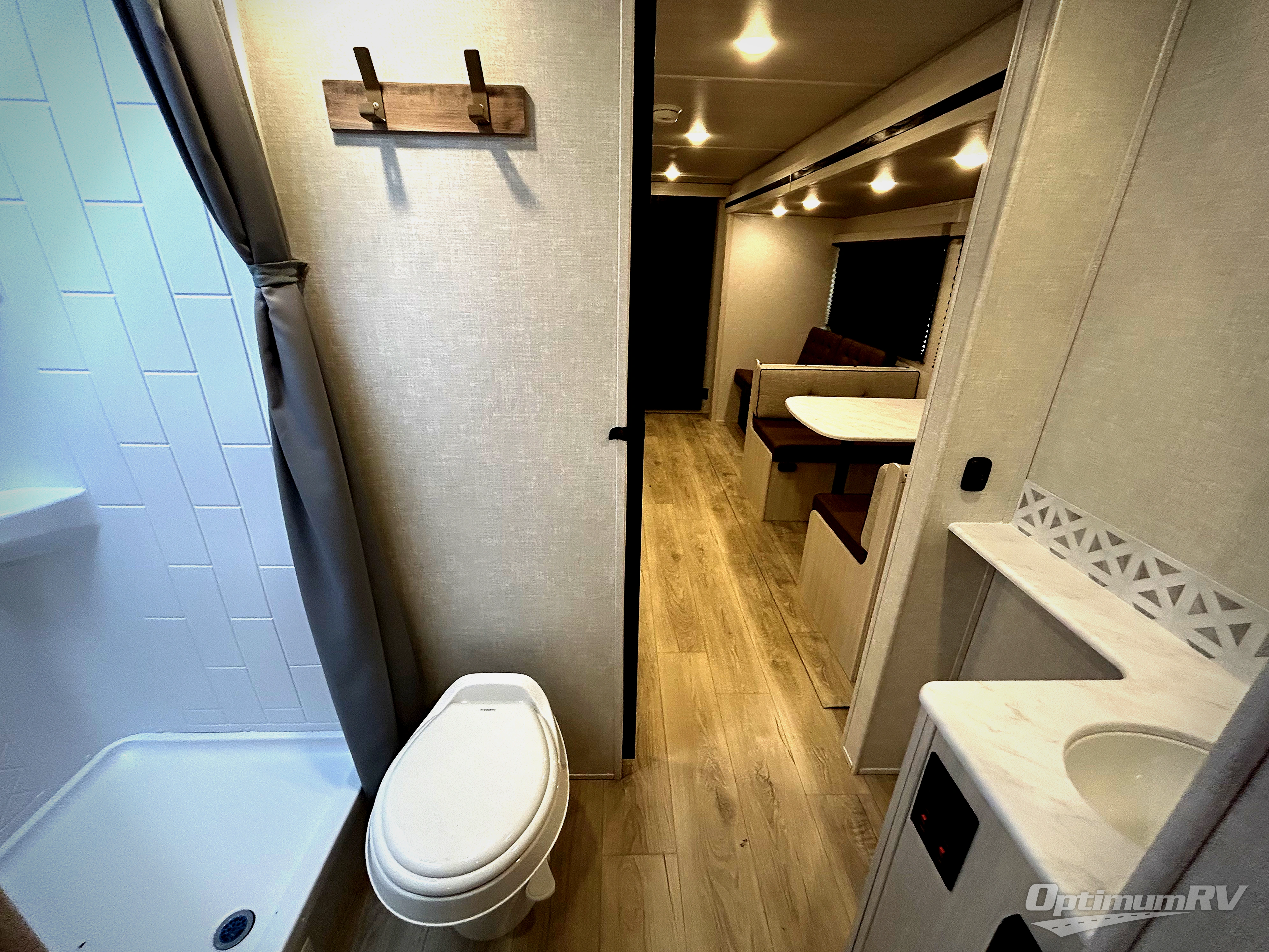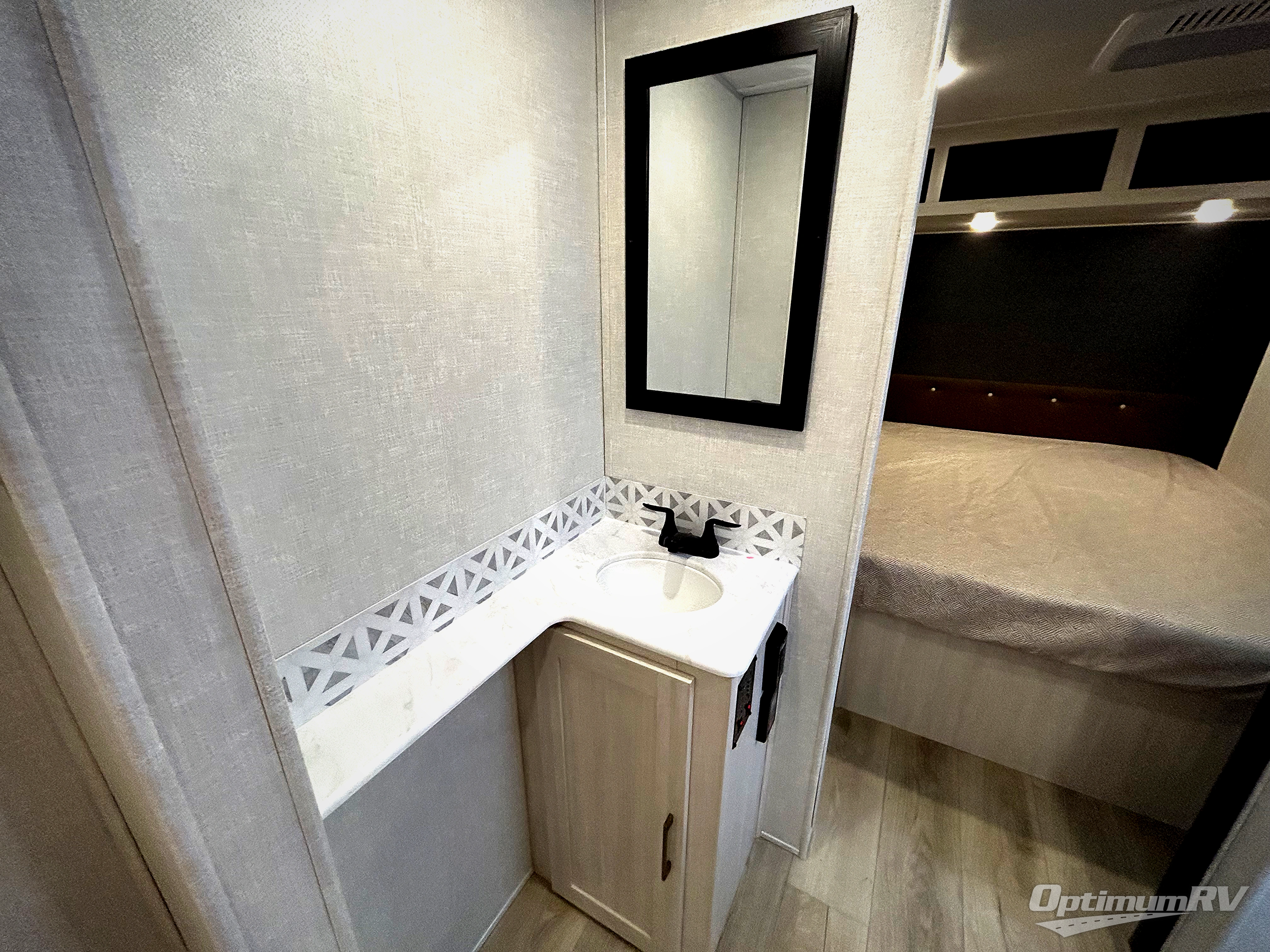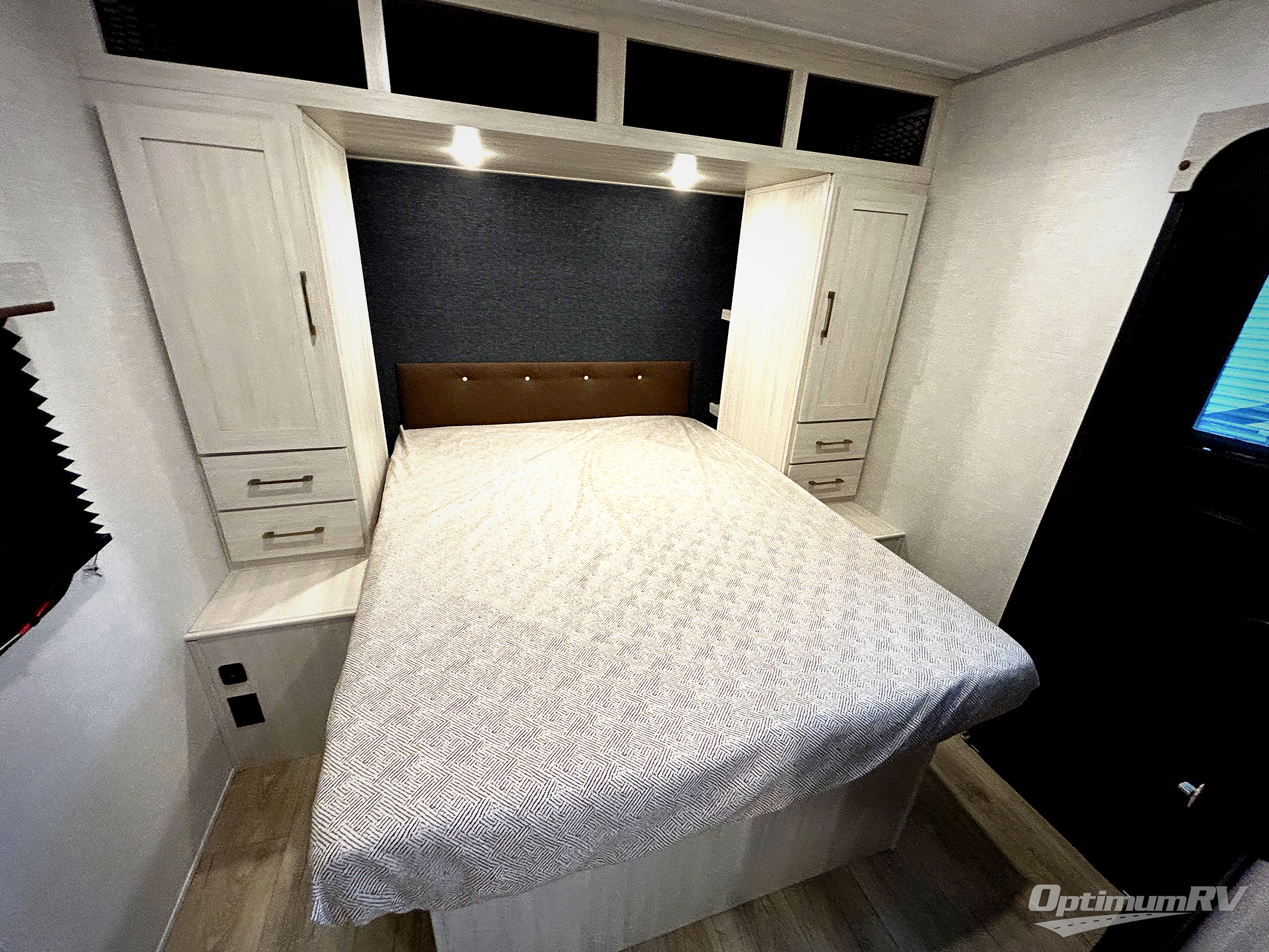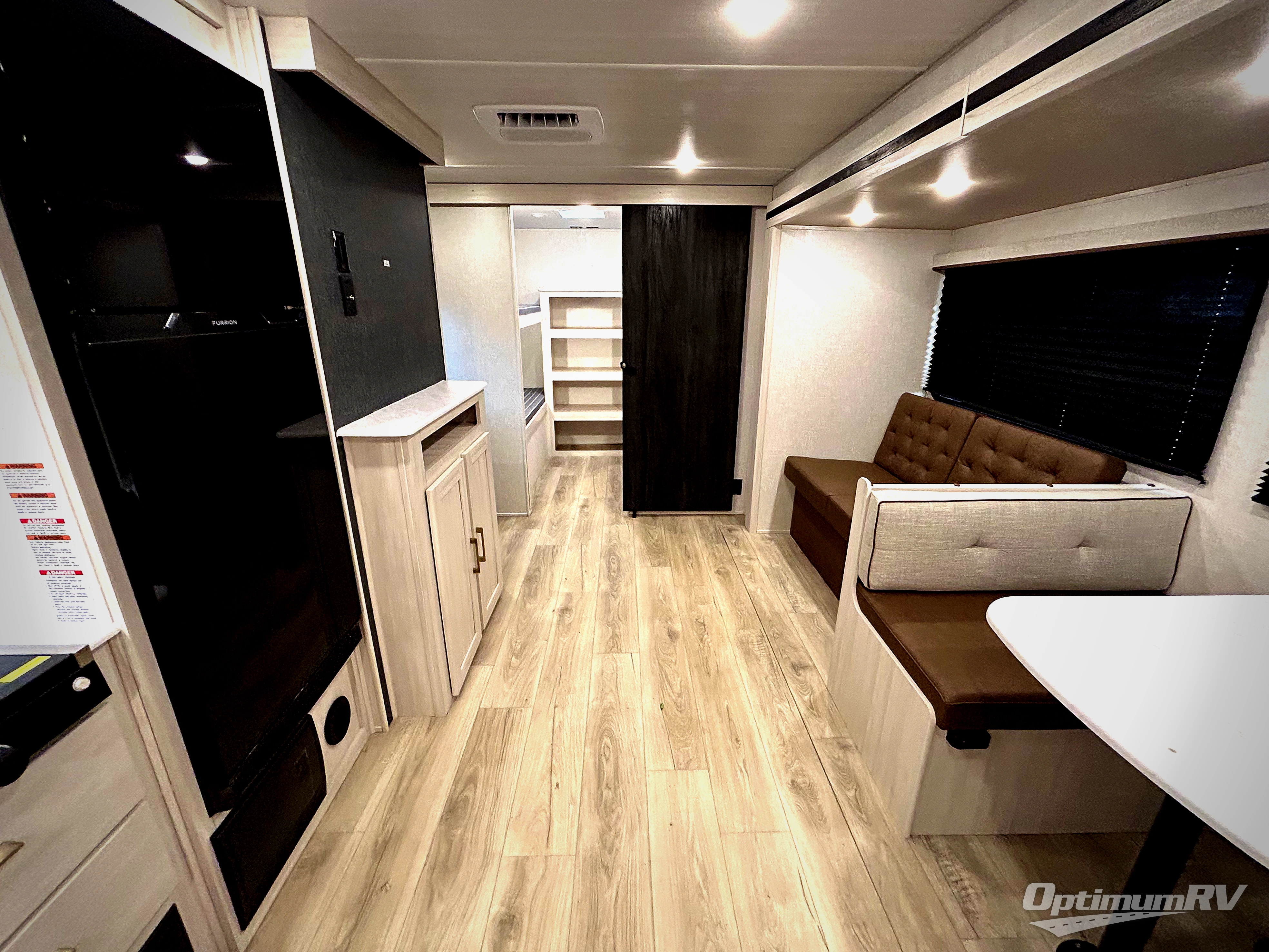Head to your favorite camping spot with your favorite people in this spacious, dual entry travel trailer! The large slide out houses the booth dinette and sofa where you can relax in the evenings and even let guests sleep over who haven't claimed the quad bunks in the rear bunkhouse. A walk-thru bath is convenient for all, and the full kitchen lets you whip up your best meals in the microwave with an air fryer. And a walk-in pantry with washer and dryer prep makes it easier to go full-time if you choose! When it's time to call it a night, the front master bedroom with a queen bed will provide you with your own space to retreat to, and there are dual bedside wardrobes to keep your clothes organized.