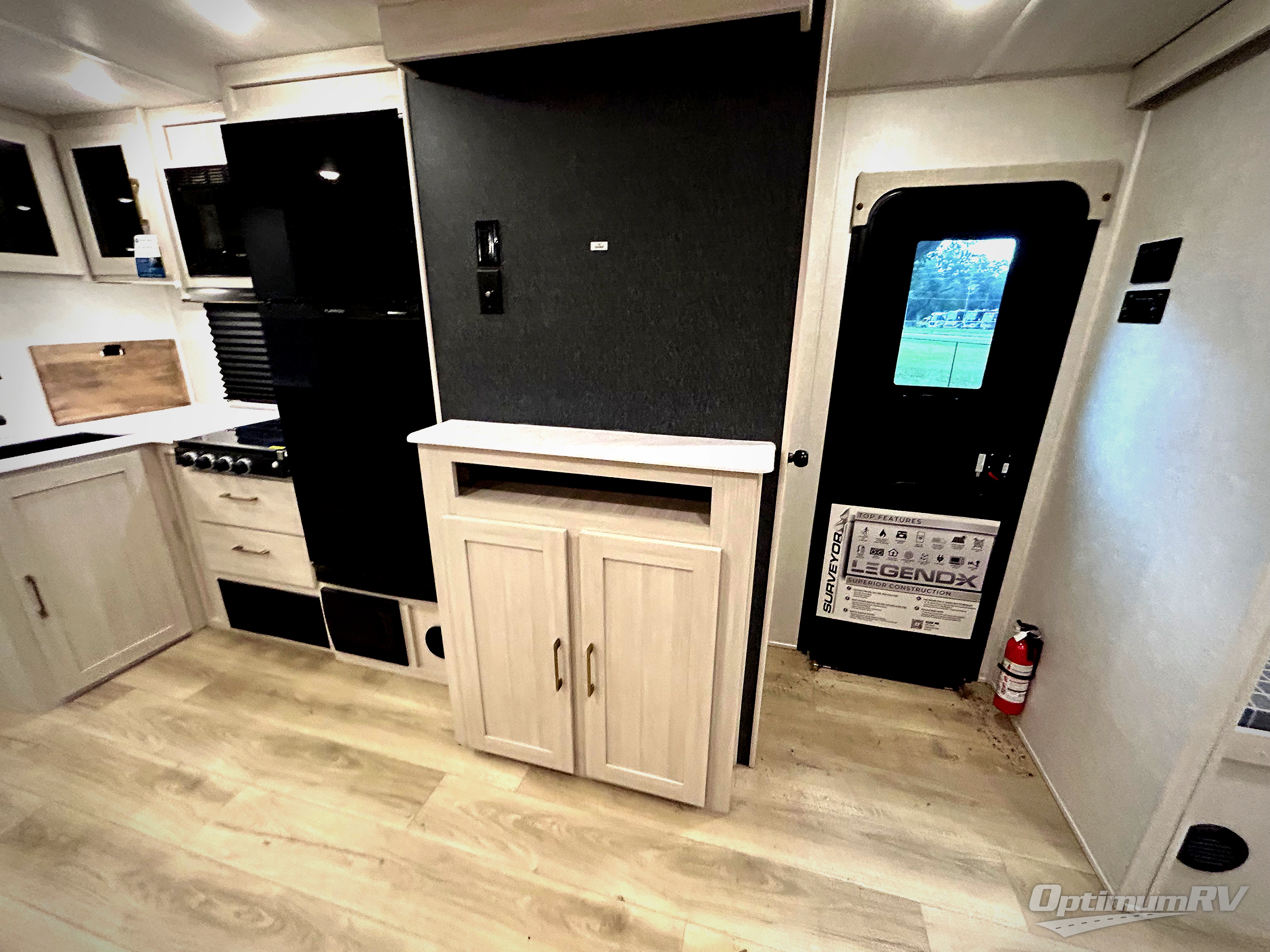 Value and versatility go hand-in-hand with the Surveyor Legend X travel trailers by Forest River. The solid construction includes a 2" aluminum framed floor with block foam insulation and a sealed underbelly with forced heat and radiant foil insulation. A 100-watt roof mounted solar panel will provide some off-grid power, and the power tongue jack will let you easily hitch up and go whenever you're ready. Additional stand-out features include Surf(X) seamless countertops throughout, two A/C units, an electric awning with LED light strip, black glass friction hinge entry door(s), and so much more!