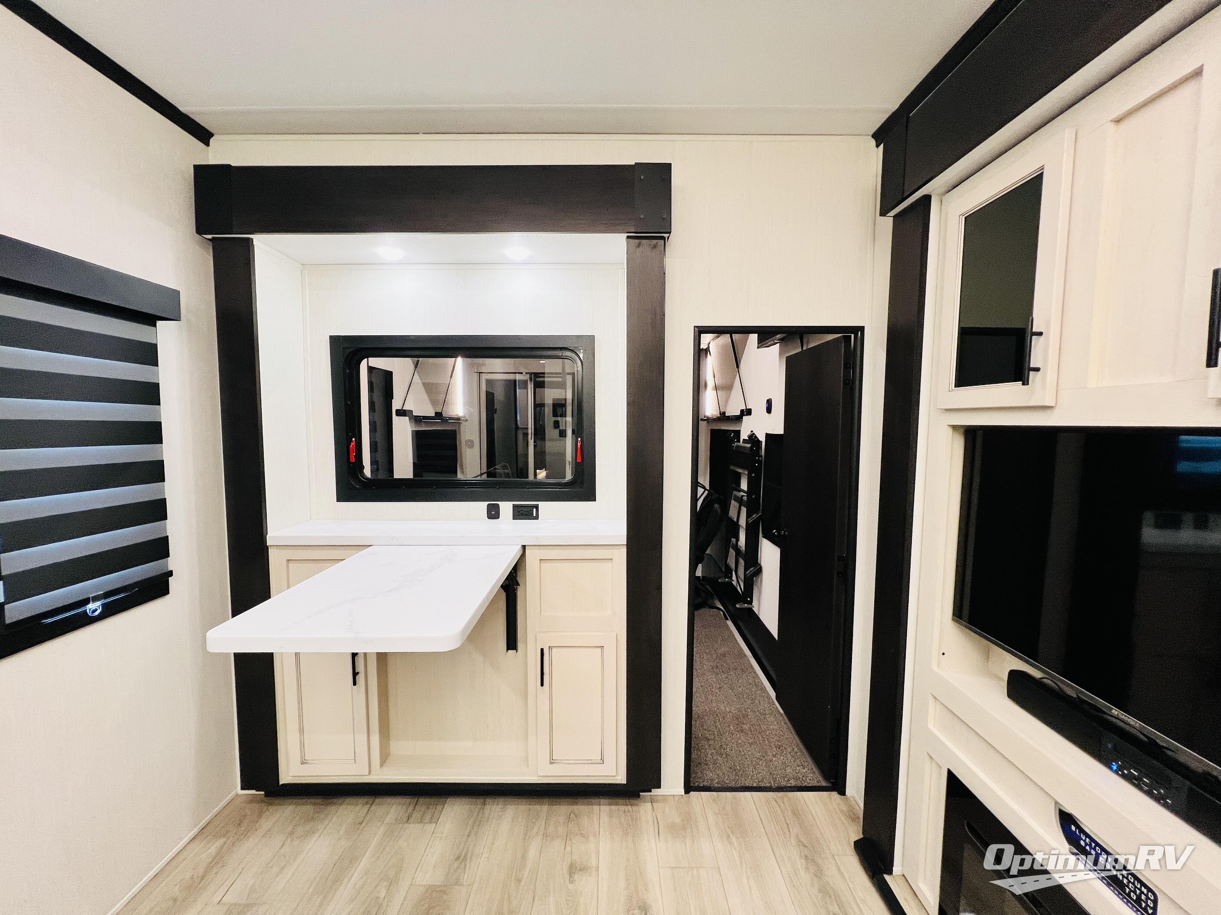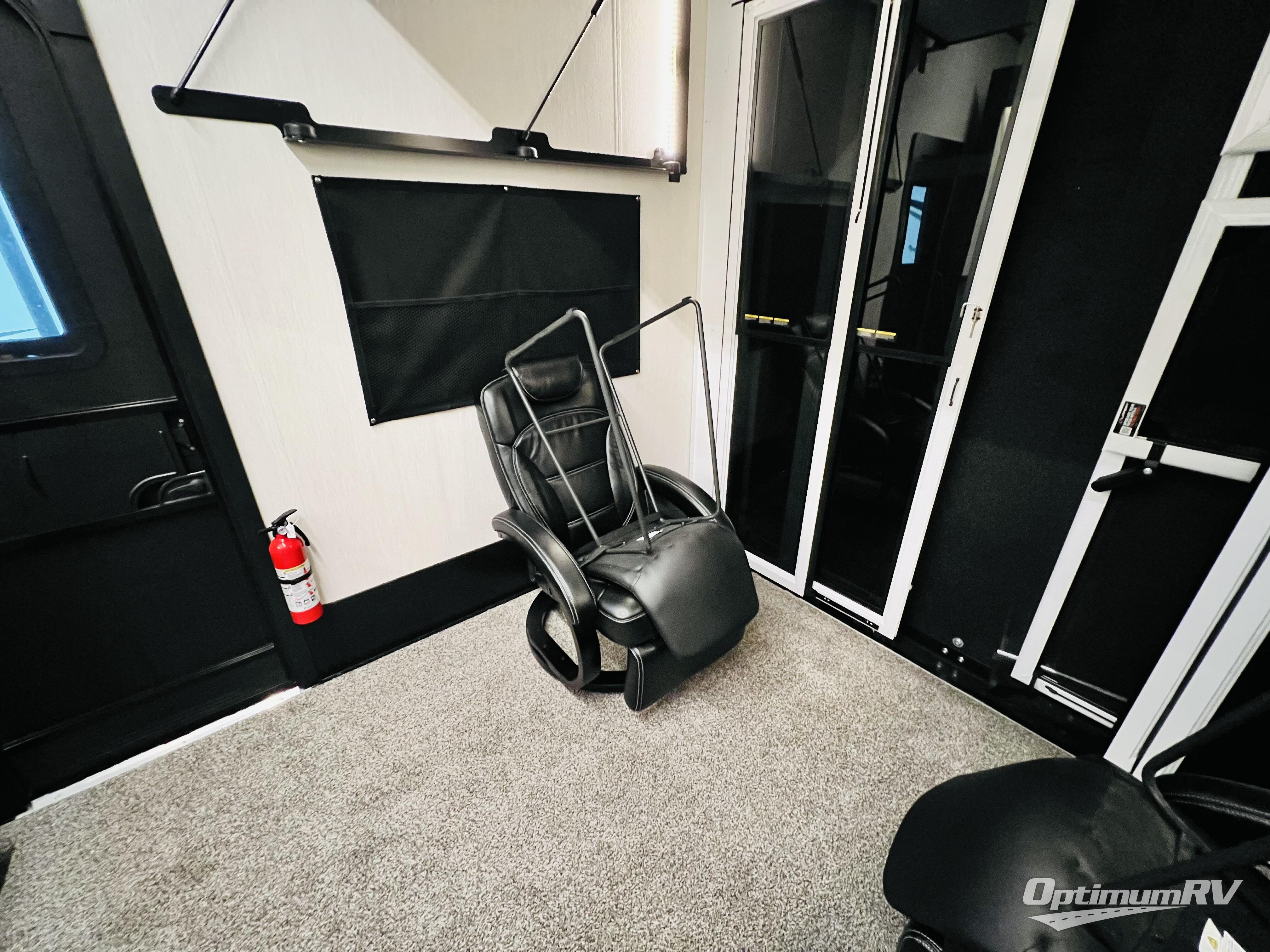 This toy hauler with an 11' separate garage is sure to meet your needs! After you've unloaded your toys, you can relax on the Euro recliners or set up the drop-down queen bed for guests if it's getting late. There is also a window in the garage that opens to the main living area to keep everyone connected, and the flip-up table on the other side of the window provides a place to dine at. A counter peninsula will give the chef of your group more space to prep meals, and the dual opposing slides in this space make it more open. You'll also enjoy the sofa with recliners across from the entertainment center with a fireplace. A full bath with a spacious shower is perfect for cleaning up after a day of trail riding, and the front private bedroom with a queen bed slide is sure to have you feeling right at home!