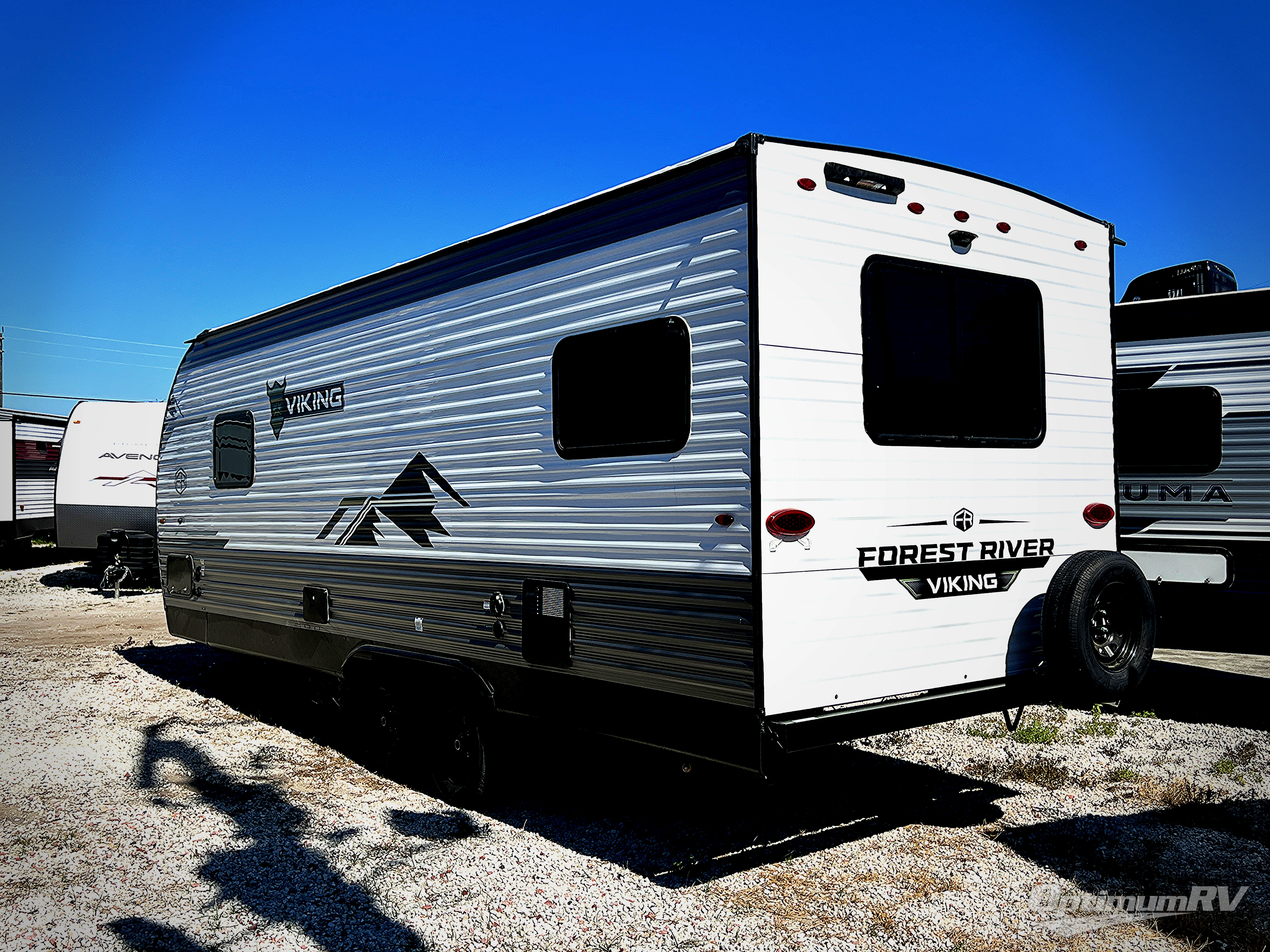 With any Forest River Viking 5K Series travel trailer, you can experience affordable camping with your family with the same comforts and quality as the bigger trailers. Each is built on a BAL NXG frame, with extended height diamond plate rock guard for added protection and a seamless one-piece TPO roof membrane. There are USB charging ports to keep your electronics charged up, and you'll love the look of the kitchen backsplash inside as well. Head outside to find a power awning with an LED light strip and adjustable legs, back-up camera prep, four rear stabilizing jacks, and an outside shower so you can wash off hiking gear.