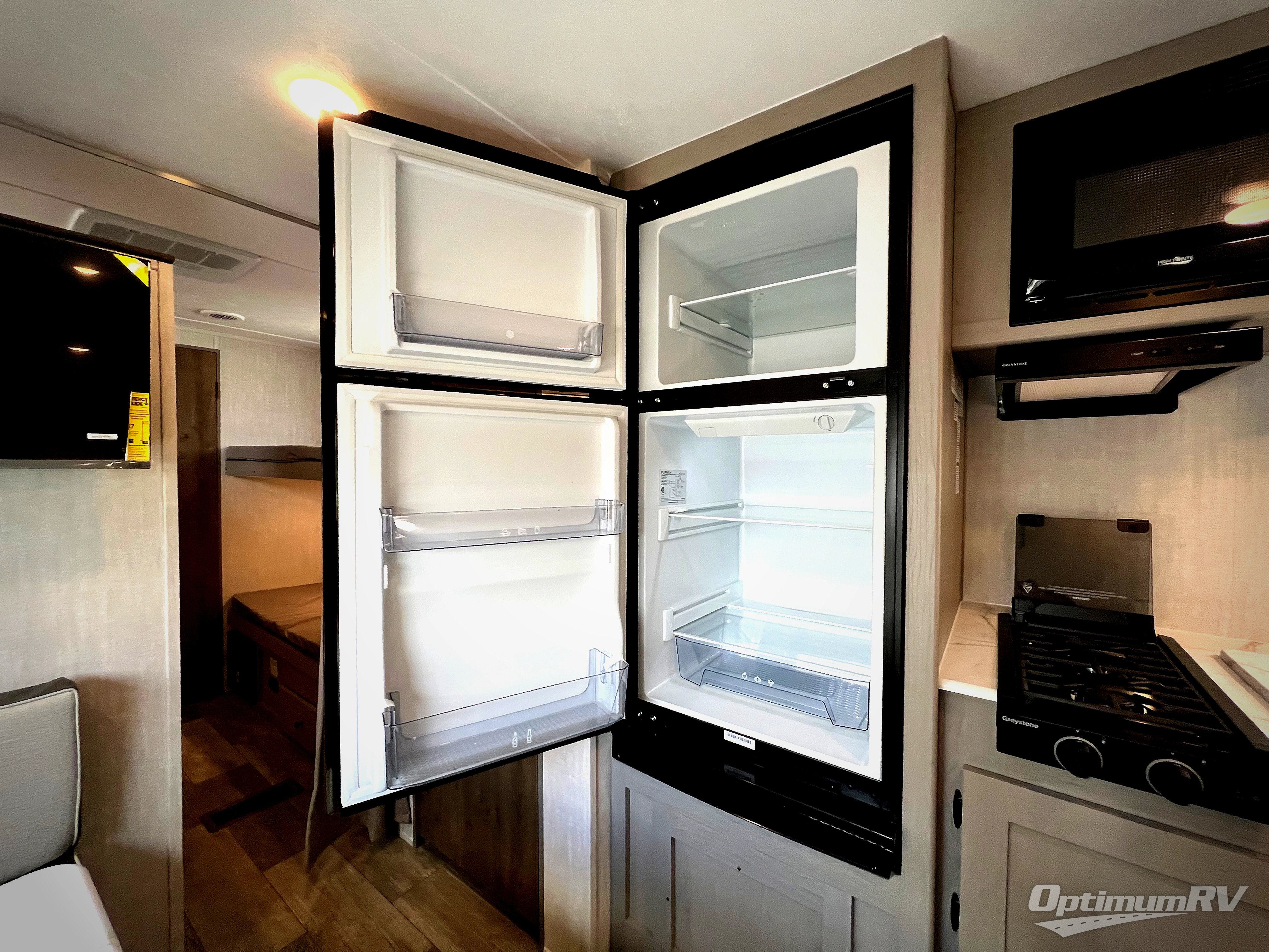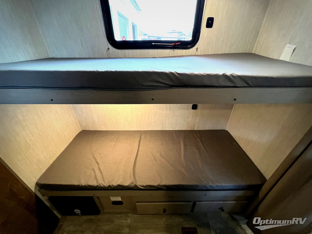 Your guests will love camping with you in this travel trailer! The bunkhouse suite includes four bunks with storage underneath plus a full rear bath to easily clean up each day. The front RV queen bed will provide a great night's rest, or you can choose the Murphy bed option if you're needing more seating space during the day. You can make your best meals in the full kitchen with a three burner cooktop and microwave oven, and there is an 8 cu. ft. 12V refrigerator to keep your cold items fresh. The U-shaped dinette provides a place to dine, play games, and even let additional guests sleep over. This unit also features a closet with washer and dryer prep if you choose to add those appliances.