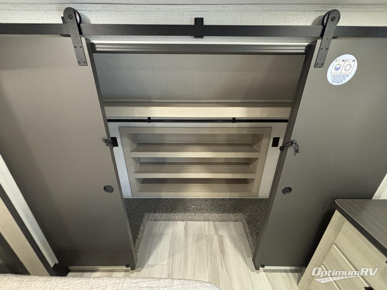 For the couple who love to cook, this fifth wheel is the perfect choice! There is generous counter space in the rear kitchen, along with overhead cabinetry, and a hi-top table and chairs for dining space. Beside the table is a desk with a chair and a campview window so you can still enjoy nature views if you have to work. When it's time to relax, the tri-fold sofa and theater seating in the living room will do the trick, or you can head outdoors to enjoy the two power awnings. A full bath will let you freshen up before bed, and speaking of bedtime, the king bed slide out in the front bedroom is sure to bring comfort. There is also a walk-in wardrobe with washer and dryer prep and a dresser to keep your space tidy!