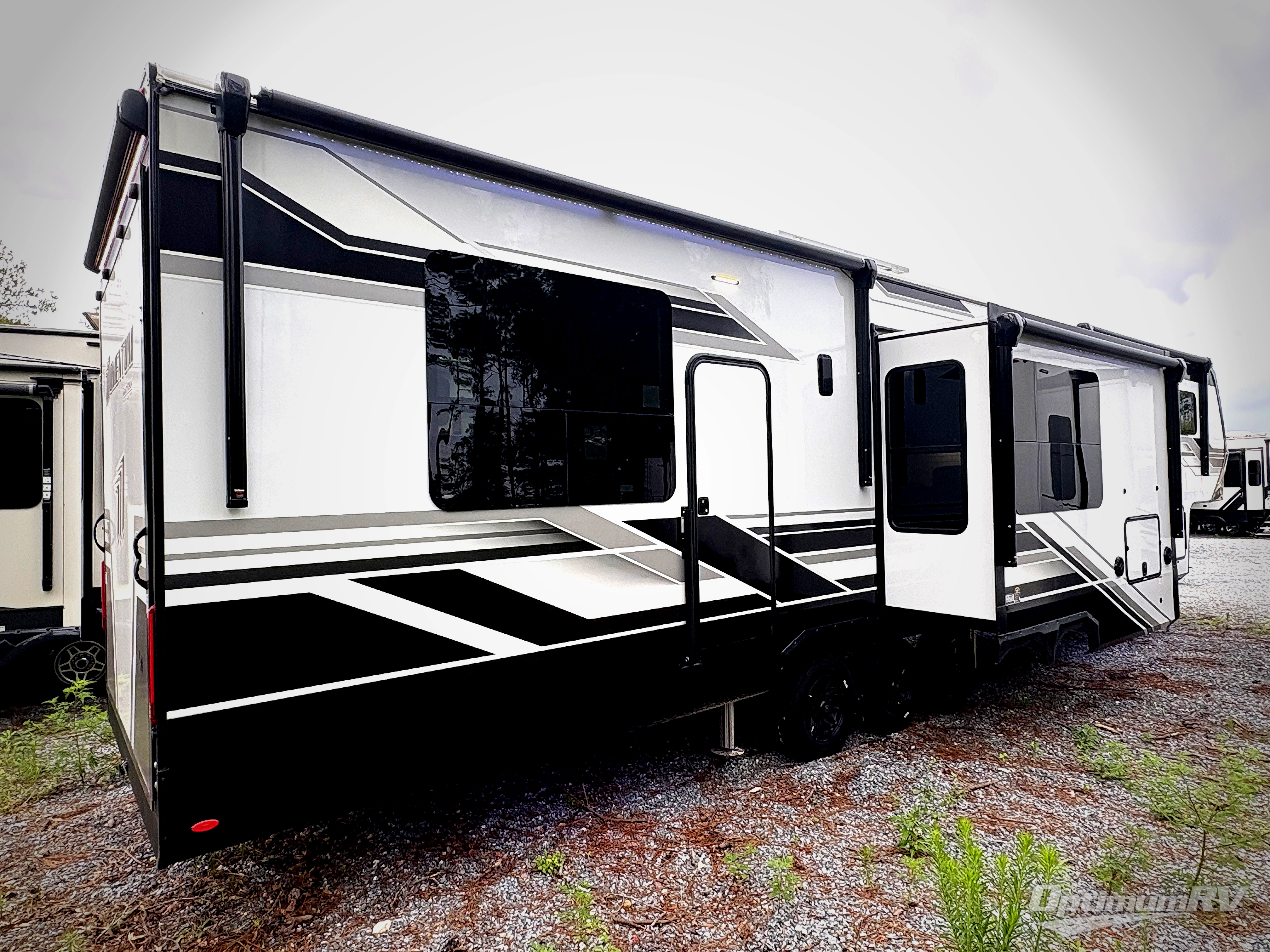 Grand Design Momentum M-Class 414M toy hauler fifth wheel highlights: