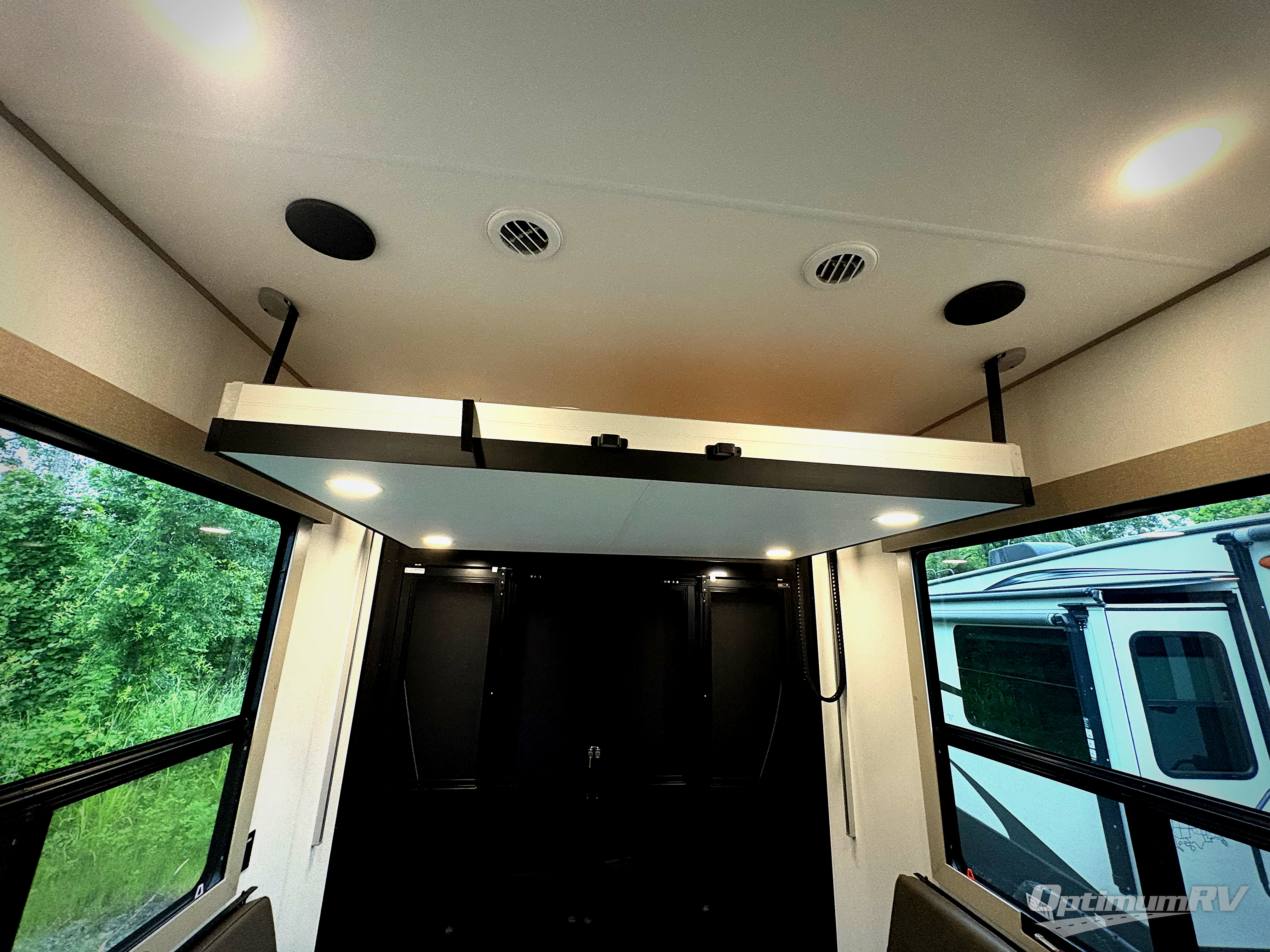 With any Momentum M-Class toy hauler by Grand Design, you will enjoy luxury at every turn! They have been constructed to a superior standard with a thermal roof design, triple insulated main floor and garage floor, and a Rail-Tite underbelly seal that will allow you to camp in all elements. Each model also features a, 8' 5" wide body chassis with a wide rail design, no wheel wheels, and a dovetail entry for easier loading. The Stealth A/C system provides maximum cooling power, and the CRE3000 suspension system means you can enjoy a smooth tow each time. You will love the luxurious interior with a professional grade stainless steel cooktop, interior color changing LED accent lighting, a fiberglass shower with a glass door, and solid surface countertops.