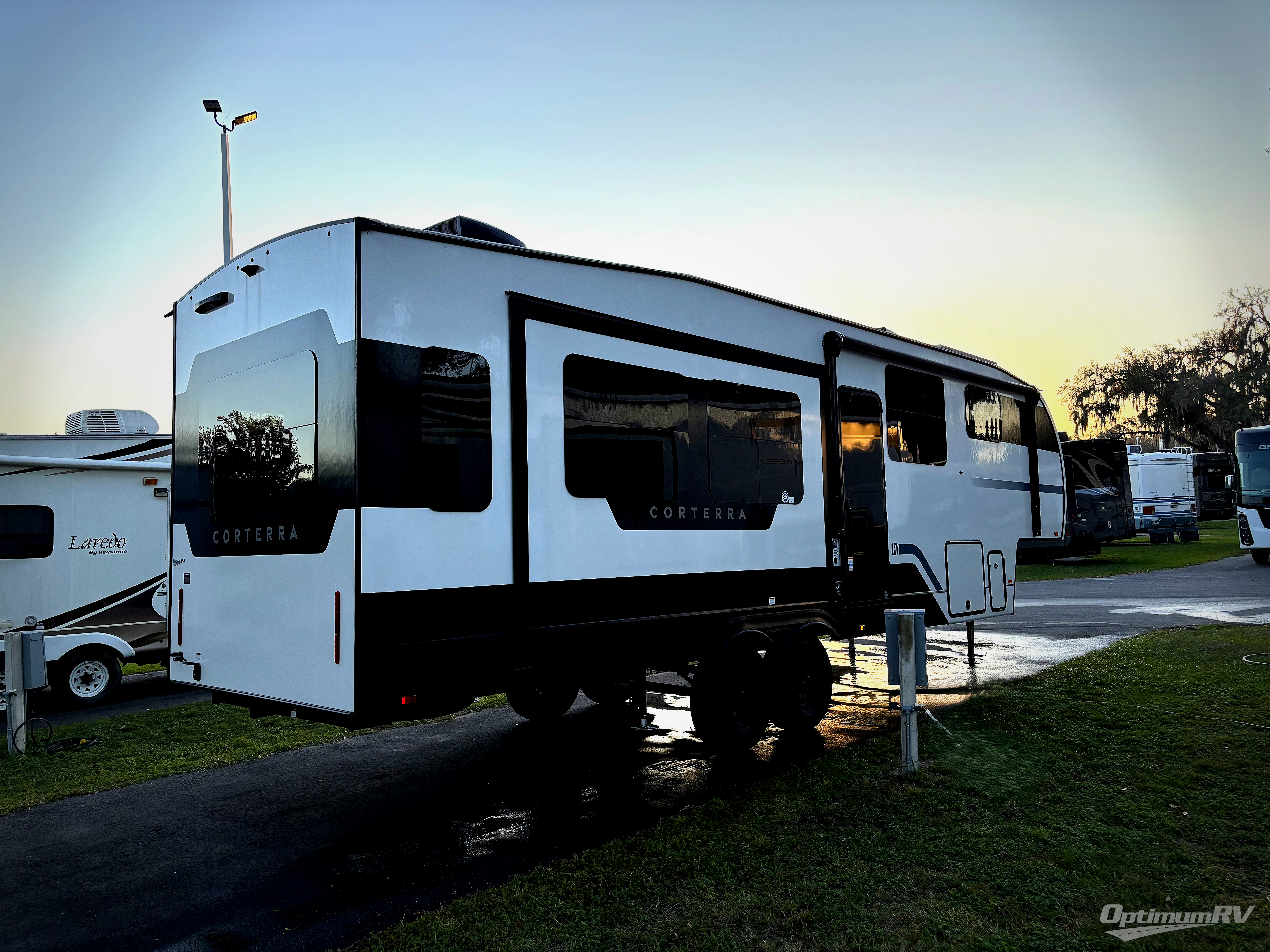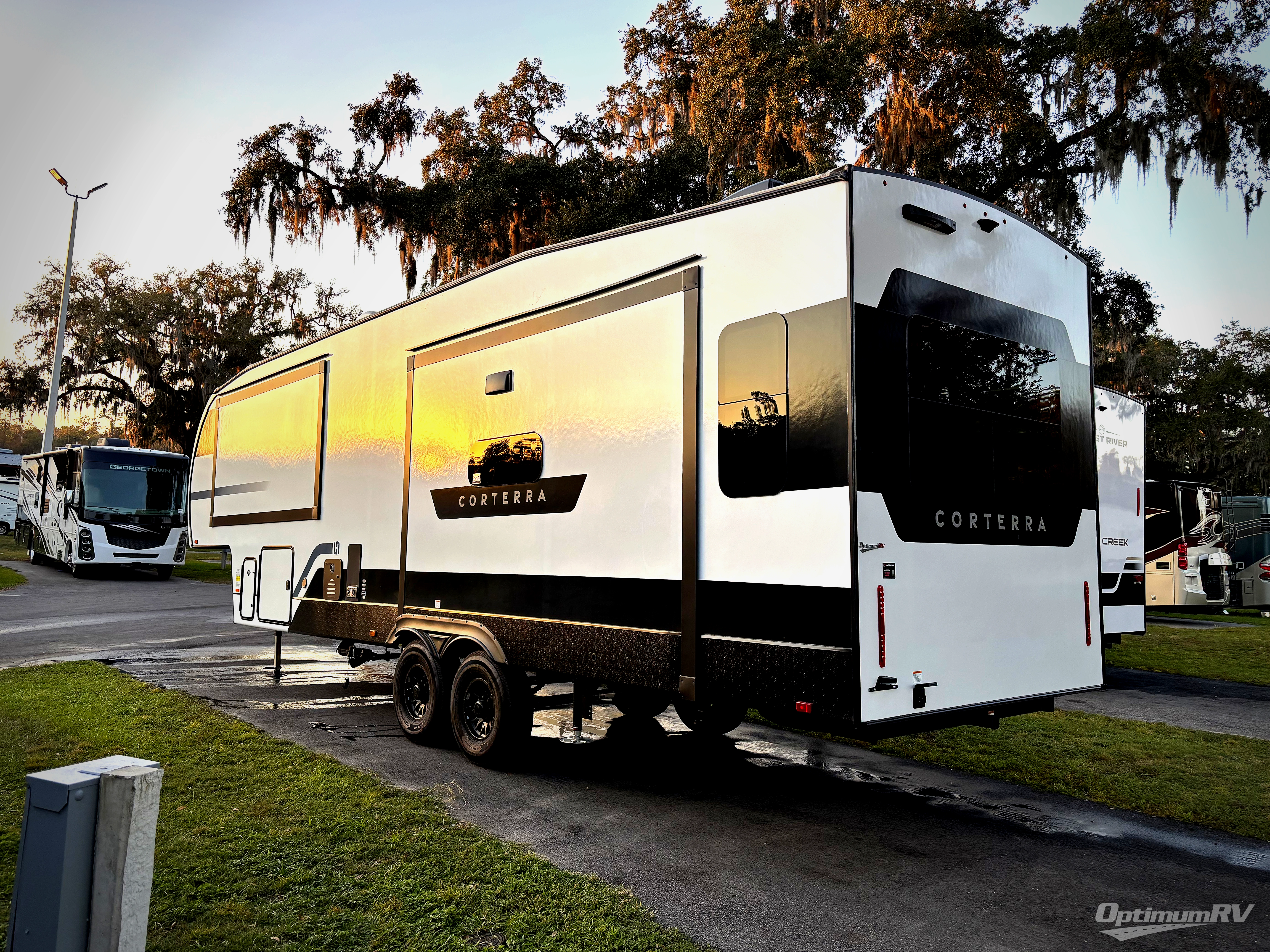Explore the open road with any one of these Heartland Corterra fifth wheels or travel trailers! They are built with a 8" I-beam, Azdel Onboard composite sidewalls, and a heated and enclosed underbelly to protect your unit's vitals. The Vault XL and color coded wiring makes it easy to navigate through it and the exclusive TRIO airflow AC system ensures maximum cooling to keep you cooled off on a hot summer day. You can safely enter and exit the unit through the deluxe tinted glass entry door with Extended Safe-T entry grab handle. The interiors abound in luxury with hidden storage throughout, a wine and/or coffee bar for entertaining, and a residential appliance package for home cooked meals everywhere you go. Come find your favorite one today!