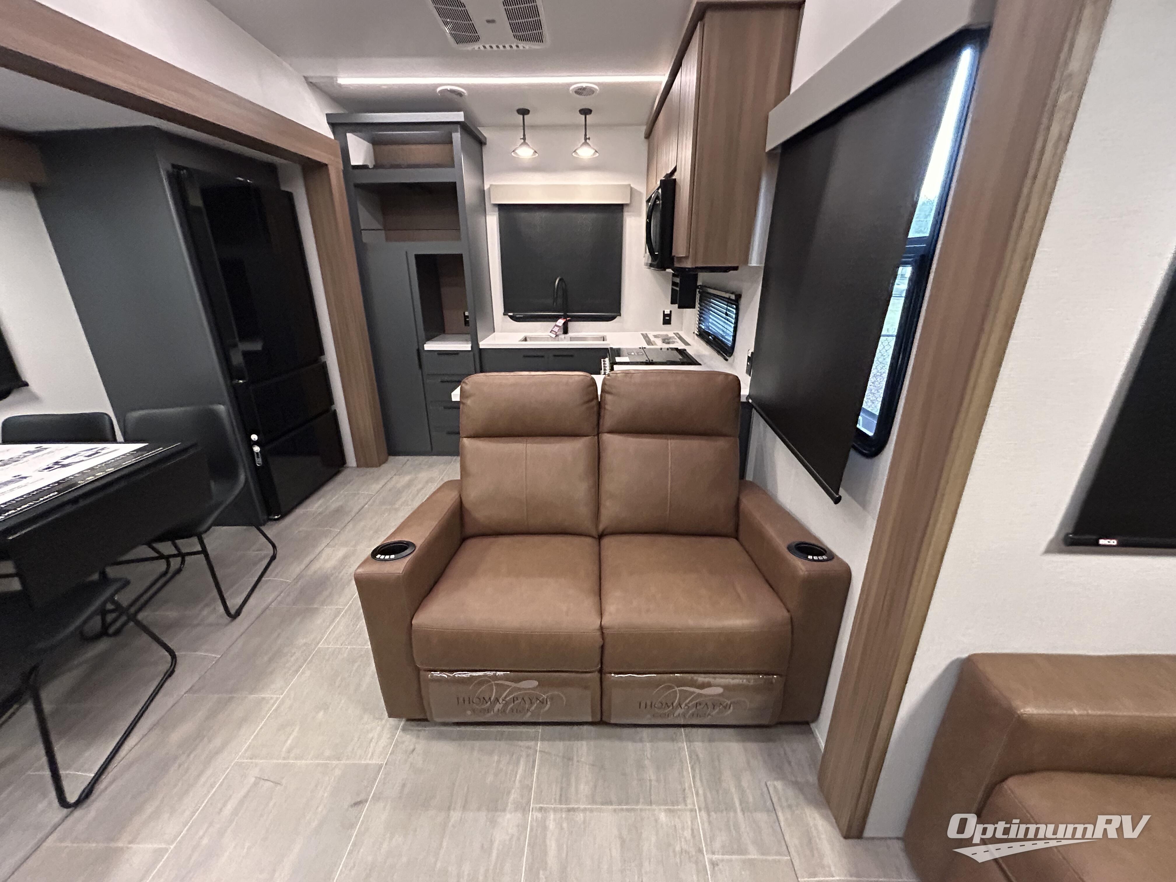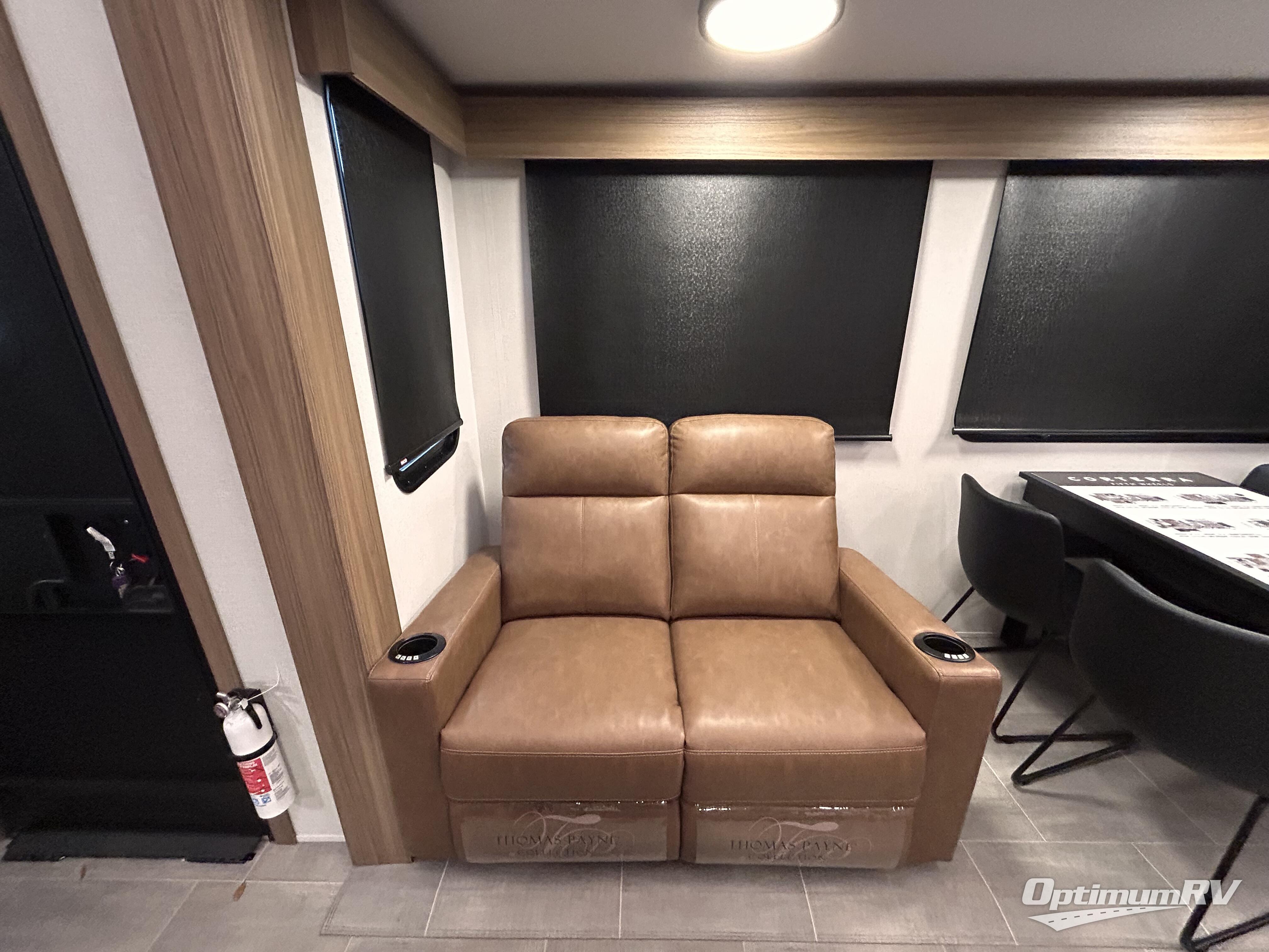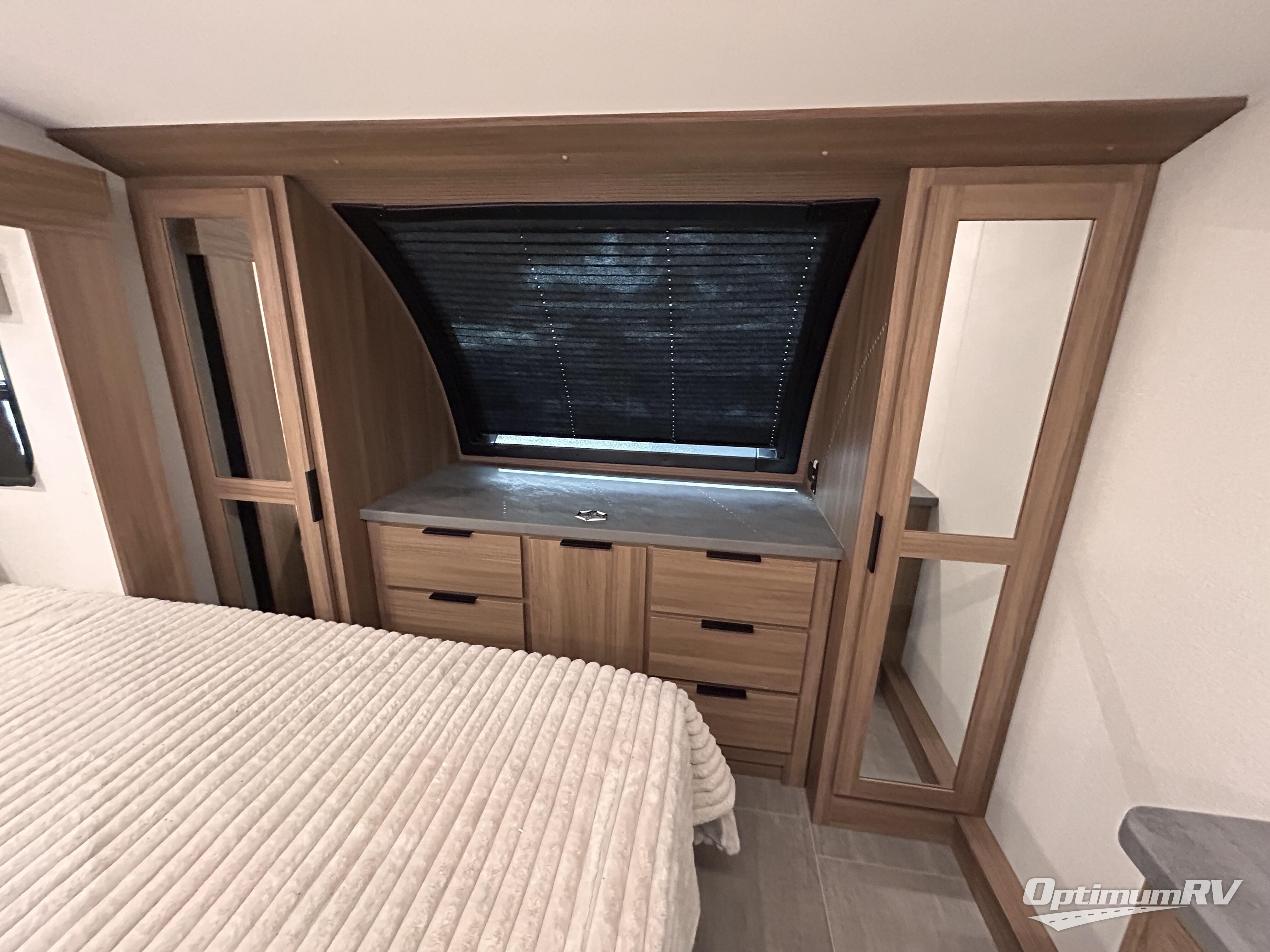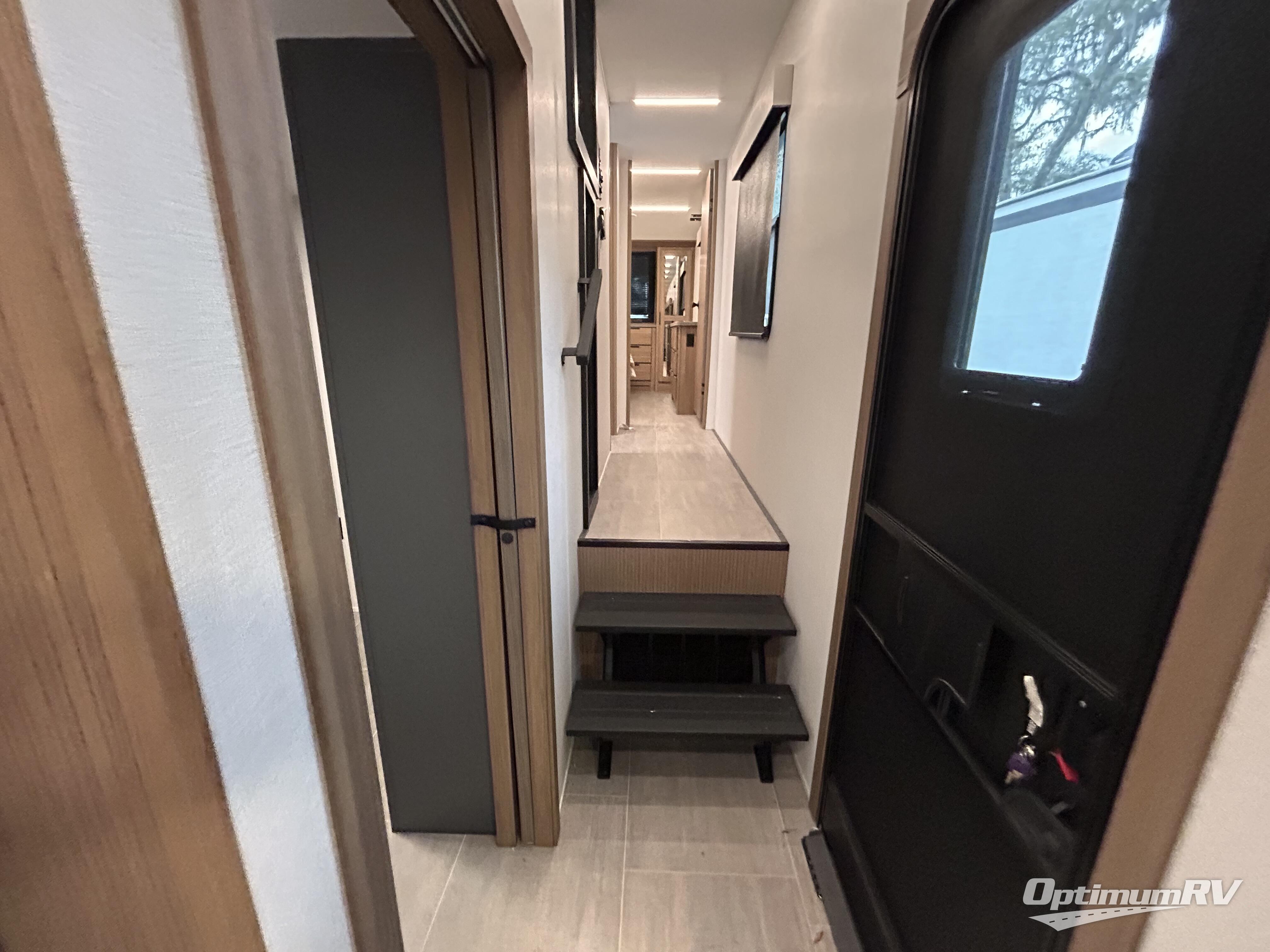 This fifth wheel is big enough for the whole group to go camping! The front master suite has a 72" x 80" king bed slide across from a dresser and next to an area prepped for a washer and dryer, plus there is a front dresser with wardrobes on either side and even an entrance into the dual entry bathroom. The bathroom has a radius shower to freshen up in each morning and a lighted mirror to make it easier for seeing as you get ready. There is also a second bedroom that has a loft above a sofa slide, a wardrobe, and an entertainment center. The chef will have a great time preparing their best meals in the rear kitchen with the countertop space, 16 cu. ft. refrigerator big enough for their favorite ingredients, a 22" oven to cook fresh cinnamon rolls, and a 30" over the range microwave to pop a bag of popcorn on movie night, plus there are optional barstools that you can add for a breakfast area. Just outside the kitchen is the living area where you can relax in true comfort on the residential furniture with hidden cup holders and USB charging ports by the electric fireplace with hidden storage!