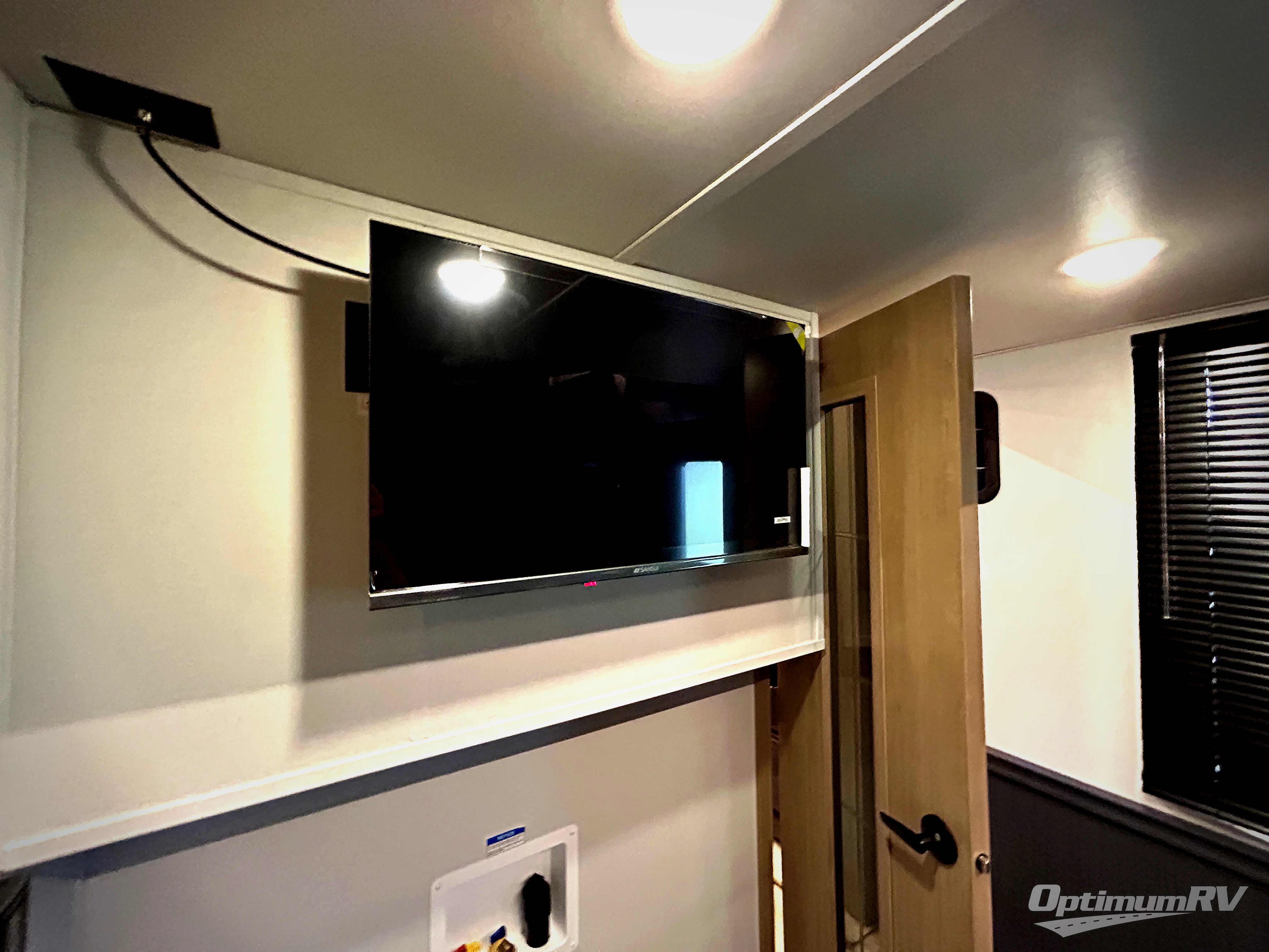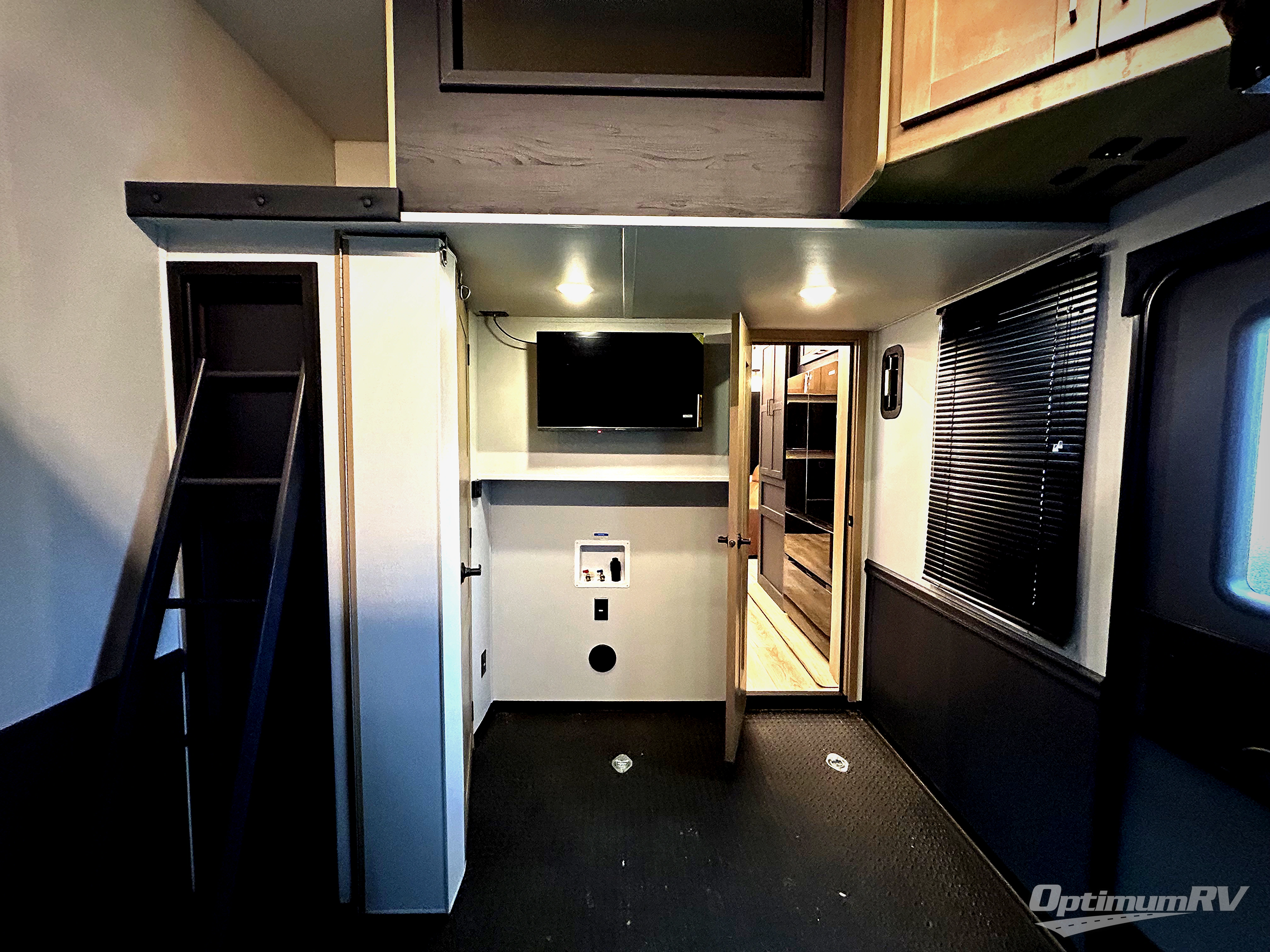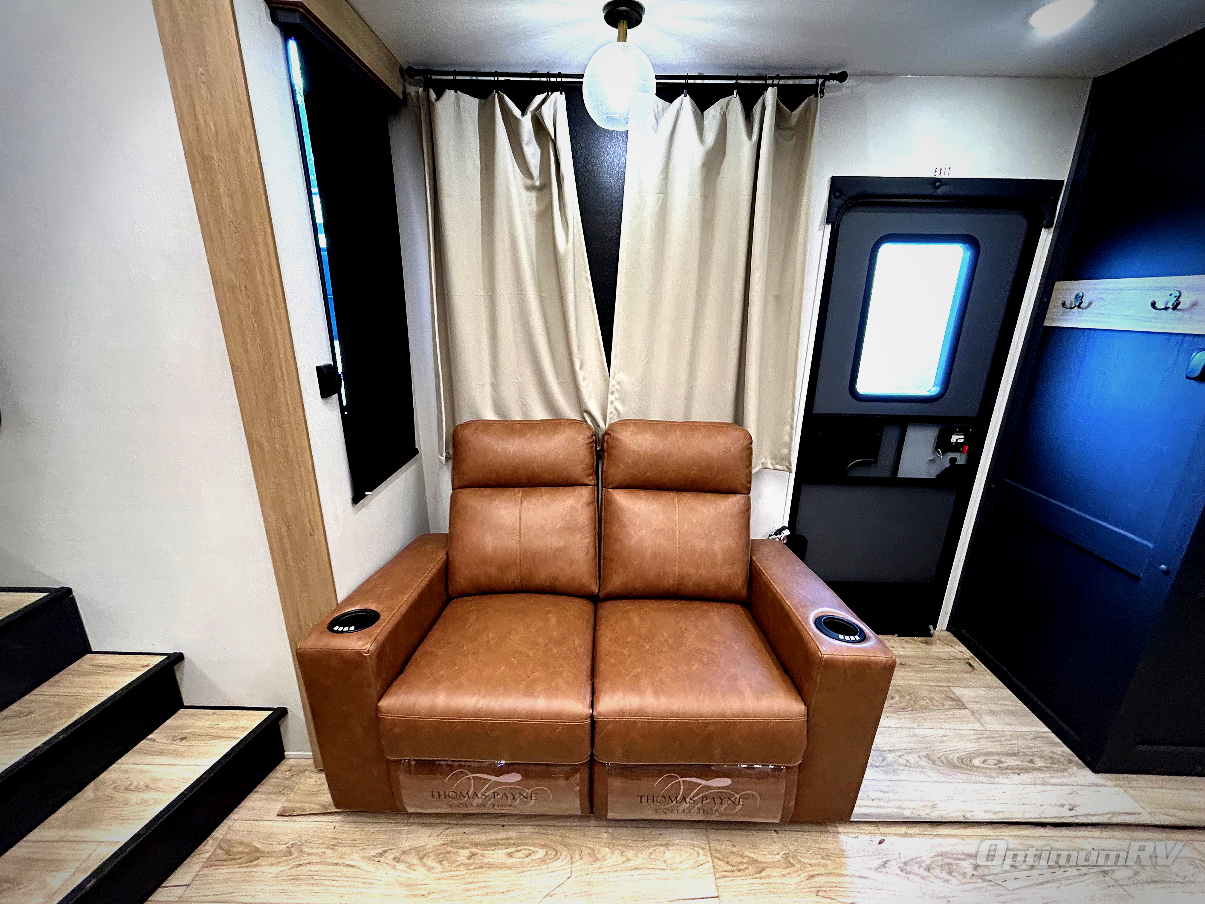 Everyone will have a comfortable place to sit in this toy hauler with the dual opposing theater seating slides and the third theater seating across from the 50" LCD HDTV! The 3,000 lb. weather resistant 8' ramp door makes it easy to load your toys into the 13' garage, and your guest can make this their bedroom at night. Here, you'll find an electric queen bed with a split bench seat/bed underneath, a half bath, plus a loft. There is even washer and dryer prep for wash day! The kitchen includes plenty of countertop space to prepare your best home cooked meals, or you can head outside to cook on the outdoor Grill N Go three burner griddle combo!
