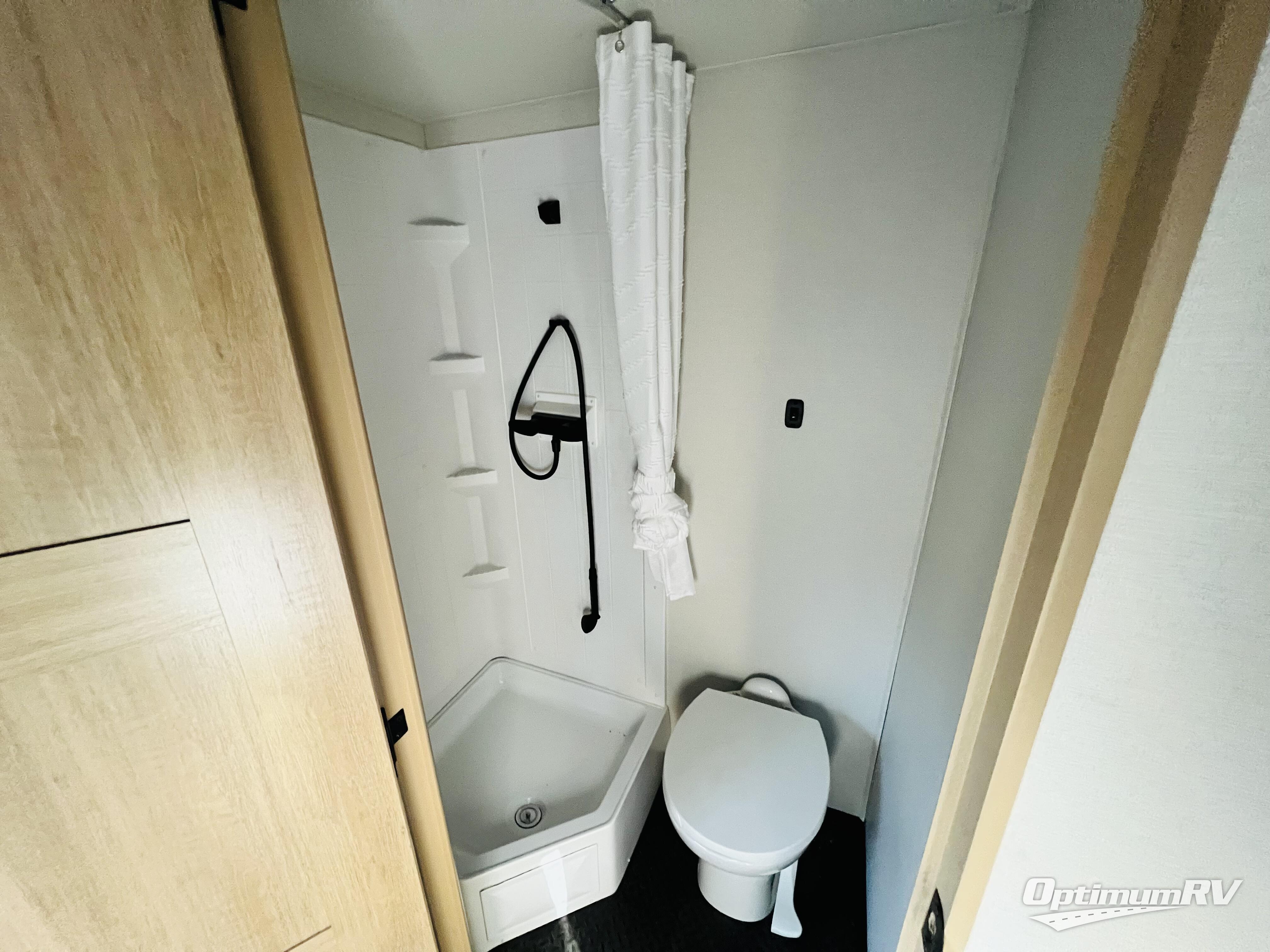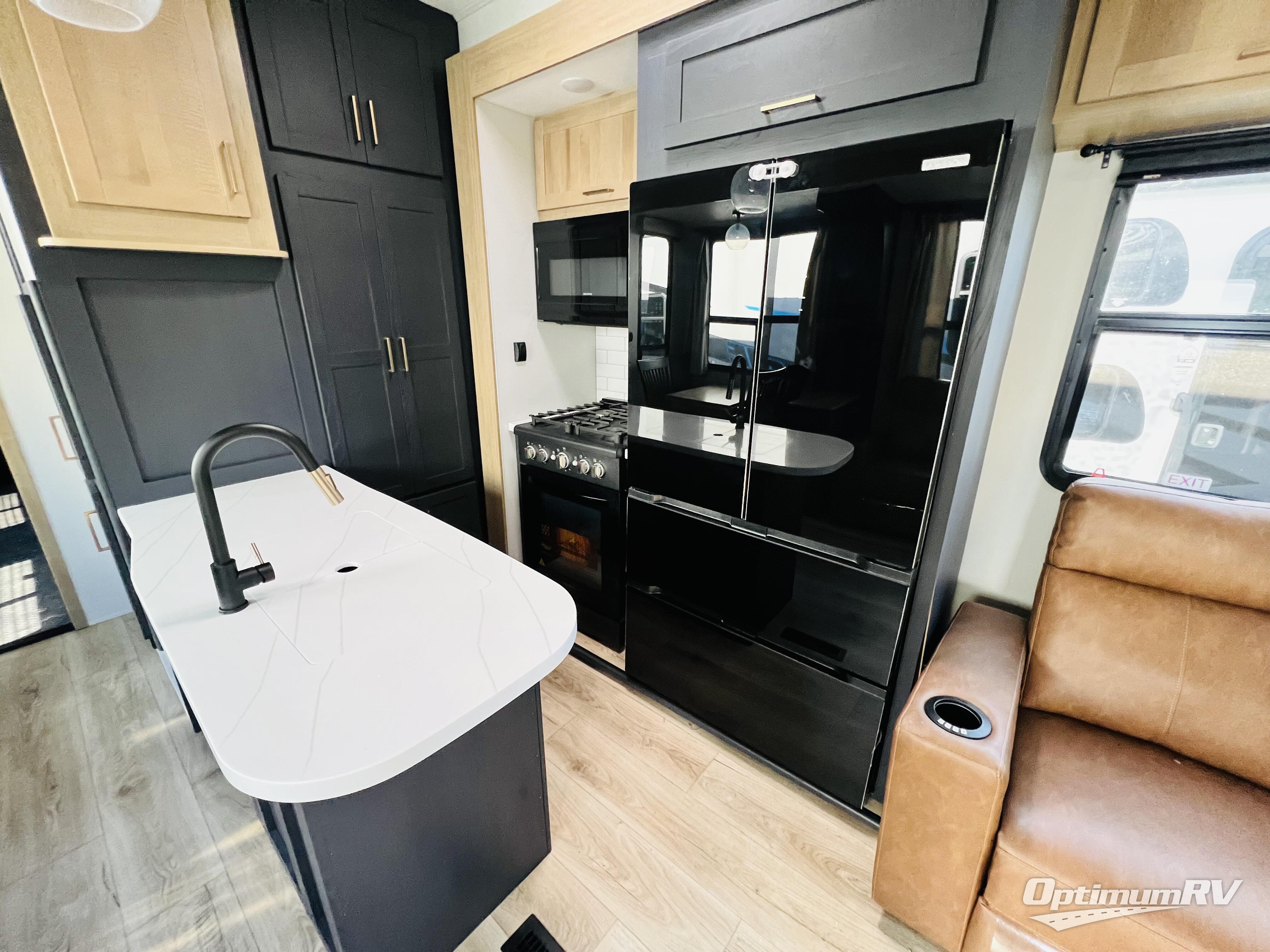 This toy hauler with two full bathrooms is a clean decision! You can prepare delicious home cooked meals for everyone in the fully equipped kitchen with island peninsula for plenty of prepping space, plus there is a hutch to store your dishes. The garage has a bathroom with a neo-angled shower so mud doesn't get tracked throughout the rest of the unit and two loft areas for extra sleeping space. With two awnings, you are sure to stay protected rain or shine and one of the awnings even protects the Grill N Go three burner griddle combo. Enjoy a good night's rest on the tilting king bed slide, keep your clothes looking their best with the front wardrobe, and the washer and dryer prep give you the option to make laundry day easier than ever. You will also have quick access into the dual entry bath!