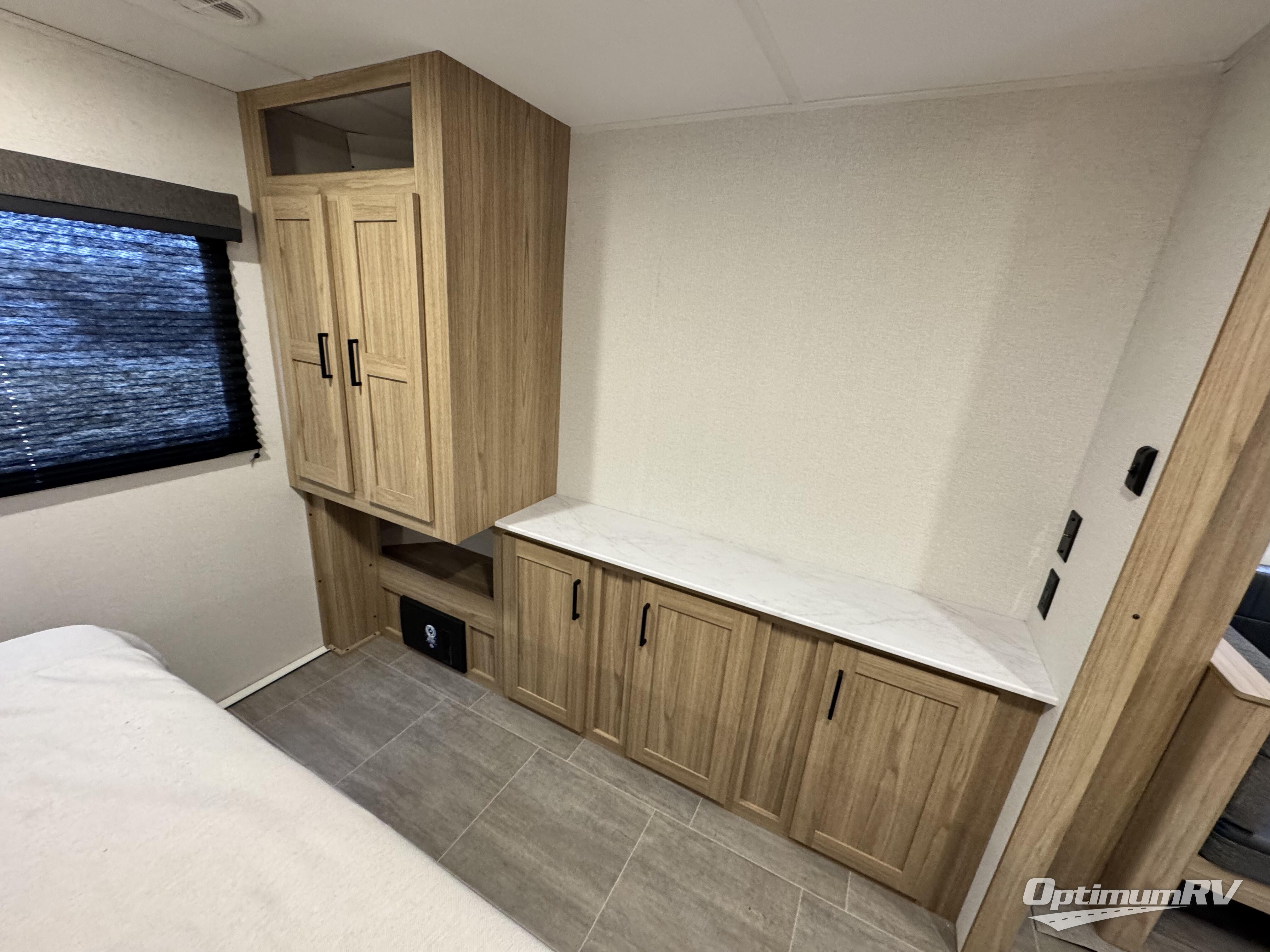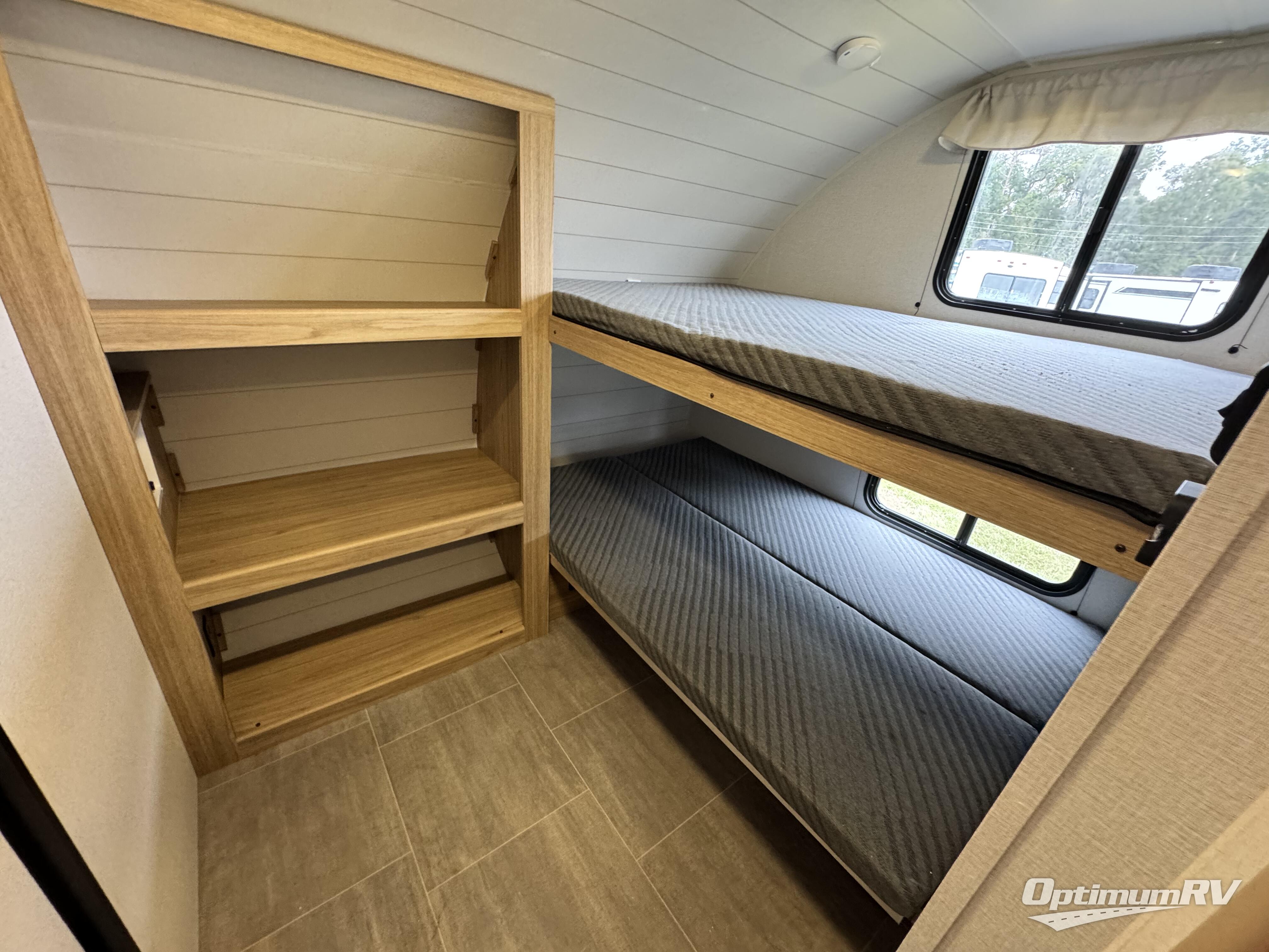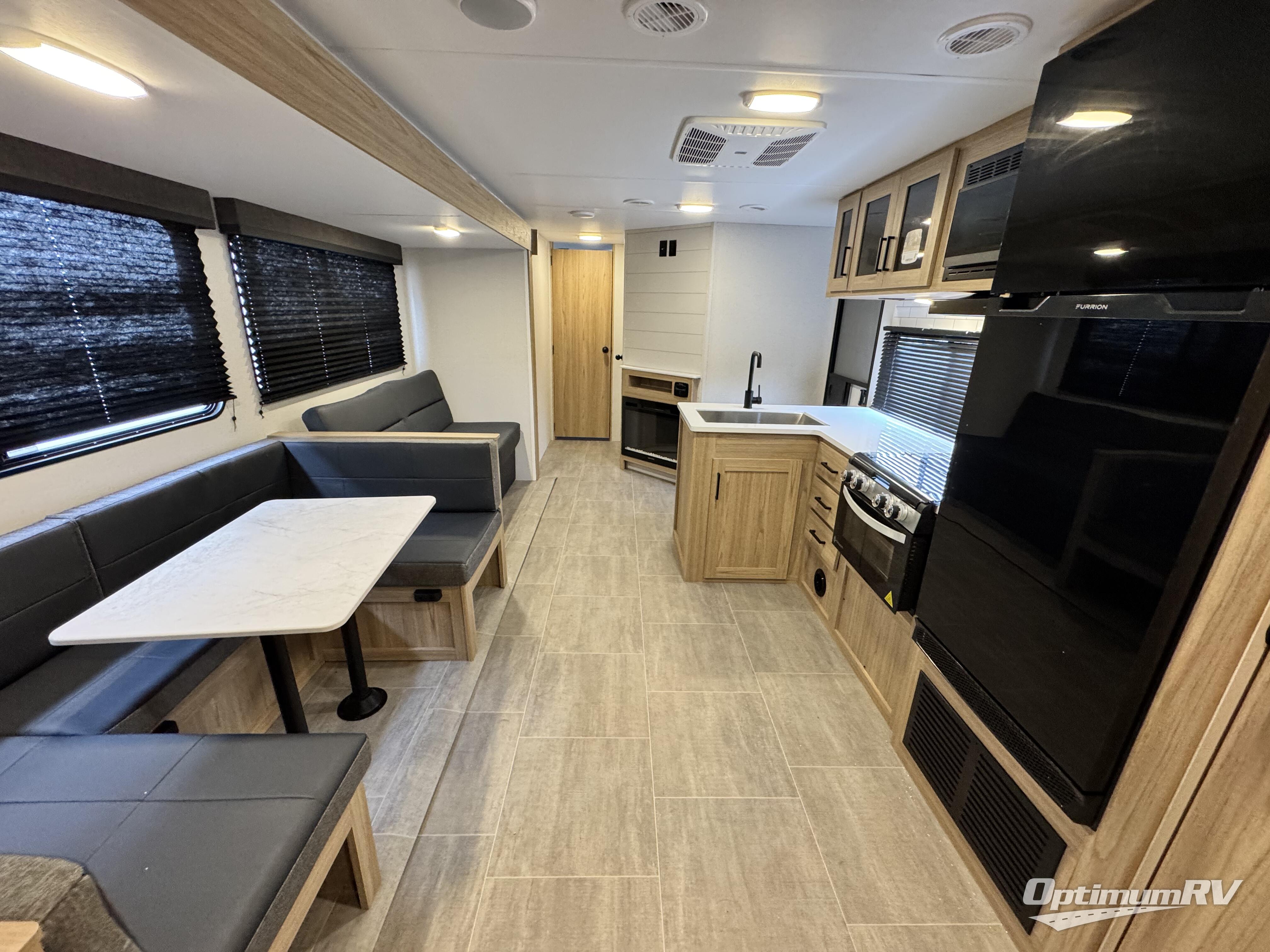 Camping just got a whole lot sweeter in this double slide out travel trailer for nine people. Your guests can stay in the front private bunkhouse that includes double-size bunks with removable lower bunks so you can easily pack in gear! You will enjoy the rear private bedroom with a queen bed slide out, a wardrobe, plus a dresser with TV prep. The main living area is spacious with its large slide out, and everyone can dine around the U-shaped dinette. There is also a sofa here and an entertainment center with a fireplace. Bring your own TV and you're ready for movie night! And check out the outdoor kitchen with a griddle for a pancake breakfast!