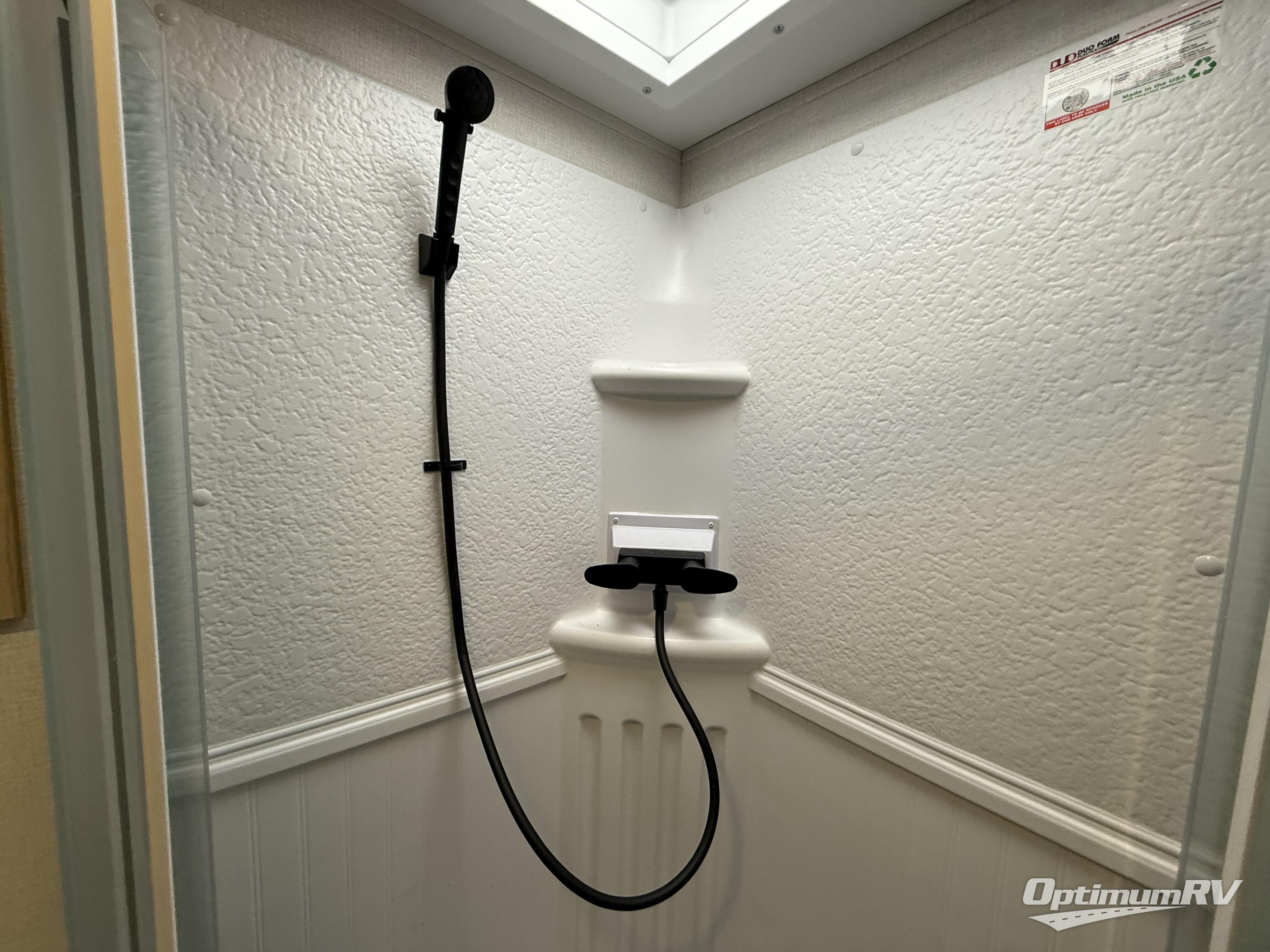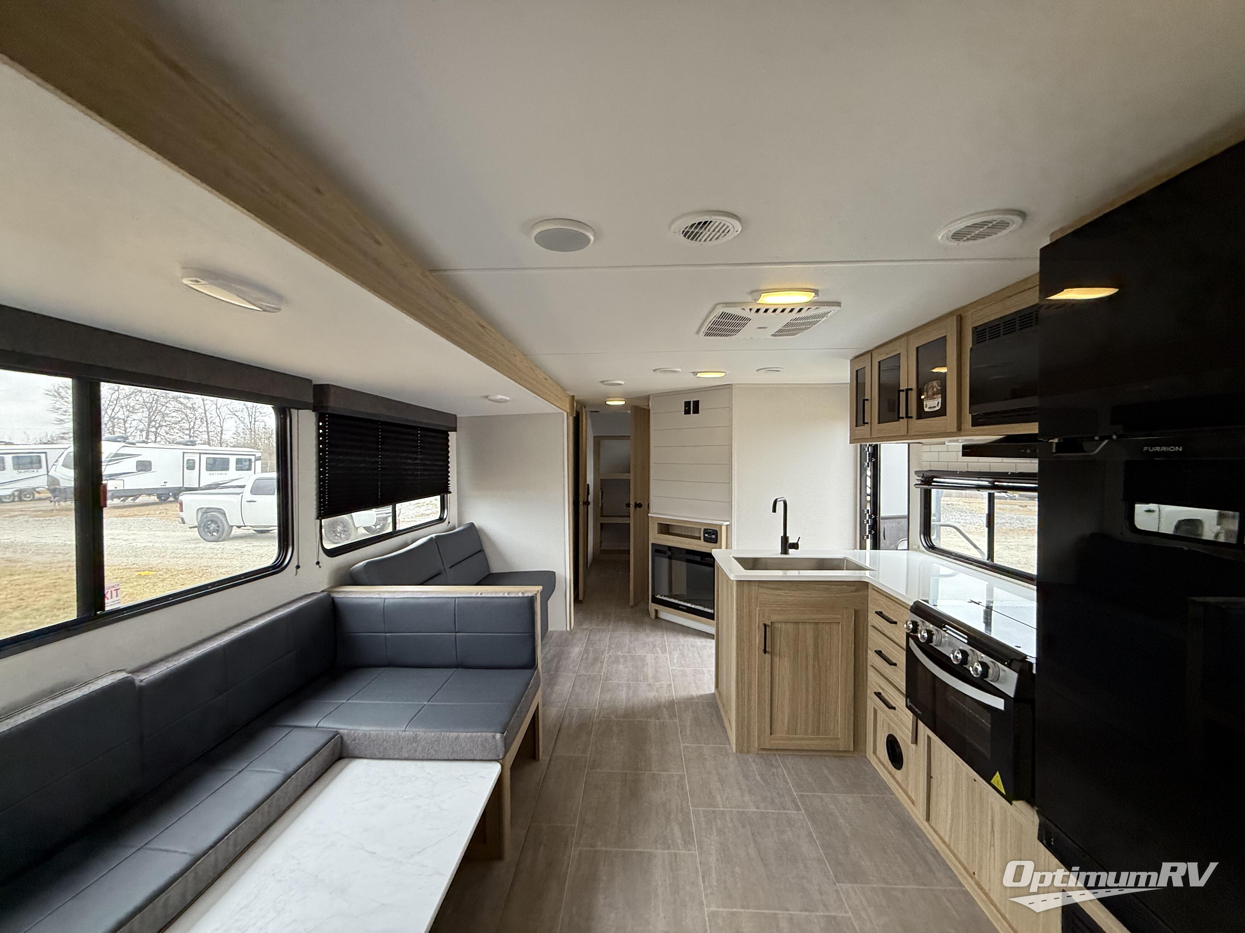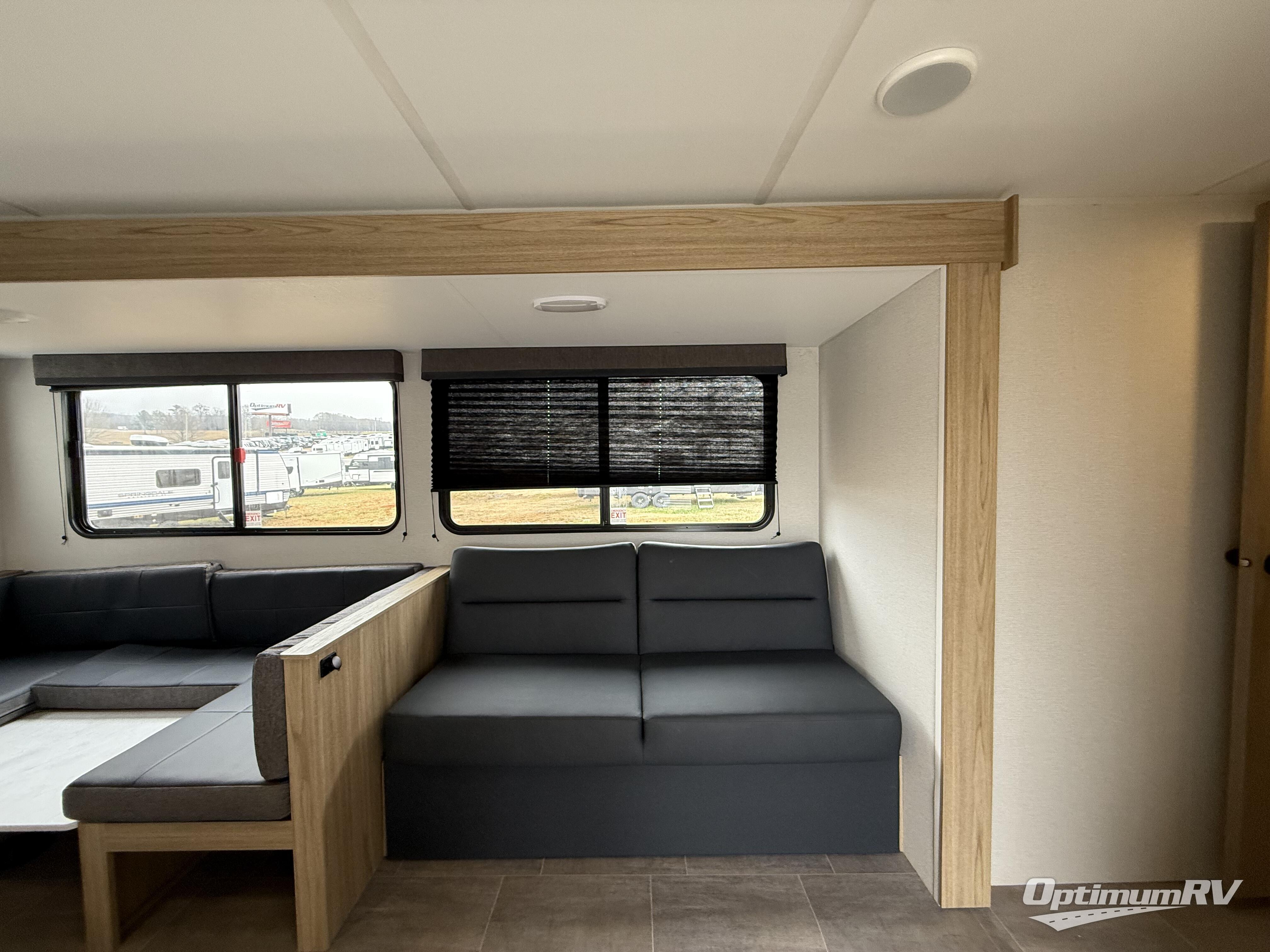 Camping just got a whole lot sweeter in this double slide out travel trailer for nine people. Your guests can stay in the front private bunkhouse that includes double-size bunks with removable lower bunks so you can easily pack in gear! You will enjoy the rear private bedroom with a queen bed slide out, a wardrobe, plus a dresser with TV prep. The main living area is spacious with its large slide out, and everyone can dine around the U-shaped dinette. There is also a sofa here and an entertainment center with a fireplace. Bring your own TV and you're ready for movie night! And check out the outdoor kitchen with a griddle for a pancake breakfast!