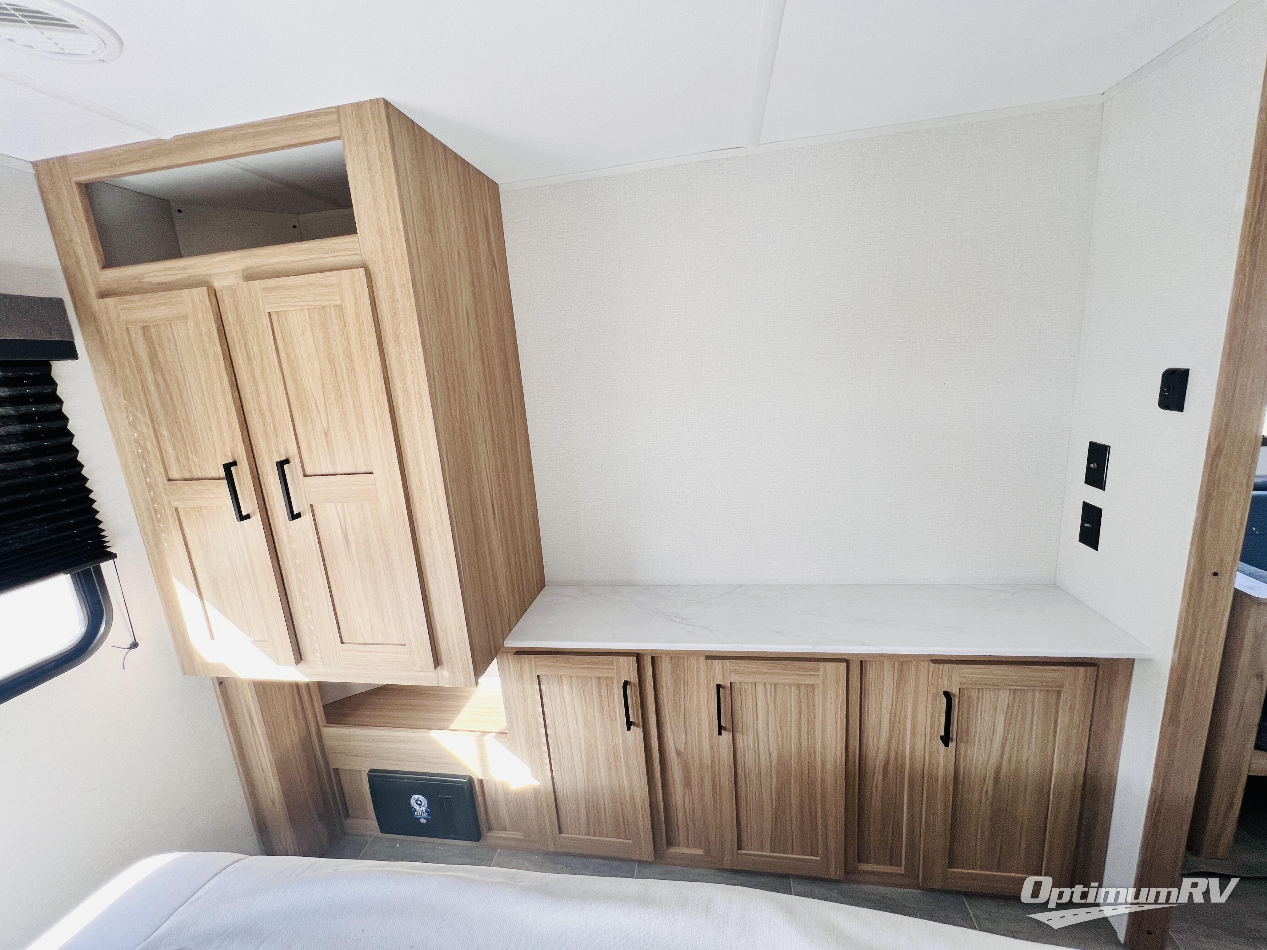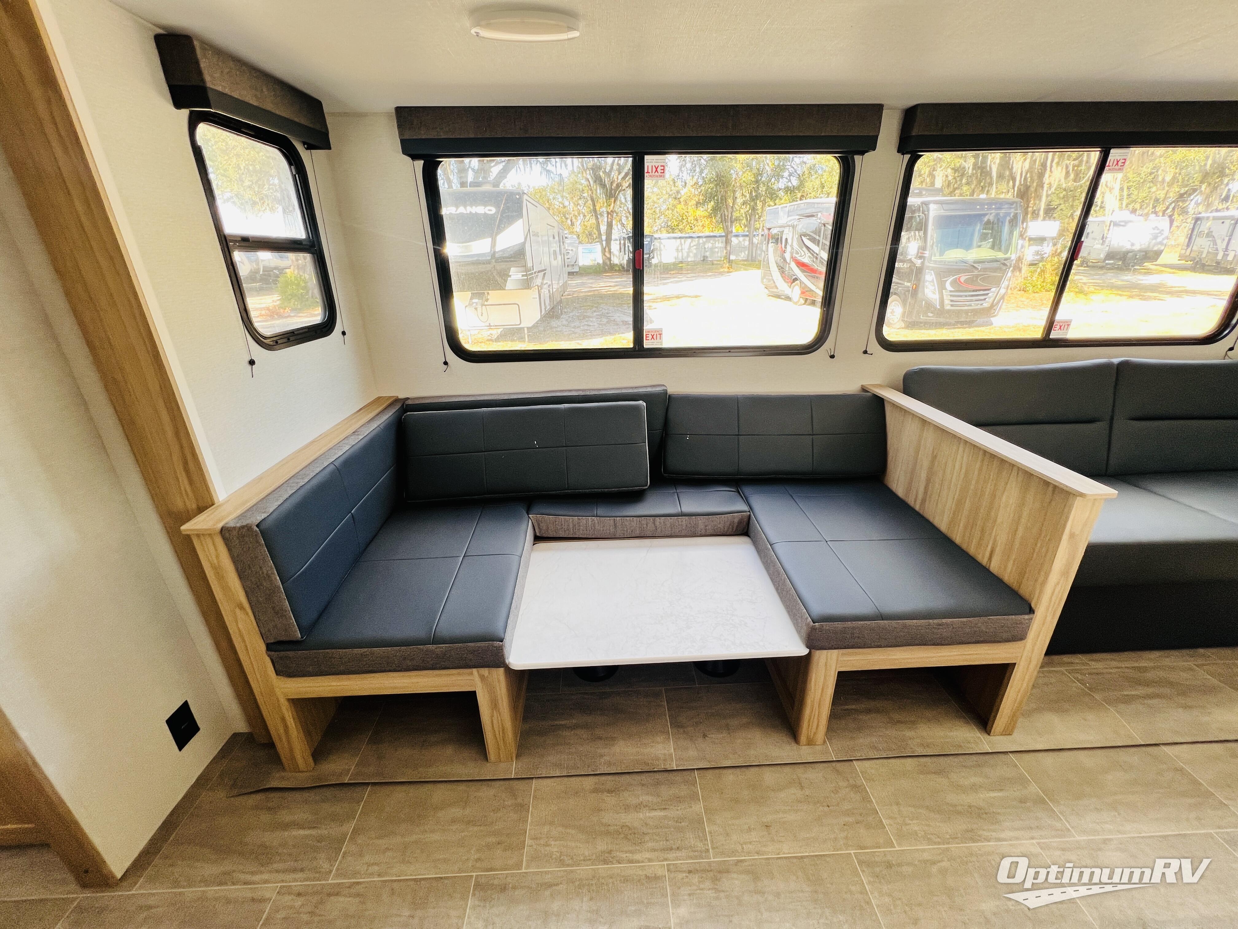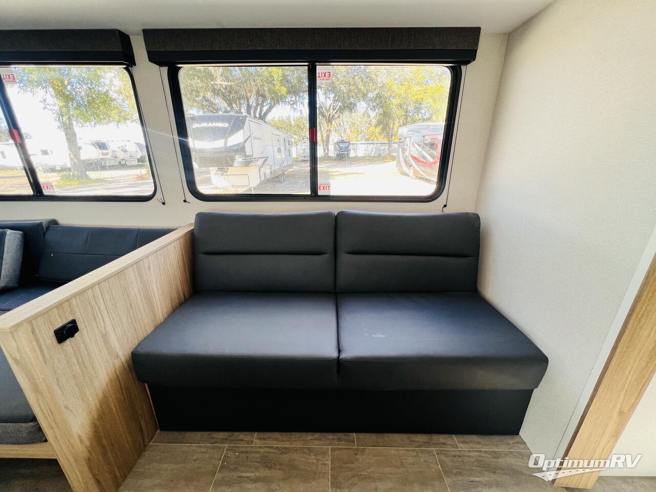 Camping just got a whole lot sweeter in this double slide out travel trailer for nine people. Your guests can stay in the front private bunkhouse that includes double-size bunks with removable lower bunks so you can easily pack in gear! You will enjoy the rear private bedroom with a queen bed slide out, a wardrobe, plus a dresser with TV prep. The main living area is spacious with its large slide out, and everyone can dine around the U-shaped dinette. There is also a sofa here and an entertainment center with a fireplace. Bring your own TV and you're ready for movie night! And check out the outdoor kitchen with a griddle for a pancake breakfast!