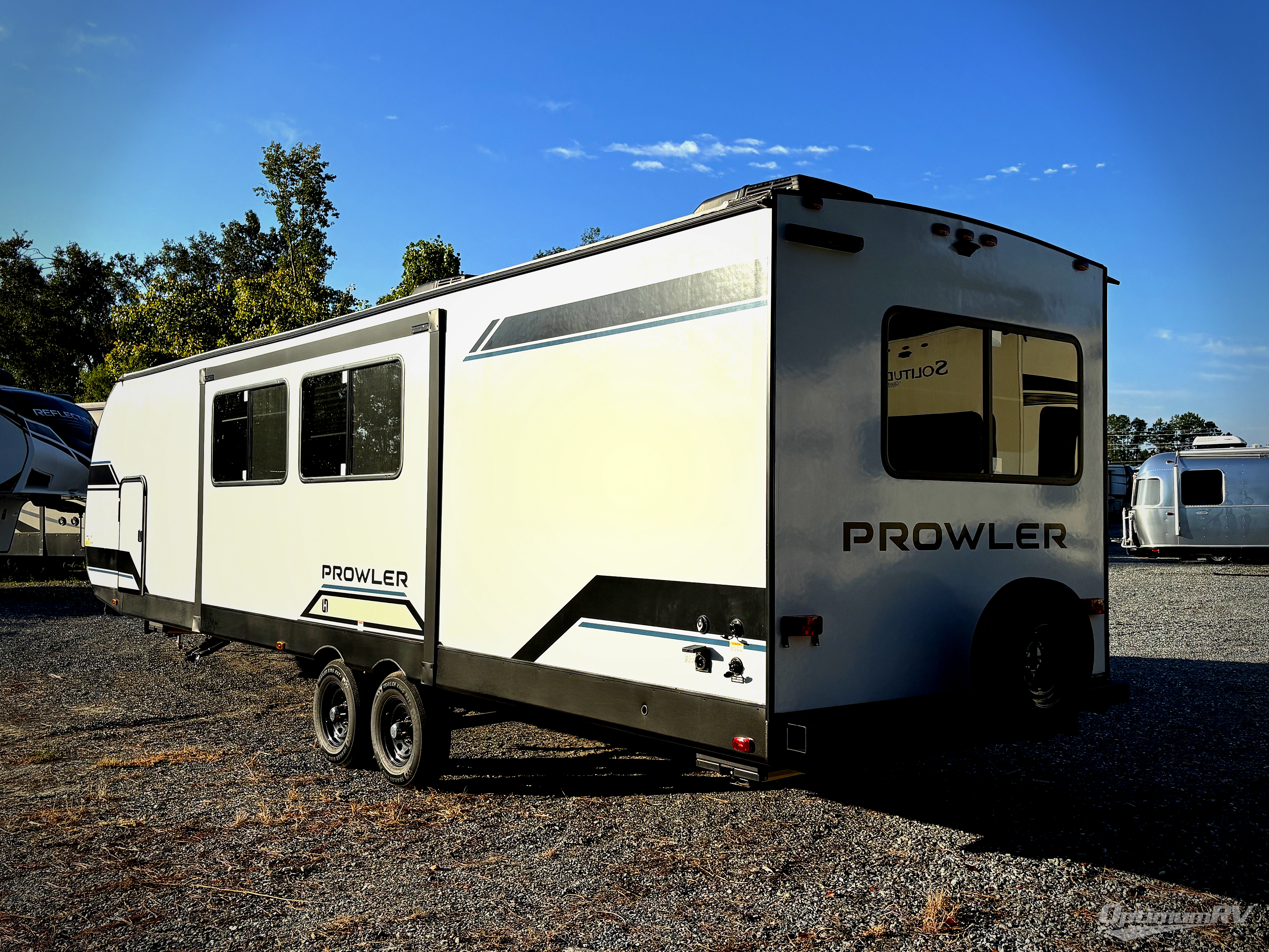 Get ready for comfortable and easy camping with the Prowler travel trailers by Heartland. These models feature durable construction with a performastructure aluminum front wall, a cambered structural steel I-beam frame, and a fully walkable roof. The MEGA bright pass-through storage features 52 cu. ft. of exterior storage with mega sized access doors, LED lights, and a finished interior to keep your gear secure. You'll fall in love with the at-home kitchen the includes Duralast countertops, a residential refrigerator, plus a stainless steel double bowl undermount sink for easy clean-up. These travel trailers also feature panoramic windows, an EZ clean interior, USB charging ports throughout, and many more comforts! Don't let the Prowler travel trailers slip away. Don't let the Prowler travel trailers slip away. Choose your favorite floorplan today!