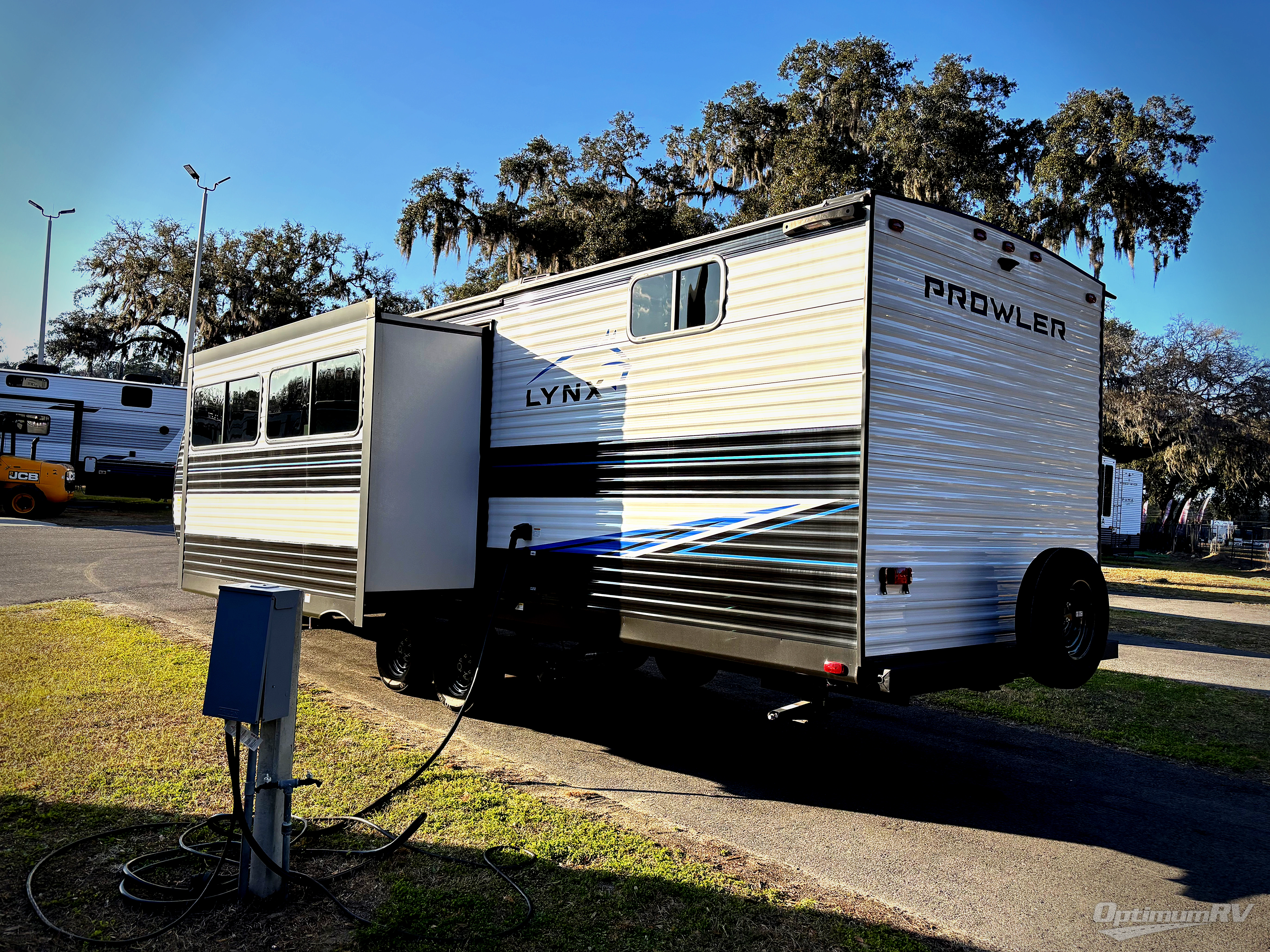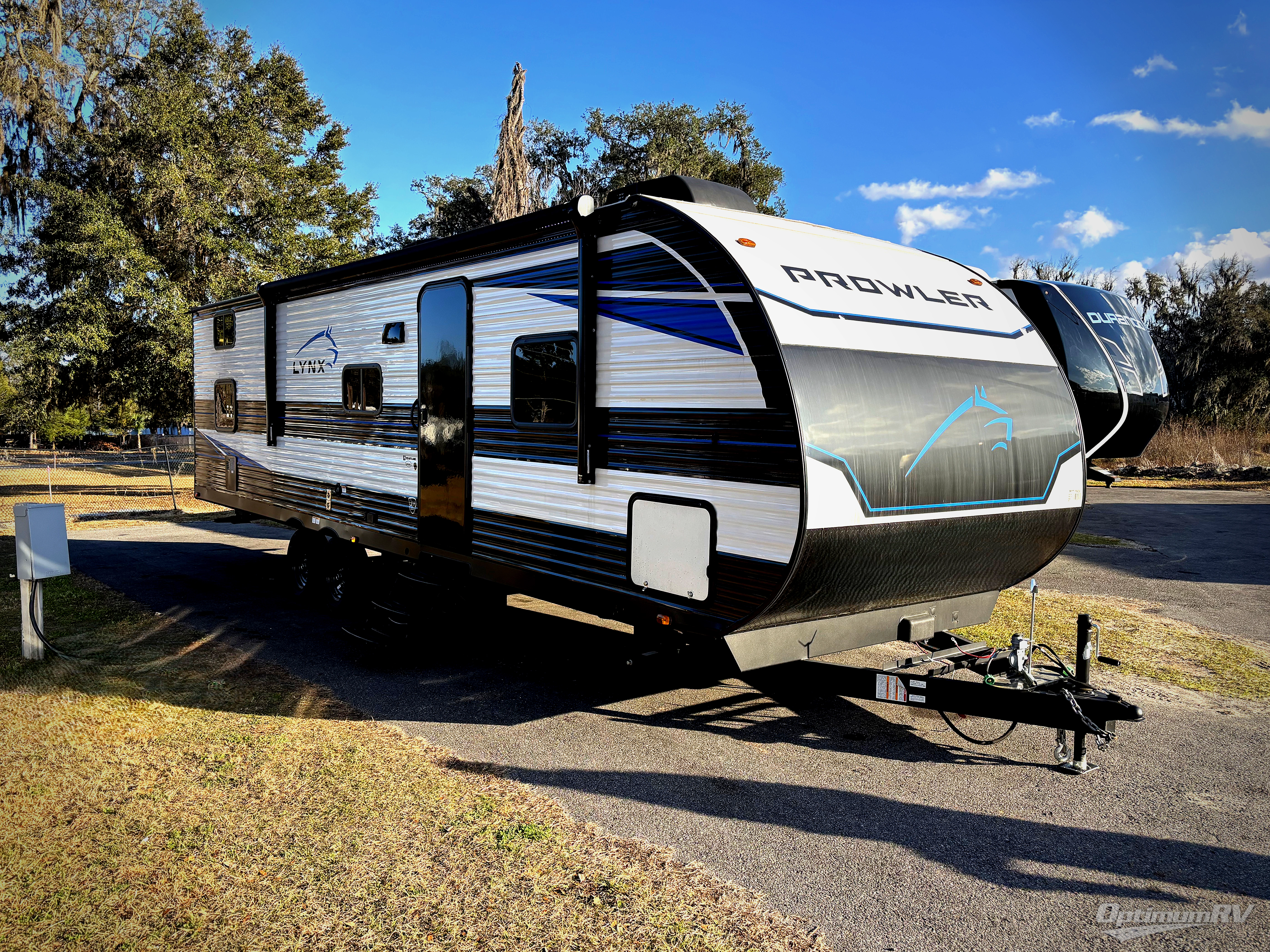 Get ready for comfortable and easy camping with the Prowler Lynx travel trailers by Heartland. Each model includes full bath and kitchen amenities, comfortable seating and sleeping spaces, and plenty of storage spaces that will help you keep camp gear and personal belongings clean and neat! The power awning with an LED light strip outdoors will provide shade when you need it, and the LED interior lights will keep your space well lit. These units also include USB ports to keep your electronics charge, a systems monitor panel, night shades in the living area and bedroom, plus many more conveniences to make life at the campground easier than ever!