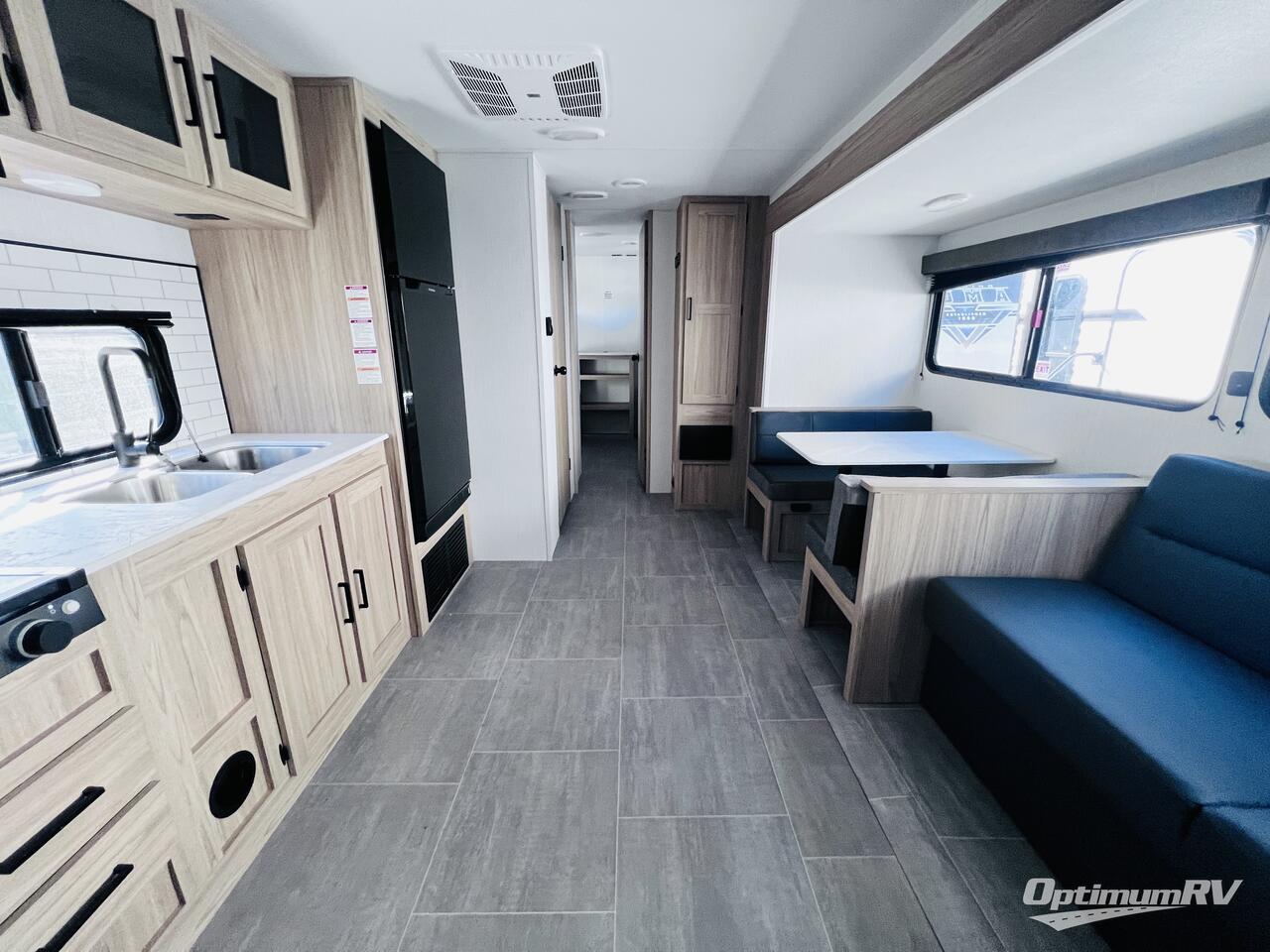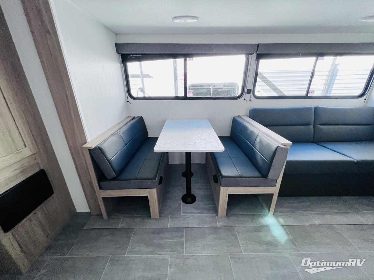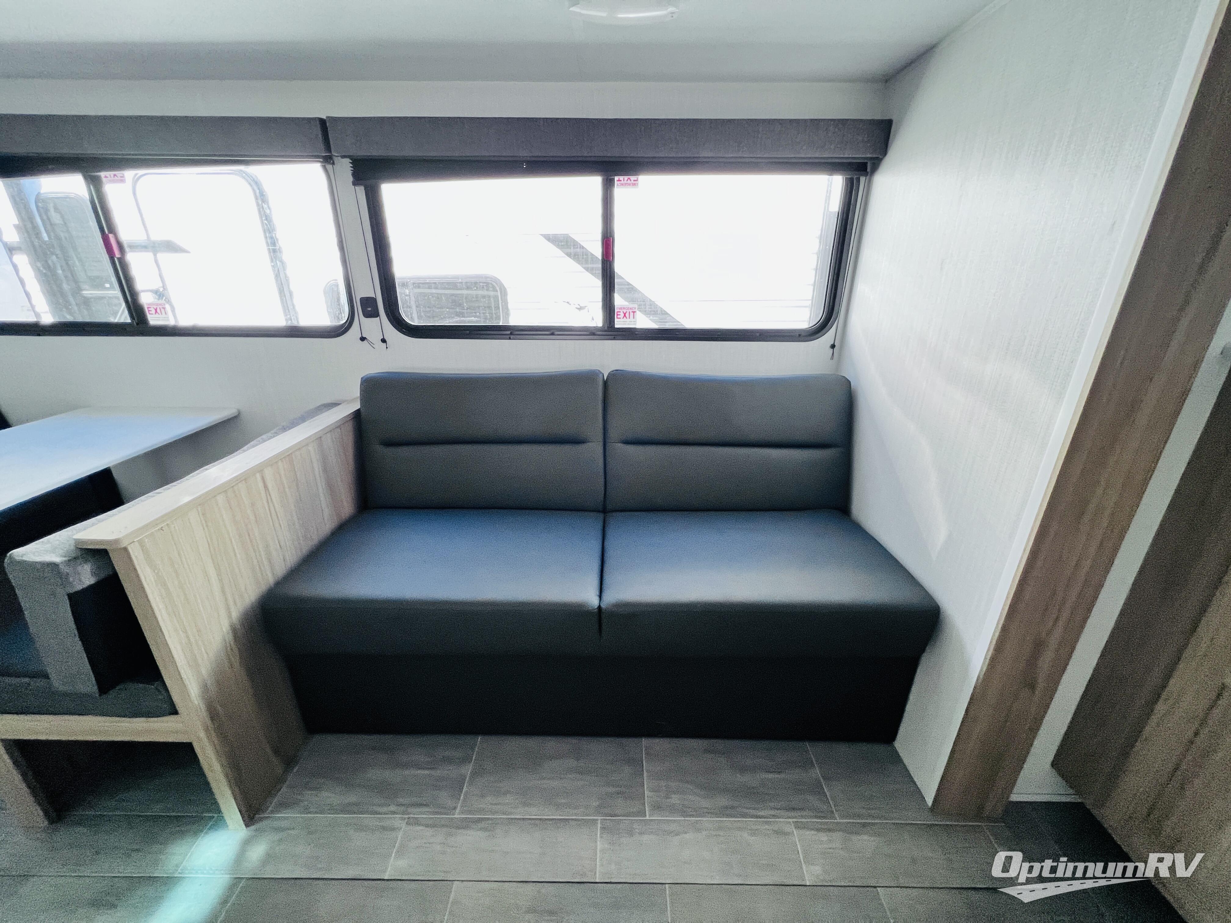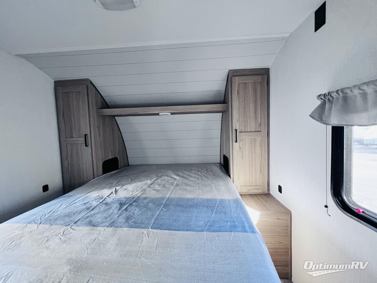 The littles ones will love camping in this travel trailer since there is a rear private bunkhouse with four bunks, a wardrobe, plus shelves to keep their things tidy. A full kitchen, complete with a cooktop, microwave, and 12V refrigerator will let you cook and store food, and a booth dinette provides a place to dine together. There is also a sofa where you can relax in the evenings if you're not outdoors under the 17' power awning. And when it's time to call it a night, you can head to the front private bedroom for a great night's rest on the queen bed!