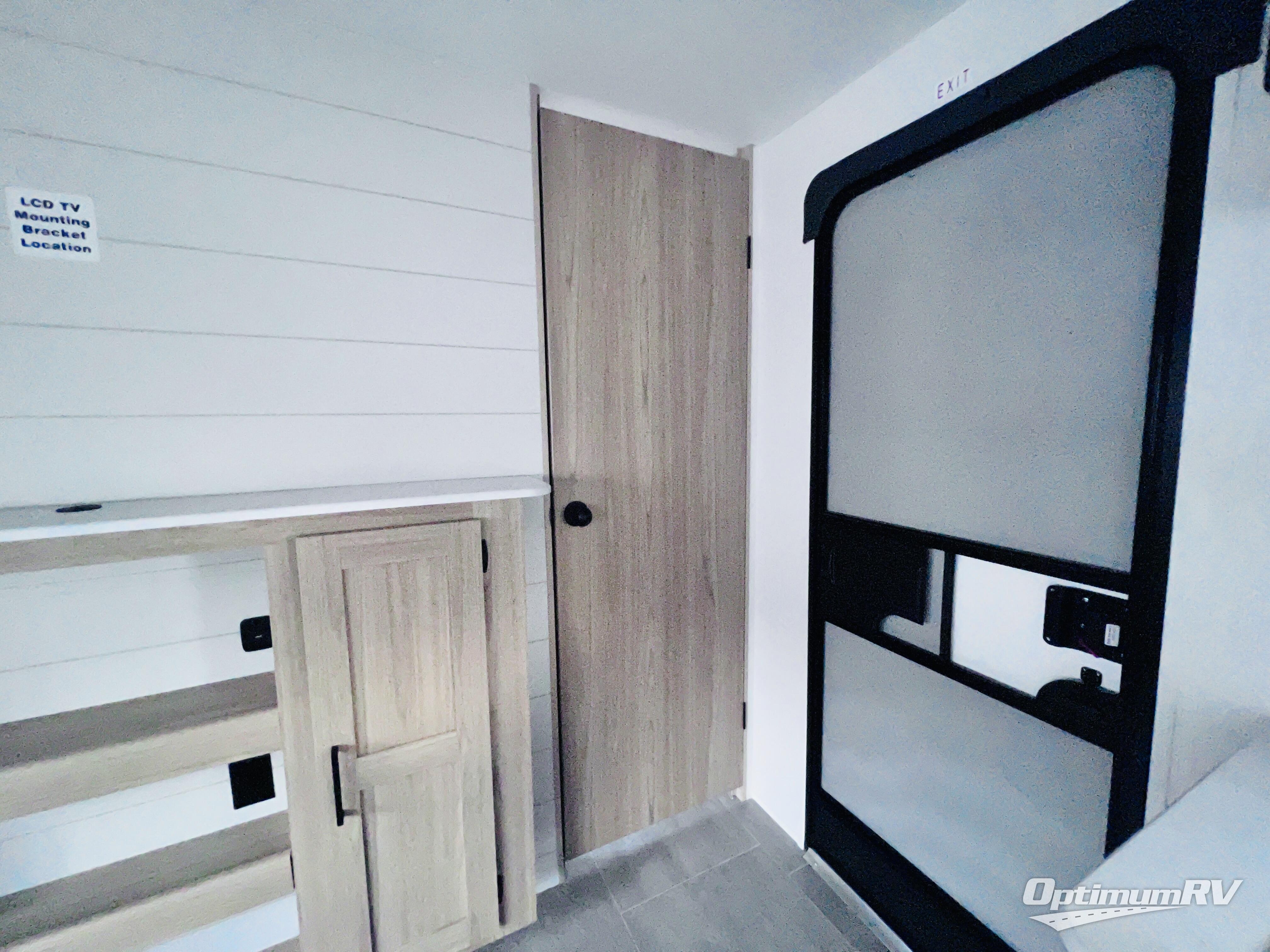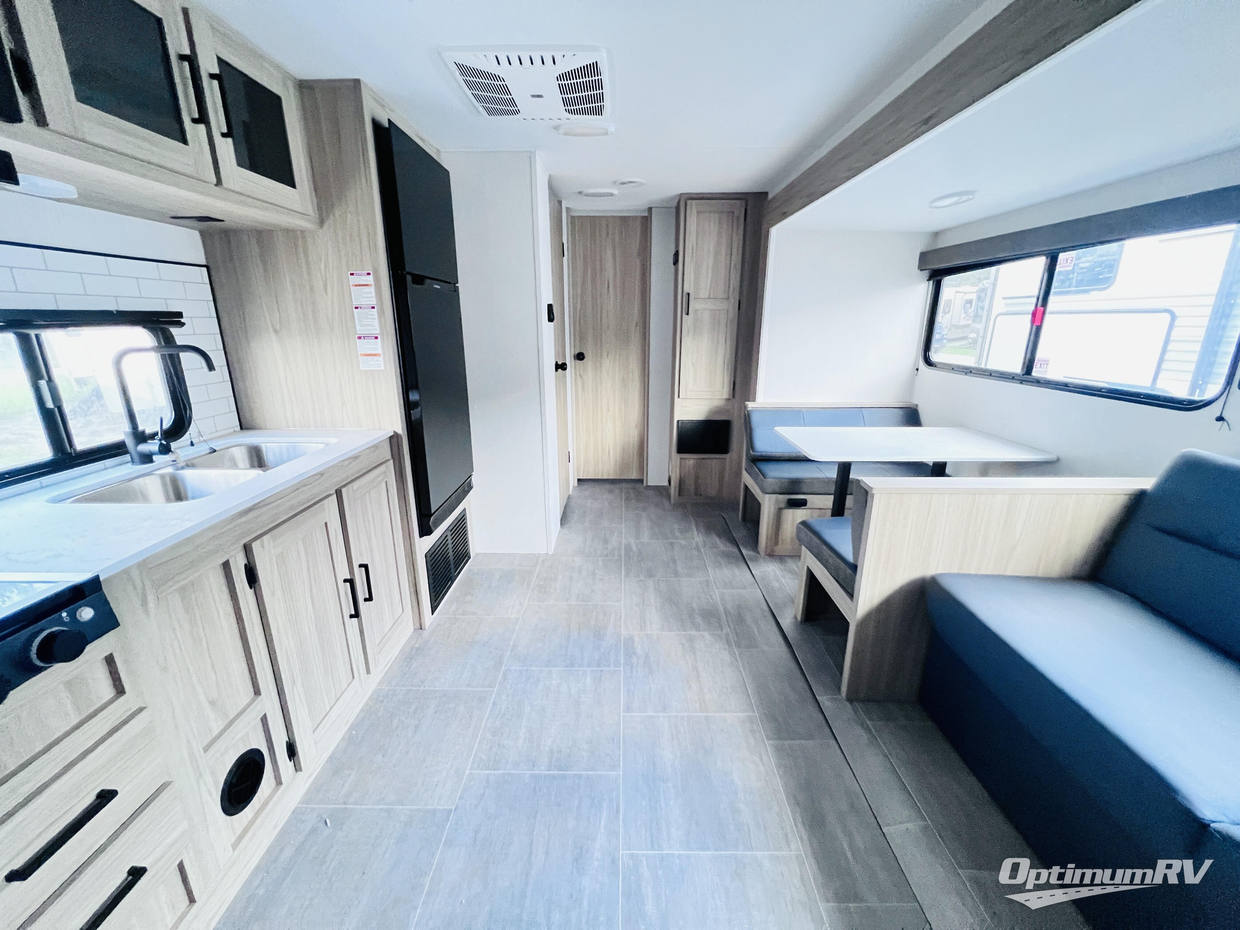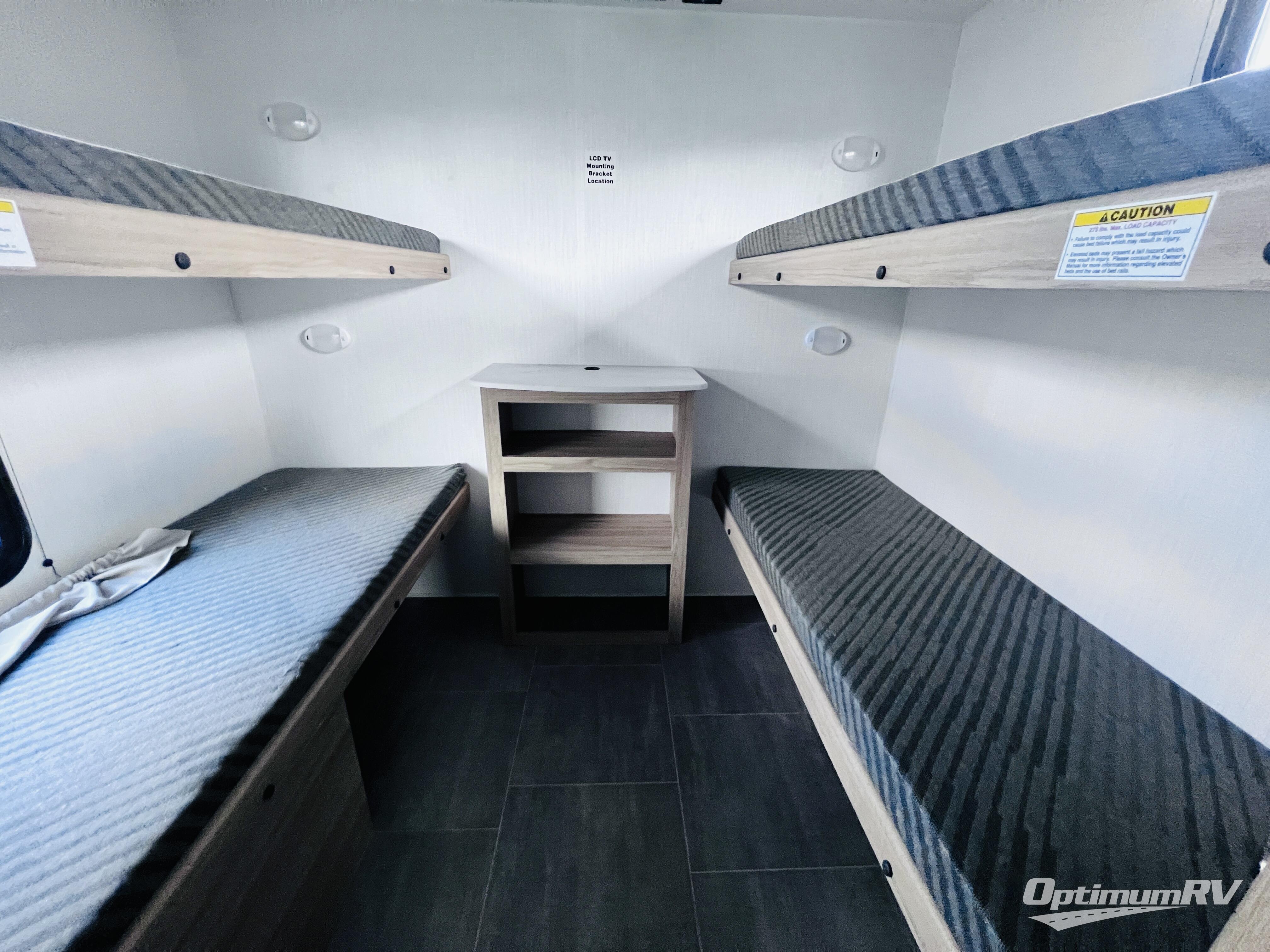 The littles ones will love camping in this travel trailer since there is a rear private bunkhouse with four bunks, a wardrobe, plus shelves to keep their things tidy. A full kitchen, complete with a cooktop, microwave, and 12V refrigerator will let you cook and store food, and a booth dinette provides a place to dine together. There is also a sofa where you can relax in the evenings if you're not outdoors under the 17' power awning. And when it's time to call it a night, you can head to the front private bedroom for a great night's rest on the queen bed!