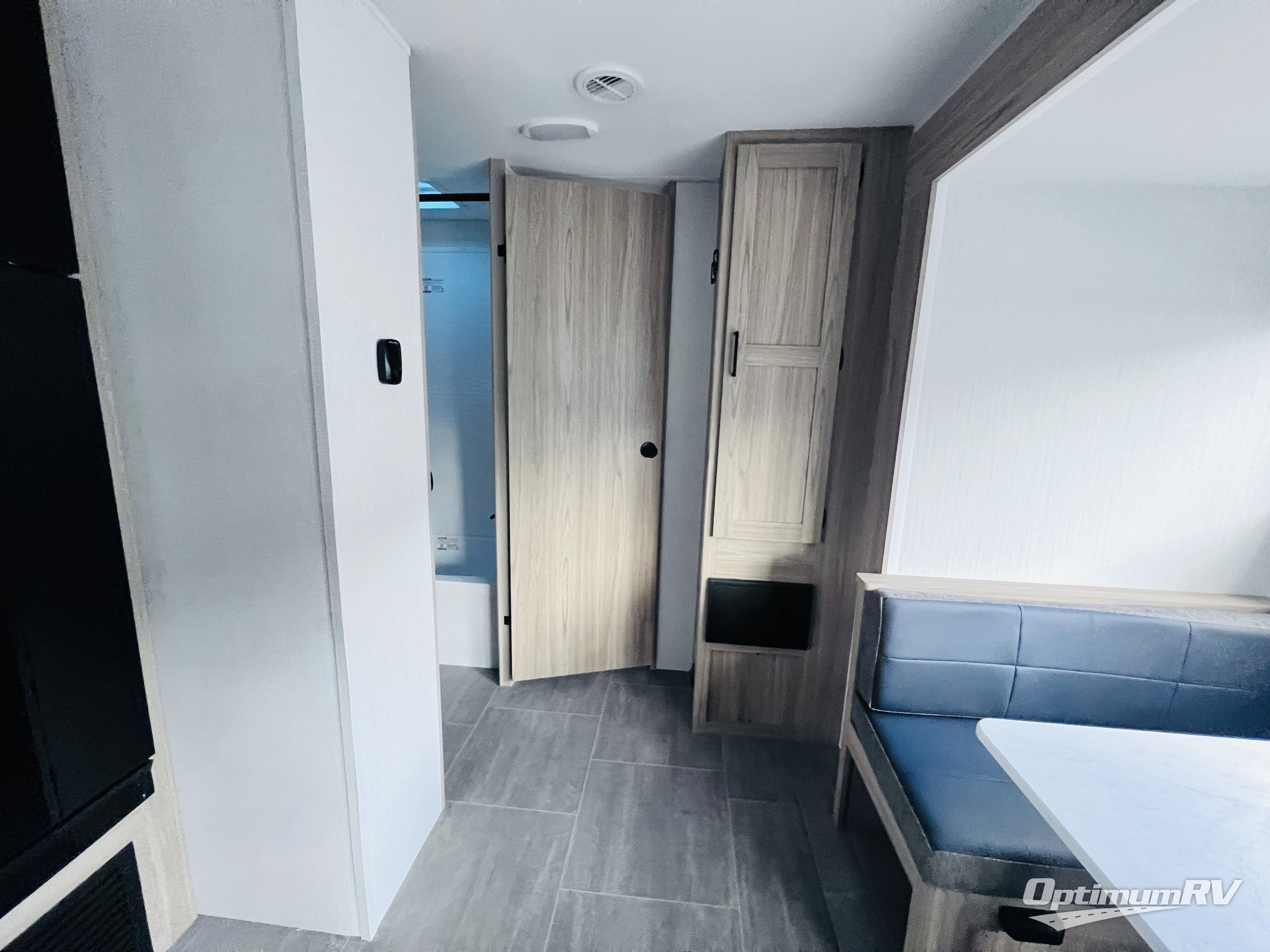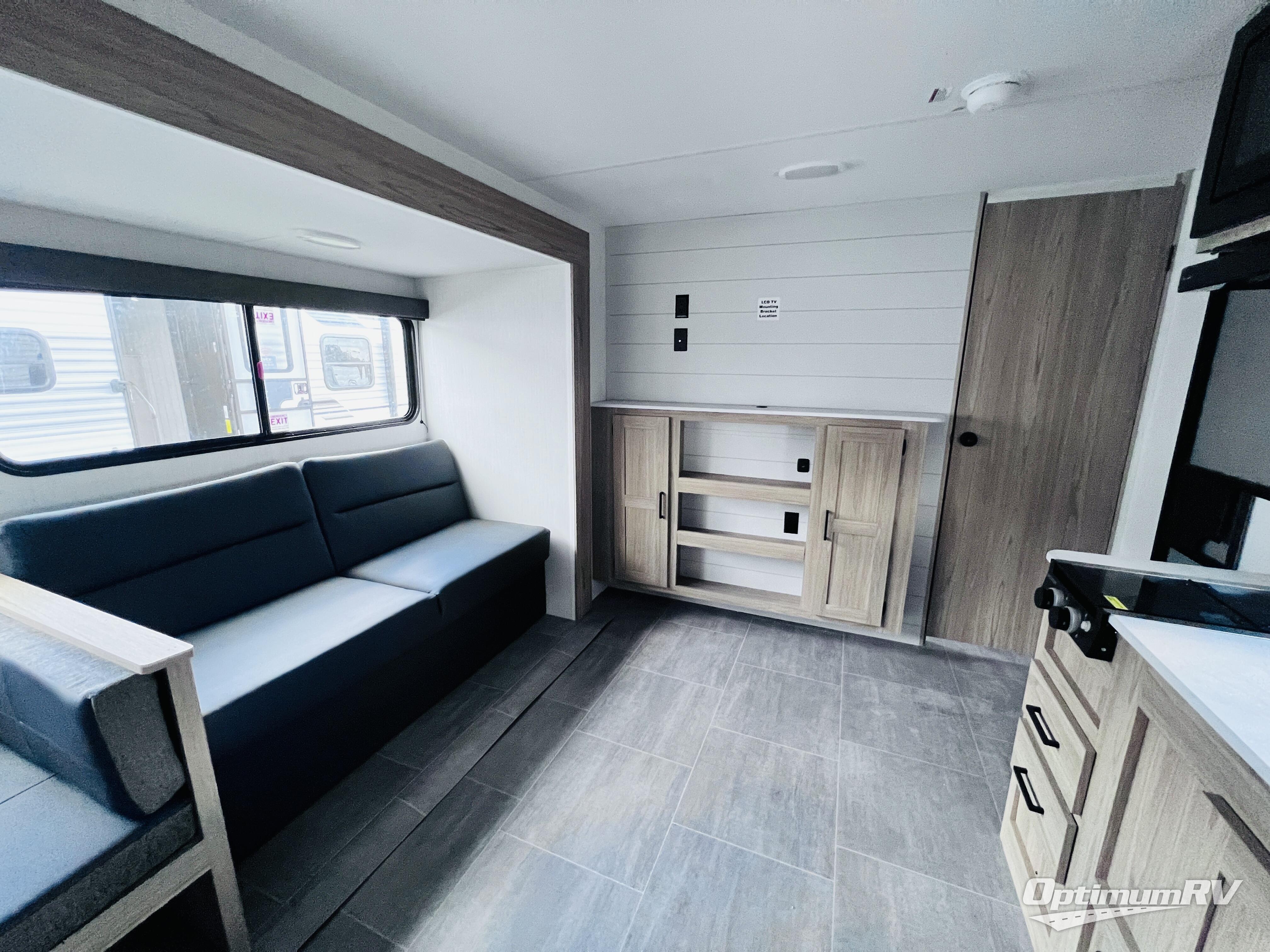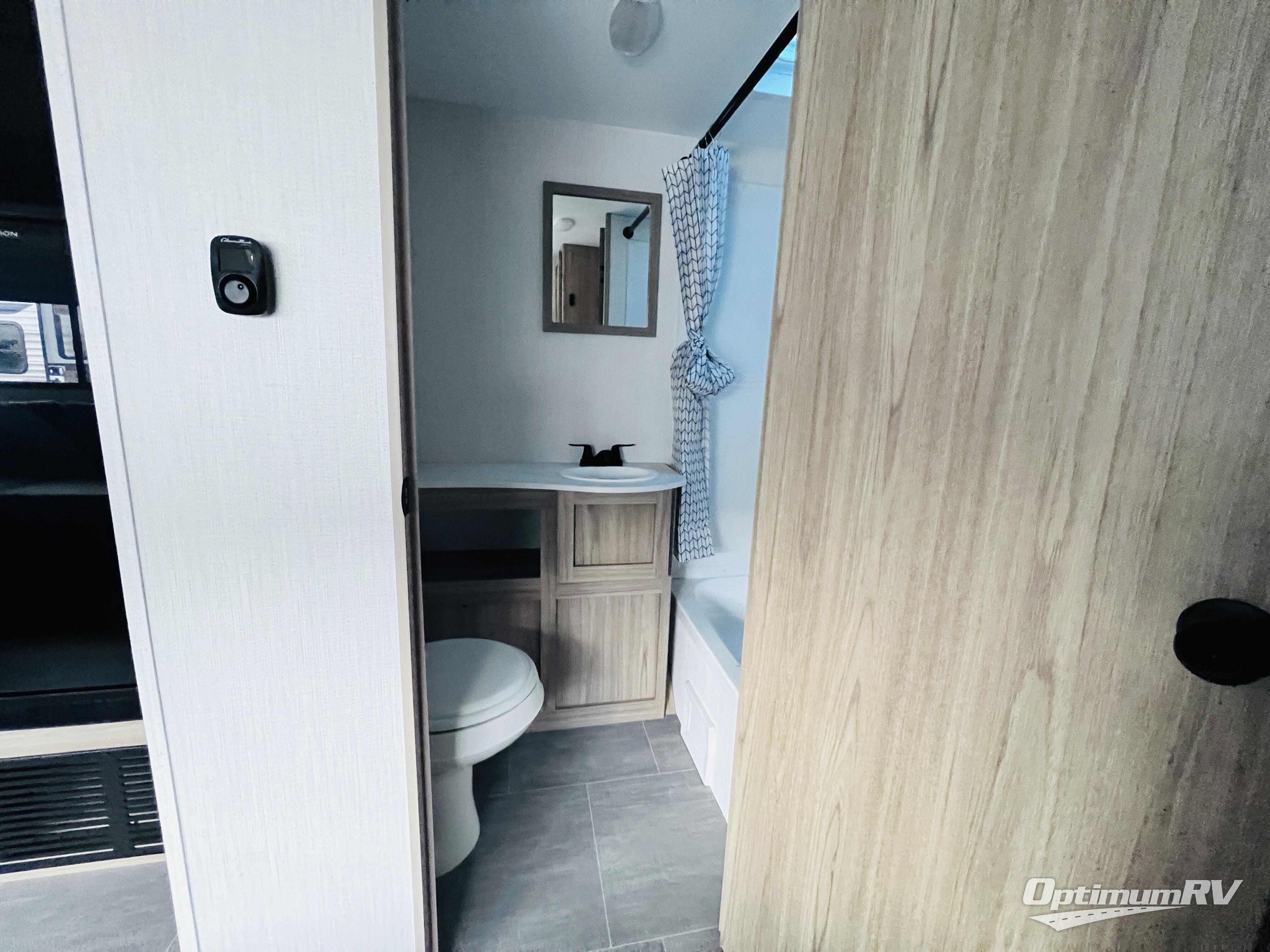 The littles ones will love camping in this travel trailer since there is a rear private bunkhouse with four bunks, a wardrobe, plus shelves to keep their things tidy. A full kitchen, complete with a cooktop, microwave, and 12V refrigerator will let you cook and store food, and a booth dinette provides a place to dine together. There is also a sofa where you can relax in the evenings if you're not outdoors under the 17' power awning. And when it's time to call it a night, you can head to the front private bedroom for a great night's rest on the queen bed!