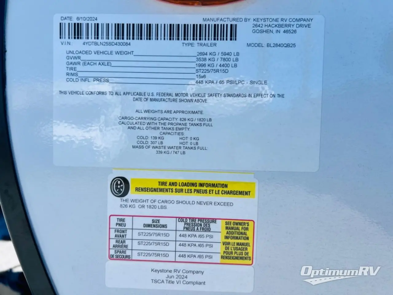 Keystone Bullet Classic travel trailer 2840QB highlights: