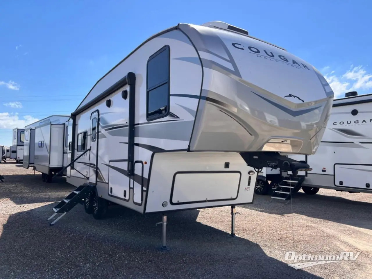 The Keystone Cougar Half-Ton fifth wheel and travel trailers are known as one of America's favorites for a reason! Some of those reasons are the exclusive features that come from Keystone, like the Winegard Air 360+ omni-directional rooftop antenna, the in-floor heating ducts, and the Hyper Deck flooring. The Cougar Half-Ton has a Climate Guard protection package to keep you safe during inclement weather, along with two roof attic vents, PEX plumbing and more. Use the 21" Furrion range with Piezo ignition to create all of those familiar meals from home, and take charge of how you camp with the SolarFlex Protect that comes standard, or upgrade to a larger package or lithium batteries for even more off-grid capabilities.