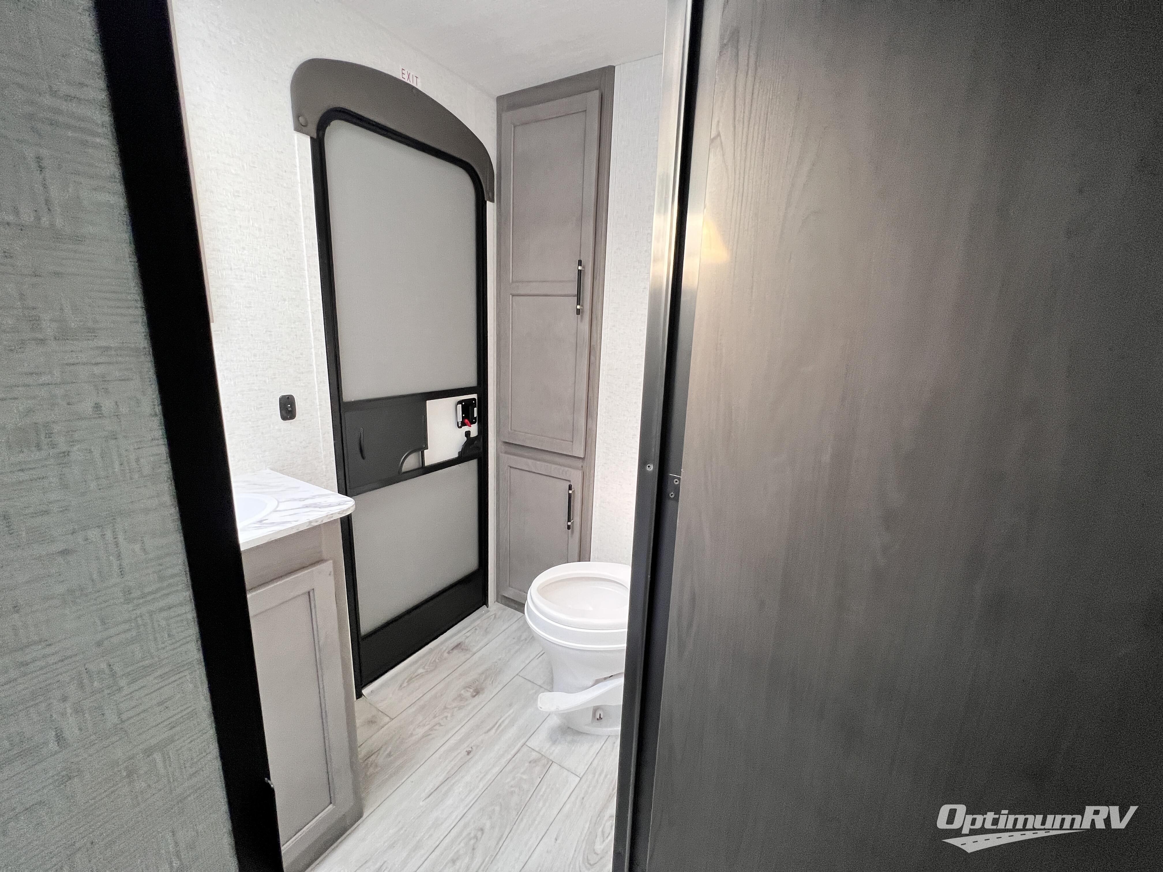 You will be quite impressed by the large private bunkhouse on this Hideout travel trailer! This bunkhouse has a slide out for more space, two bunks, a flip-up bunk, plus a toy chest to keep everything tidy. Now your kids can play all day and store their toys when it's time for bed. The full bathroom is located right next to the bunkhouse for easy access at night, and the bathroom also contains the second exterior entry door. The main living area is full of great features as well with a large slide, a standard sofa, and a booth dinette. And you can choose the optional tri-fold sofa or optional theater seating in place of the standard sofa, depending on your needs.