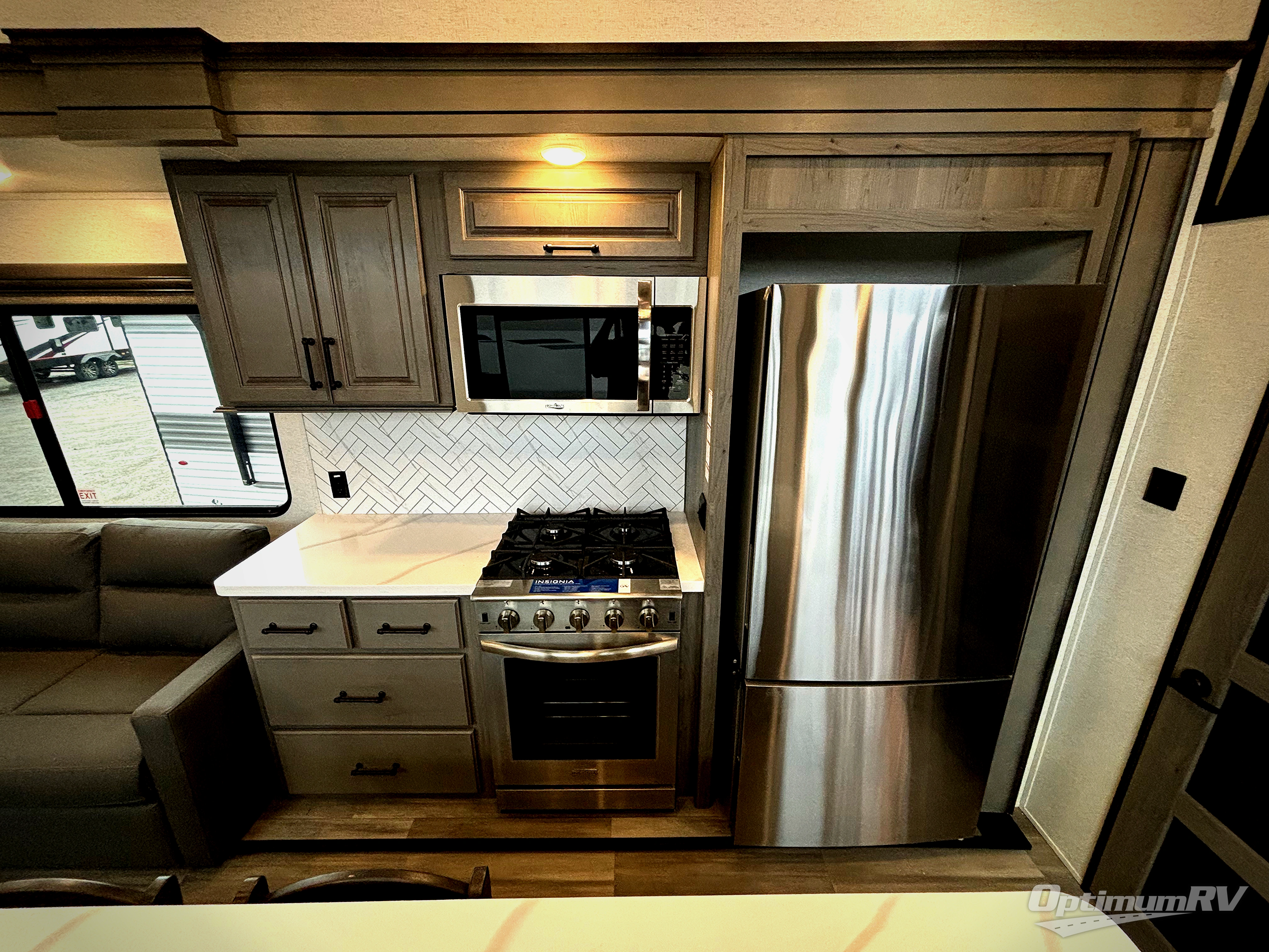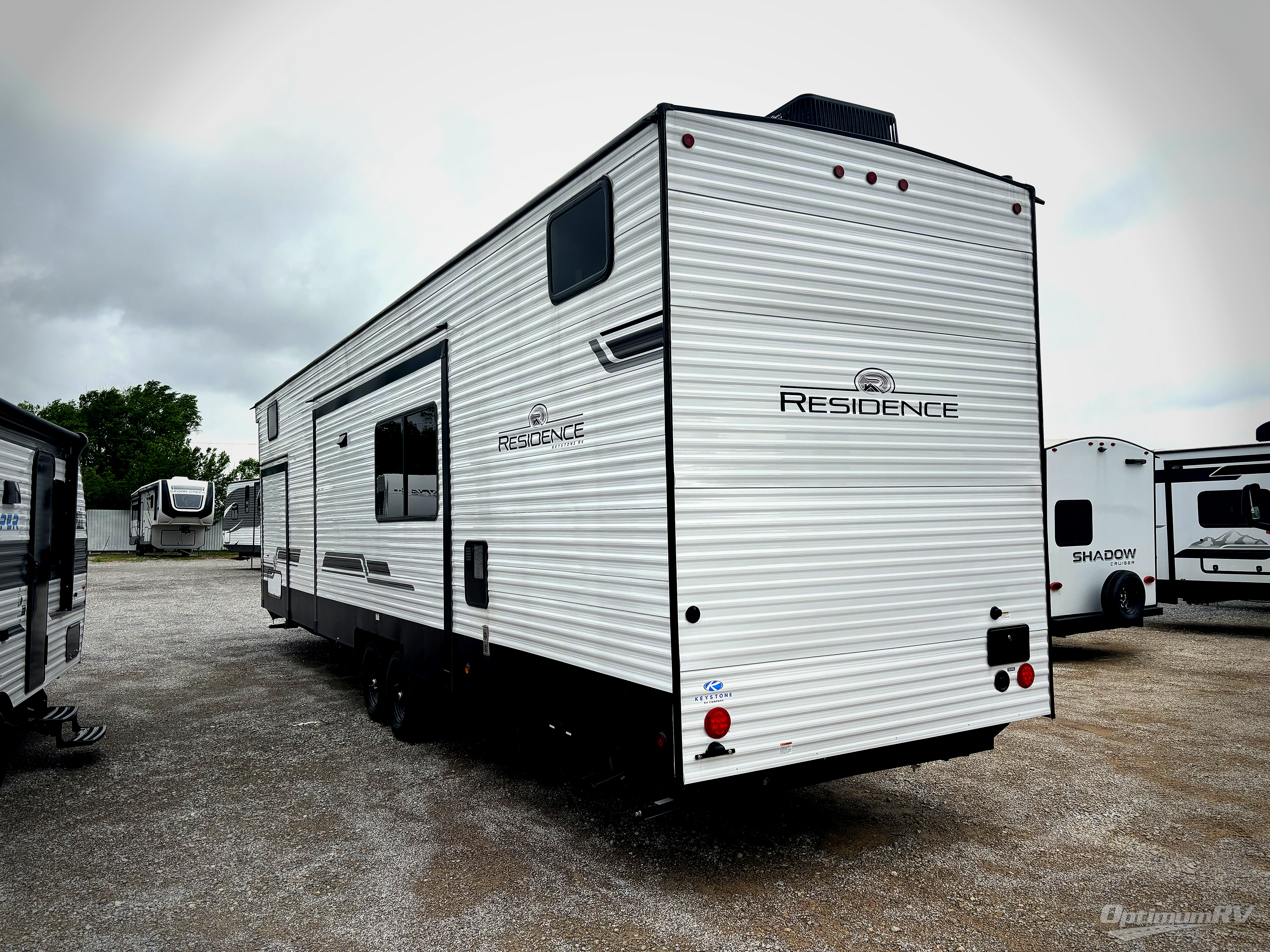 Each Residence destination trailer by Keystone offers sliding glass door providing easier access, more natural lighting, great views and fresh air when you want to leave the door open. The 8' interior height gives you taller ceilings with an open feel. Some other highlights include pre-drilled/screwed hardwood cabinet framing with easy-glide doors and waste basket storage, solid hardwood cabinetry, stainless steel undermount sink , in-floor heating ducts and Tru-fit slide construction. The heated and enclosed underbelly will allow you to take up residence all year long, and you'll also find a power awning with LED lights outside, as well as Dexter E-Z lube axles for smooth towing. Plus, if are looking for a smooth-sided laminated construction, you will love the laminated sidewalls!