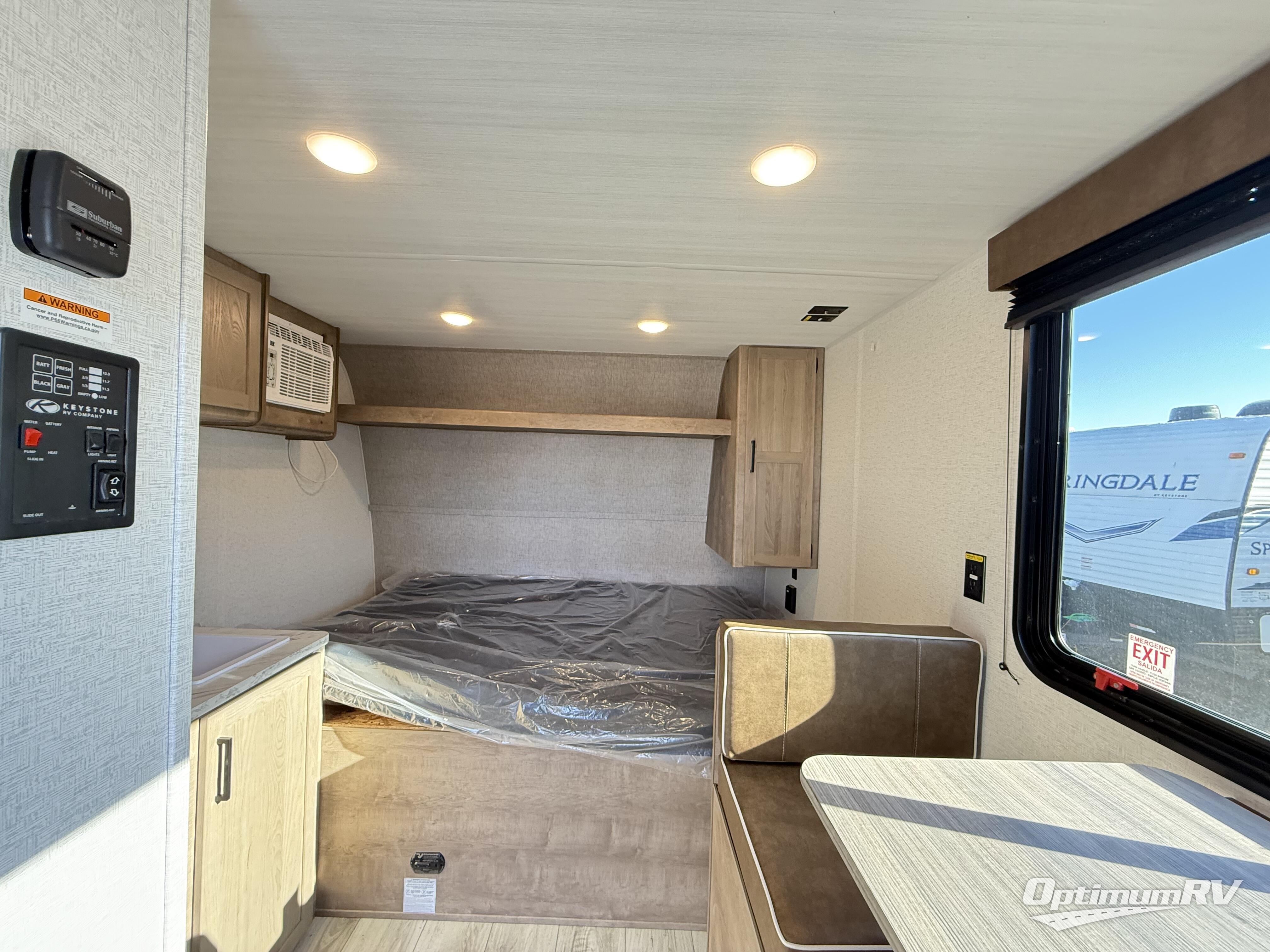 With any Springdale Classic Mini travel trailer by Keystone, you will enjoy lightweight towing thanks to their single-axle! You'll find the XL entry assist handle will make entering and exiting your unit easier than ever, and the power awning will provide protection from the sun as you relax in your camp chairs outside. Each model includes blackout night shades, solid wood cabinet doors and drawers, a shower skylight for more standing room, plus many more interior comforts. There is also a 5,000 BTU sidewall A/C and 20K BTU furnace to keep you comfortable, plus a Girard tankless water heater for endless hot showers!