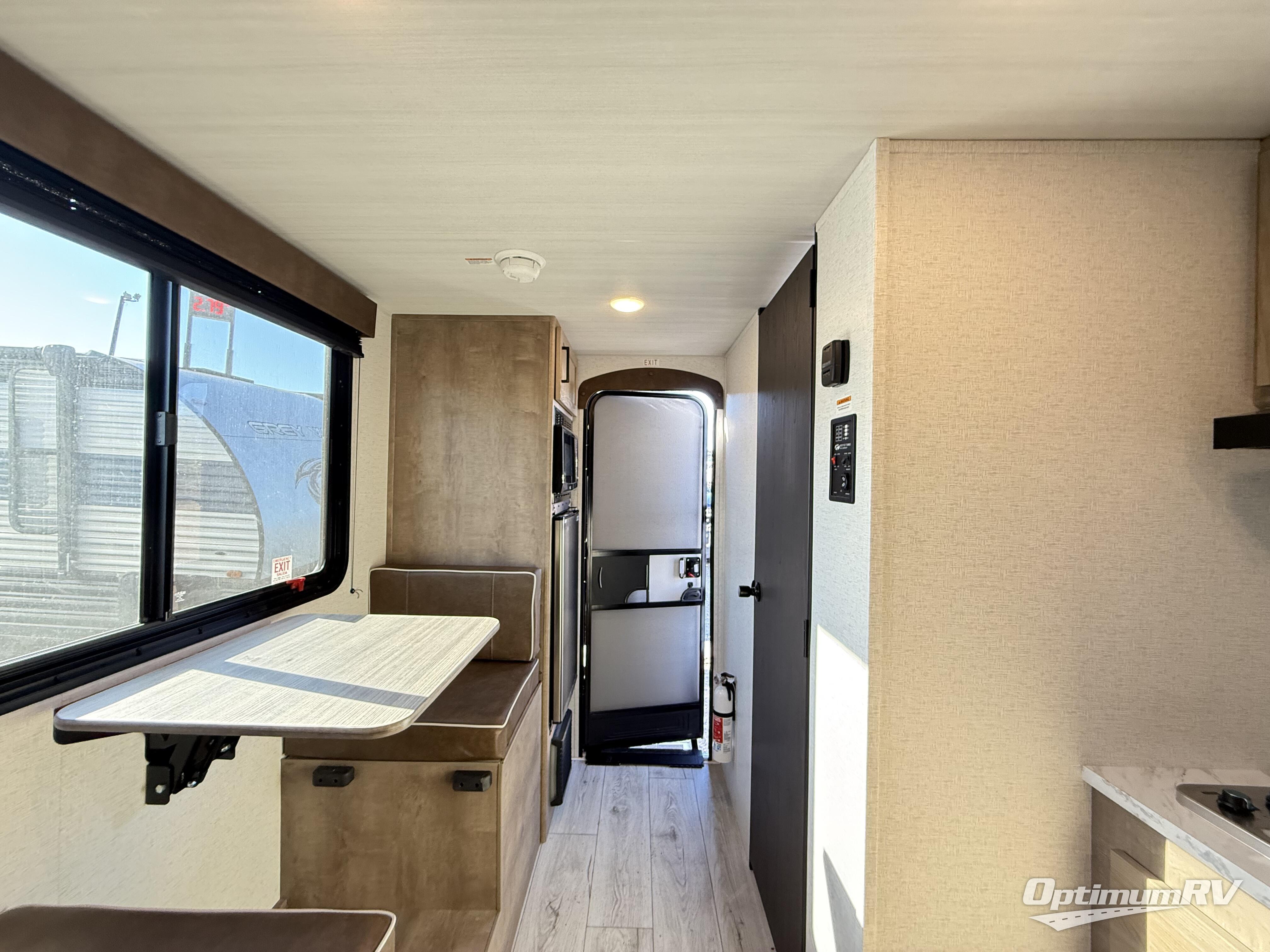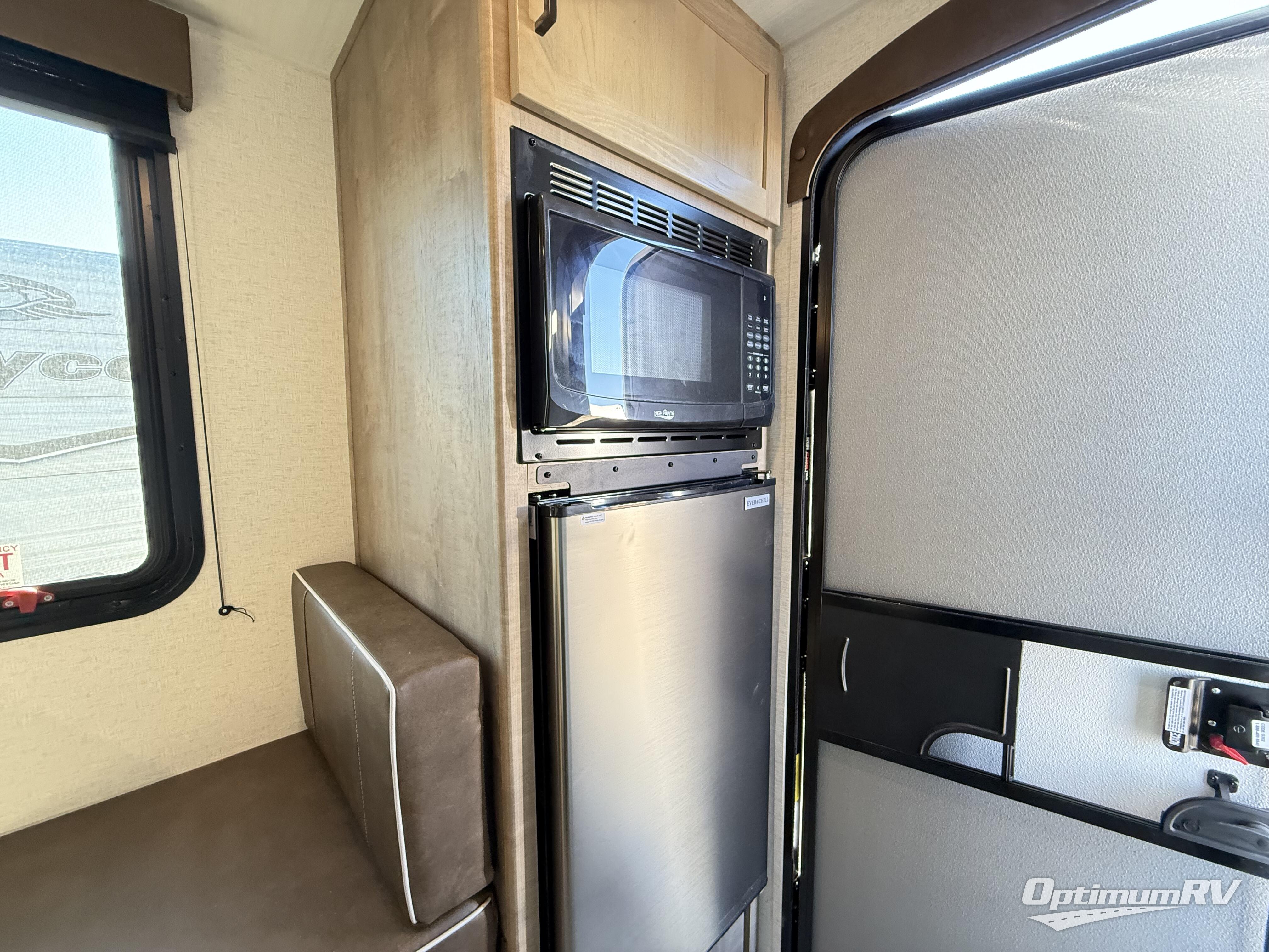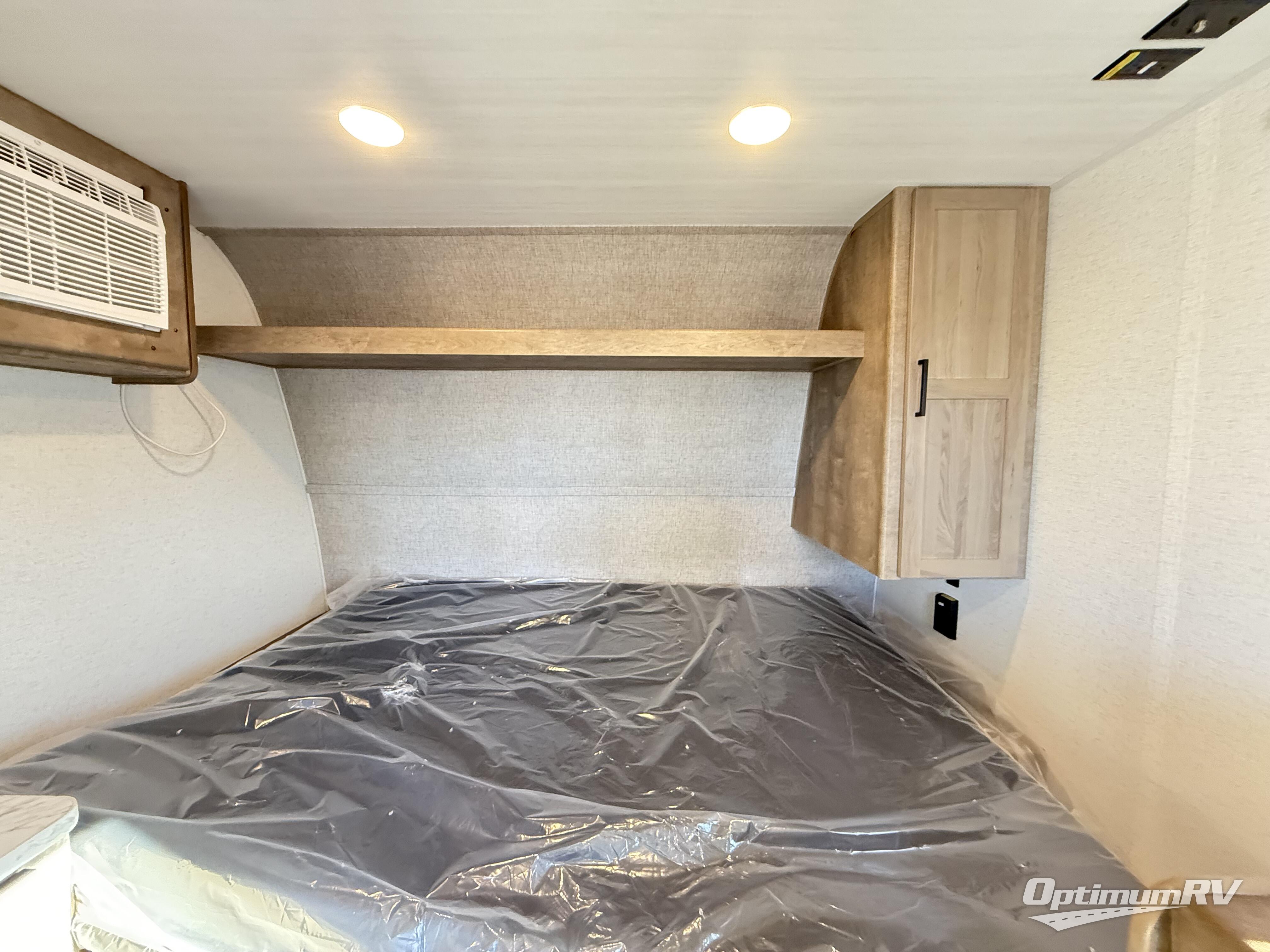 This is the perfect easy-to-tow travel trailer for three campers! The front queen bed includes a shelf above for books plus a closet and nightstand at the foot of the bed for even more storage. You can make meals each day on the two burner gas cooktop and store food in the 3.3 cu. ft. 12V refrigerator. A full bath onboard means you won't have to use the camp's facilities, and the exterior pass-thru storage will be perfect for hiking gear, camp chairs, and more!