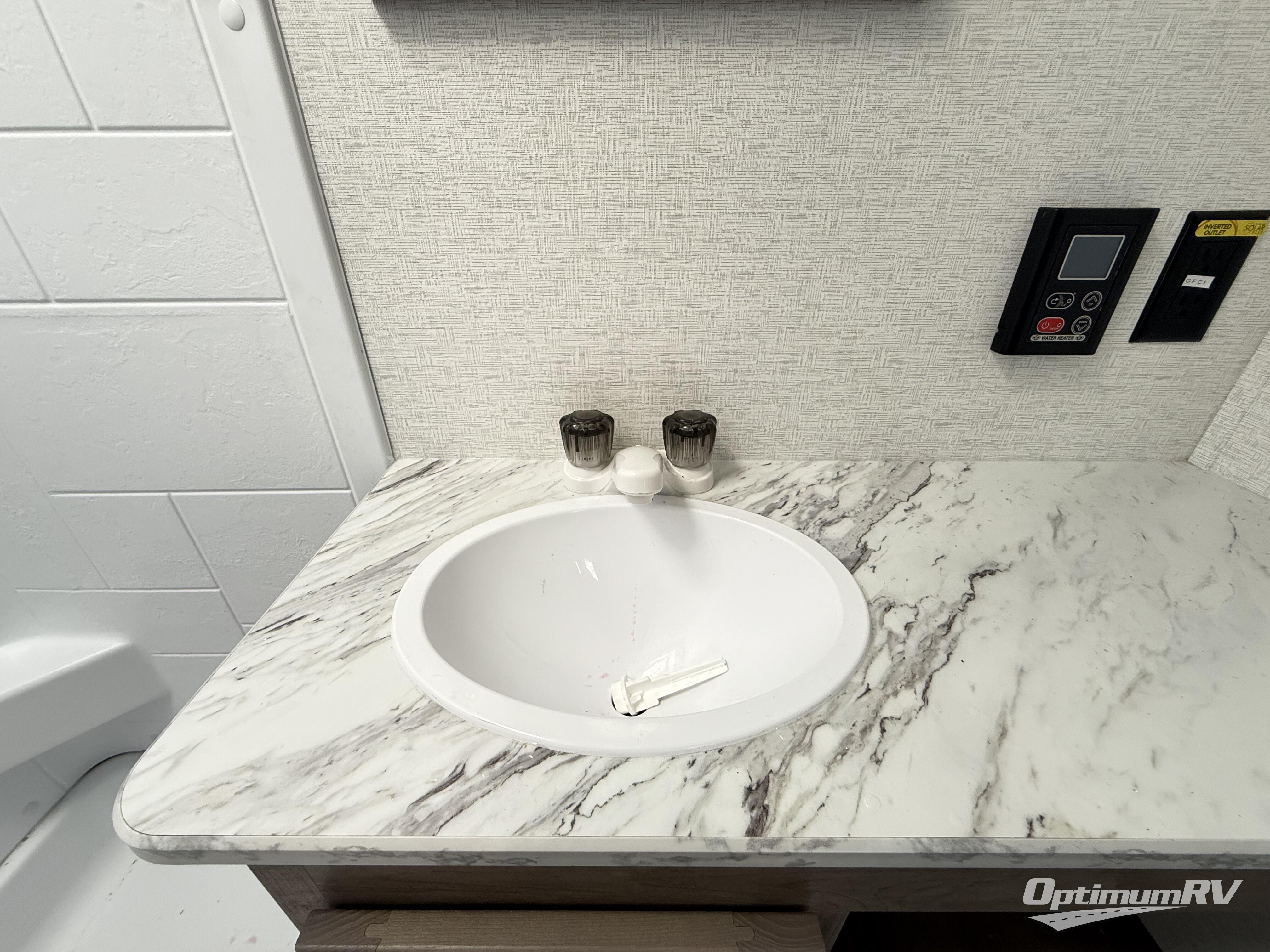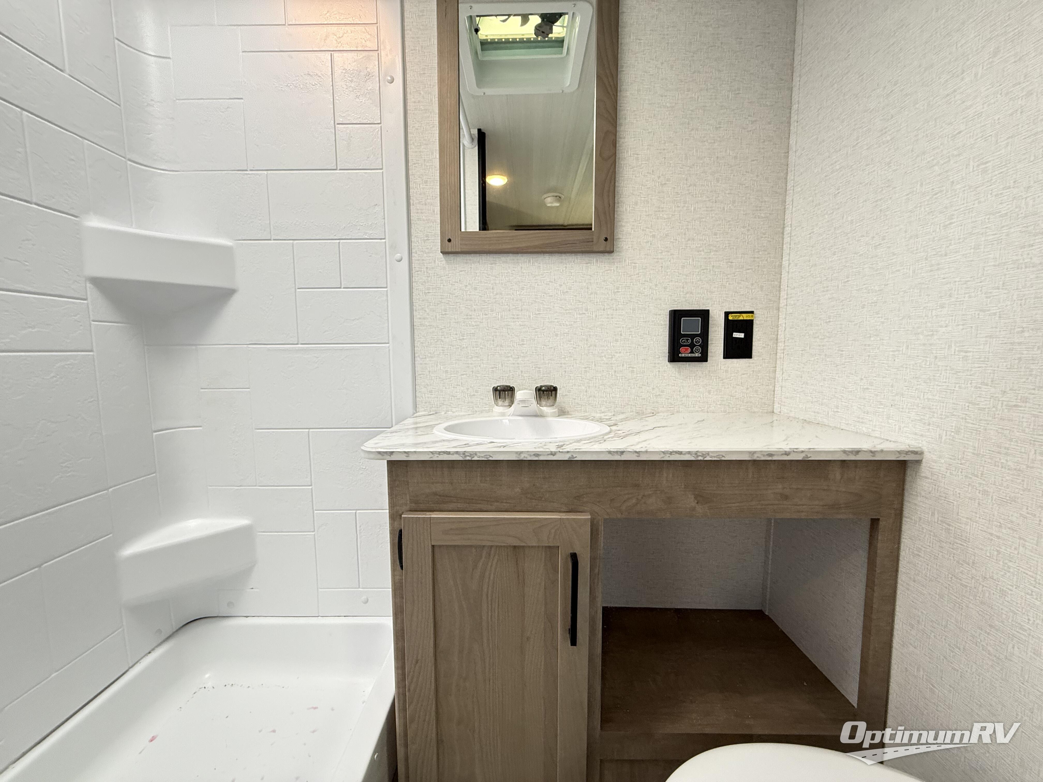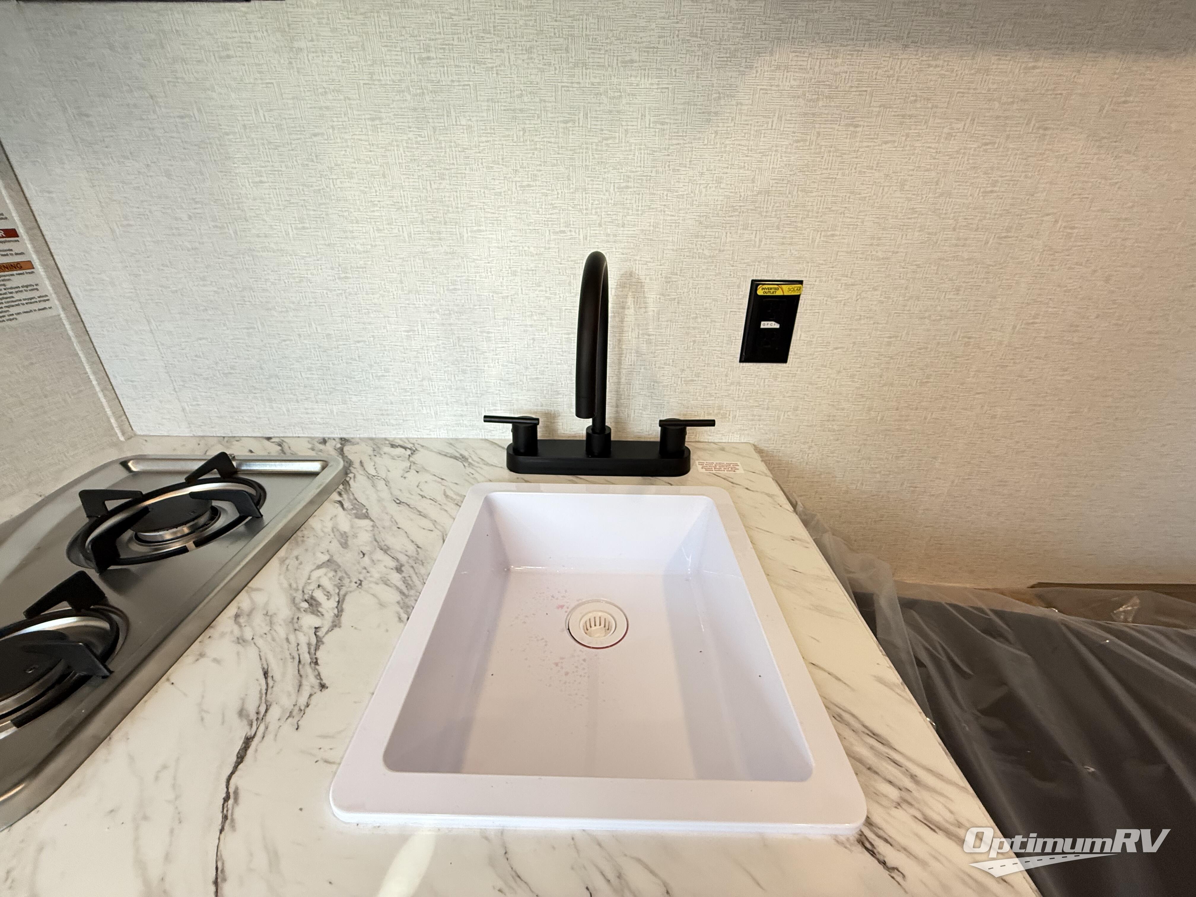 This is the perfect easy-to-tow travel trailer for three campers! The front queen bed includes a shelf above for books plus a closet and nightstand at the foot of the bed for even more storage. You can make meals each day on the two burner gas cooktop and store food in the 3.3 cu. ft. 12V refrigerator. A full bath onboard means you won't have to use the camp's facilities, and the exterior pass-thru storage will be perfect for hiking gear, camp chairs, and more!