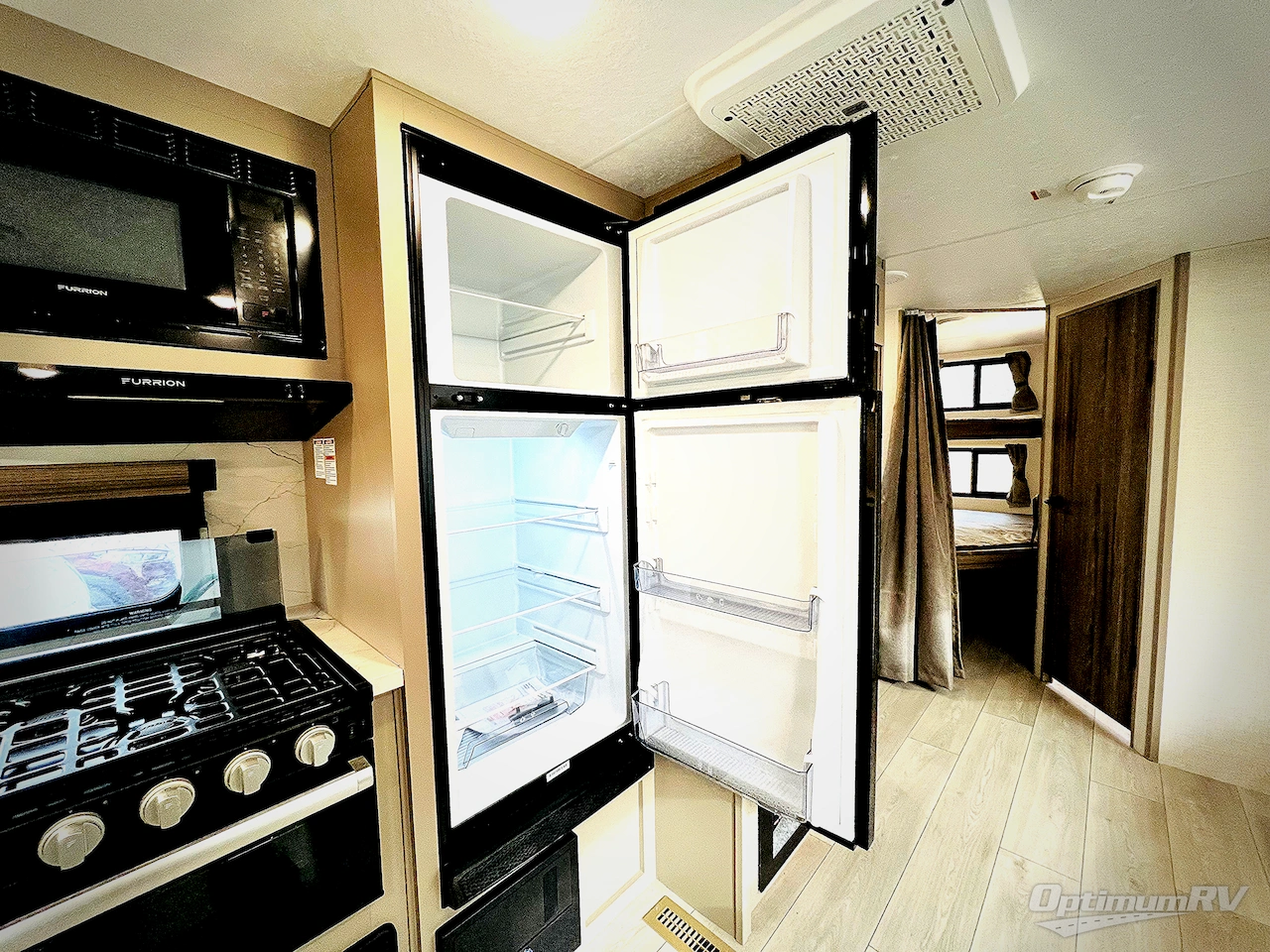 Headed to the RV park with your family and friends? Want enough space to allow overnight guests to stay the night on occasion? This trailer gives you double-size bunks, a 70" sofa and a booth dinette that offer extra sleeping space while you enjoy your own walk-around queen bed in the front private bedroom. You will also have dual wardrobes, and a TV mount to add your own TV. Everyone will stay refreshed and cleaned using the rear corner full bathroom, and fed by the cook that has an inside kitchen with full amenities including an L-shaped counter and a large sink. There is also a walk-in pantry with coat hooks next to the entry to utilize as a multi-purpose closet. And there is an outside kitchen with a griddle and a refrigerator, a 20' power awning with an LED light strip, and a pass-through storage for the larger camping items.