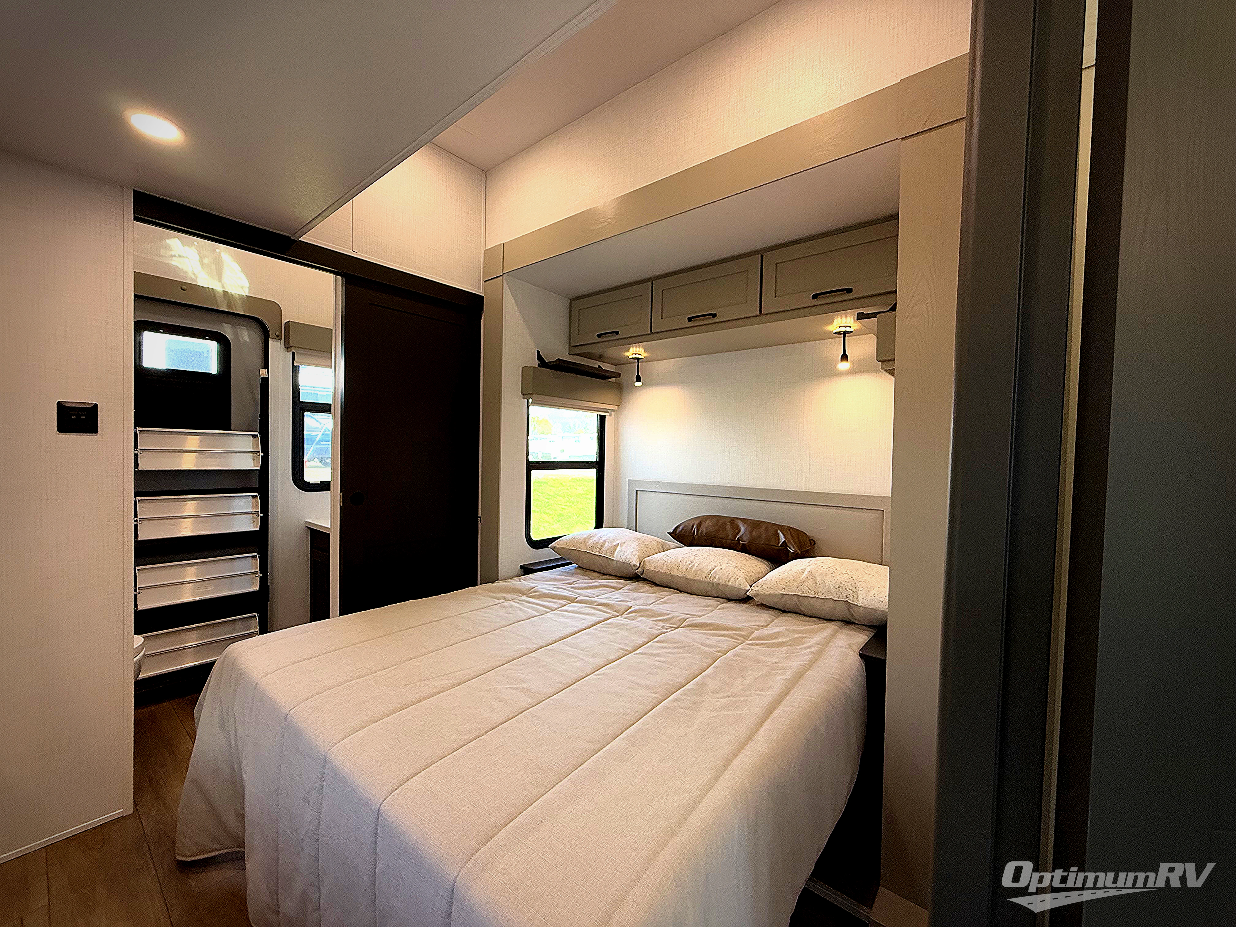 Experience a different camping life with residential furnishings and high end features in each one of these Palomino Columbus fifth wheels! The 101" wide body lets you walk around more throughout and the all-welded aluminum-frame superstructure has a snap-in ceiling molding to hold up through every adventure. Don't leave any of your gear behind either when you can easily store it in the climate controlled drop frame storage area. On the exterior, you'll find a heated utility convenience center, an outside sprayer to keep the dirt outside where it belongs, and magnetic compartment door holds to keep them from falling on you as you grab your items. Plus, there are some modern features that will really seal the deal like the Wi-Fi Booster with 4G LTE capability prep, upgraded true solid-surface countertops, power theater seating with USB charging, and a 260W solar panel for off-grid camping!