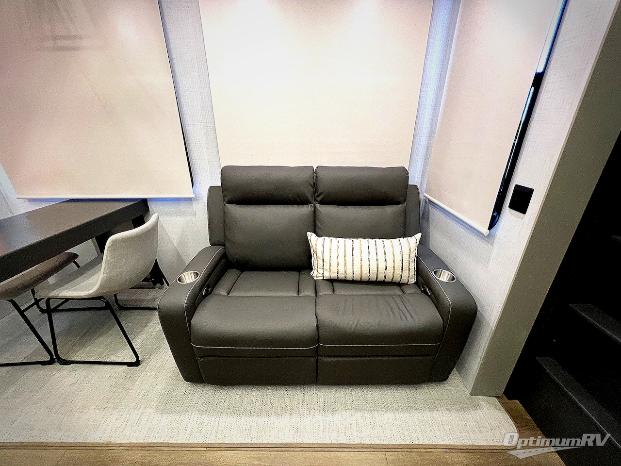 Experience a different camping life with residential furnishings and high end features in each one of these Palomino Columbus fifth wheels! The 101" wide body lets you walk around more throughout and the all-welded aluminum-frame superstructure has a snap-in ceiling molding to hold up through every adventure. Don't leave any of your gear behind either when you can easily store it in the climate controlled drop frame storage area. On the exterior, you'll find a heated utility convenience center, an outside sprayer to keep the dirt outside where it belongs, and magnetic compartment door holds to keep them from falling on you as you grab your items. Plus, there are some modern features that will really seal the deal like the Wi-Fi Booster with 4G LTE capability prep, upgraded true solid-surface countertops, power theater seating with USB charging, and a 260W solar panel for off-grid camping!
