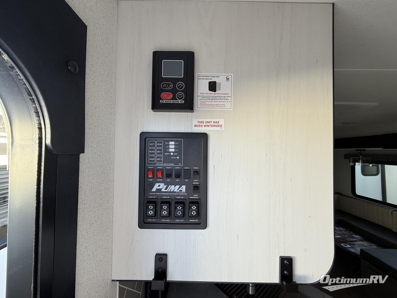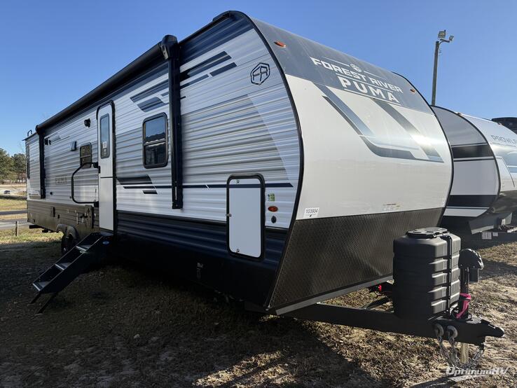 If you're looking for family-fun adventures then you need one of these Palomino Puma fifth wheels or travel trailers! They are built rugged, easy to tow, and jam packed with features. The Darco wrapped underbelly will protect your units vitals and the AlphaPly roofing membrane covers it. They also have new aluminum wheels and a powder coated steel I-beam frame. Inside, the Congoleum linoleum will be easy to keep clean, and the night roller shades will provide privacy when it's time to turn in. You'll also enjoy an electric awning with an LED light strip plus an AM/FM/Bluetooth stereo and two outside speakers to keep the party going!