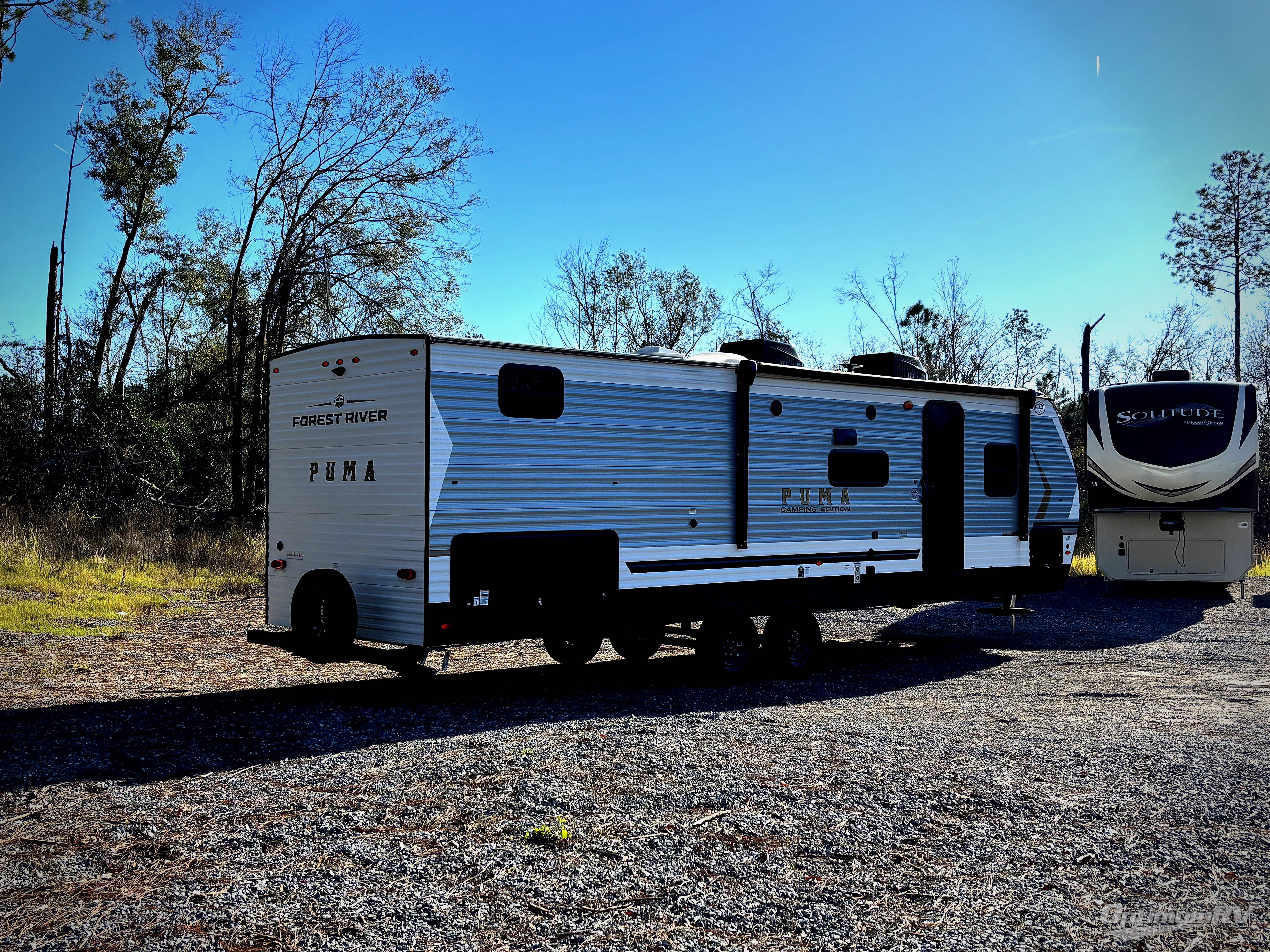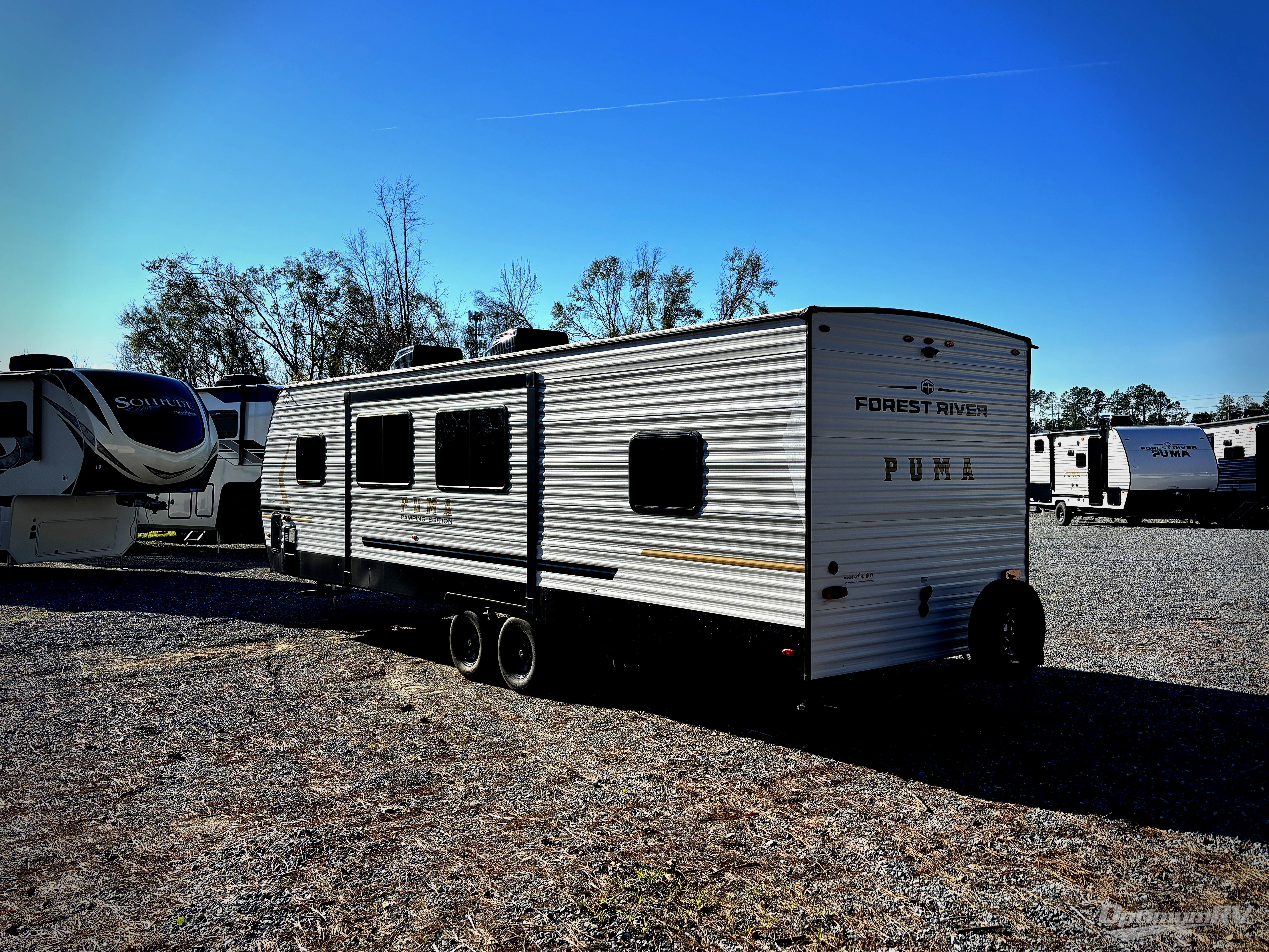 The Puma Camping Edition by Palomino offer an affordable travel trailer for rookie campers or seasoned RVers! They are built with 5/8" tongue and groove plywood flooring and a front diamond plate for added protection. There are also exterior clamp style door latches, back up camera prep, and 20 lb. LP bottles. Head inside to find Thermofoil countertops with a smooth drop edge, bedroom USB ports and outlets, and a GE appliance and kitchen package.