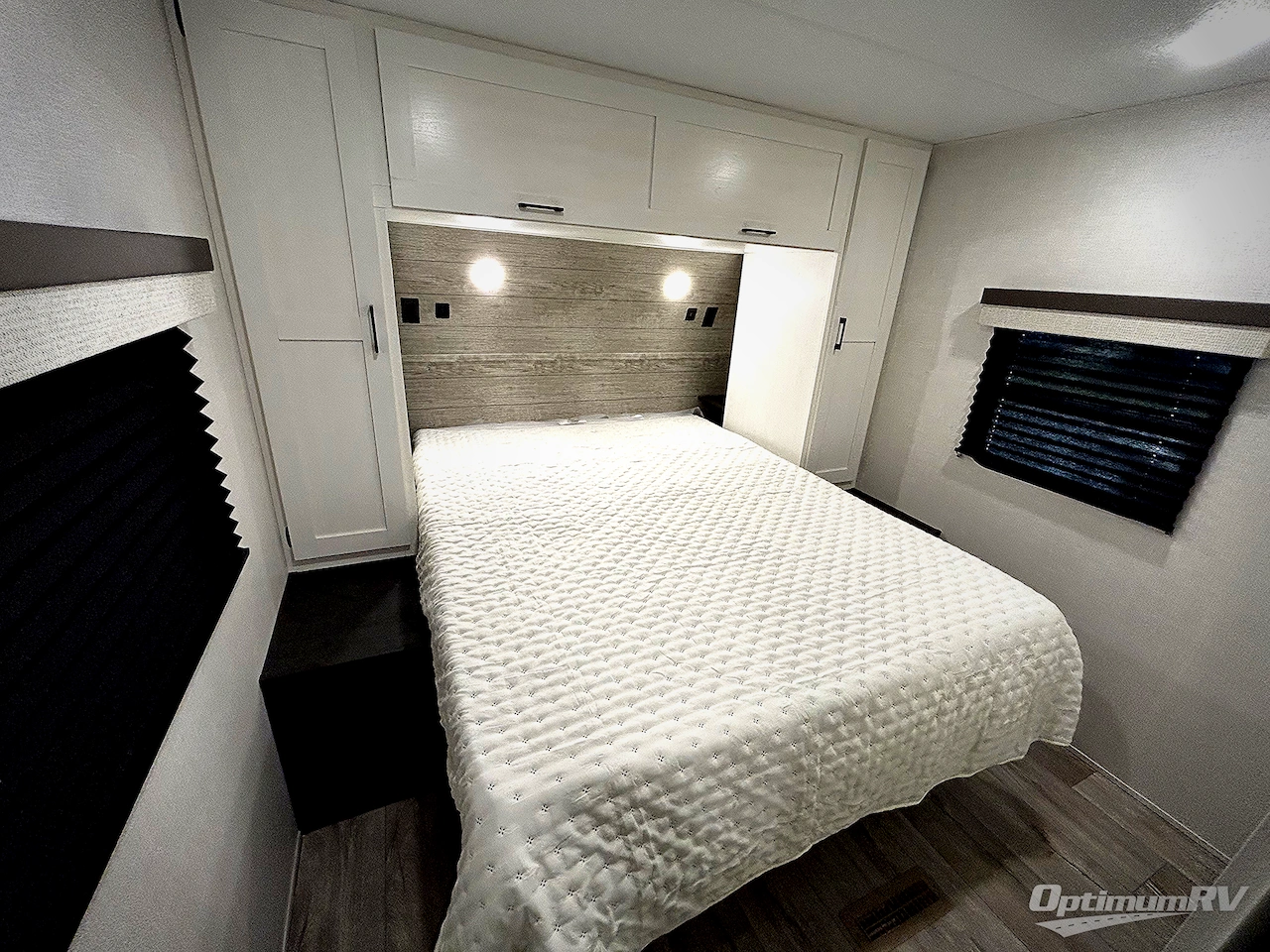 You'll love every minute spent in this bunkhouse travel trailer. The front private bedroom includes a Sleep Tight queen bed, dual wardrobes, and TV prep if you want the option to watch movies in bed. Your crew can relax on the sofa or Sit N' Slide table within the large slide out and watch a movie with the Smart TV. Since there is an outdoor griddle and refrigerator plus a 20' power awning, you may just find yourselves outside most days! When it's time to call it a night, there are double-size bunks in the rear corner for your guests, and the full bath is right next to the bunks for easy nighttime use. This unit also includes an entryway pantry with washer and dryer prep, making it easier to go full-time if you choose!