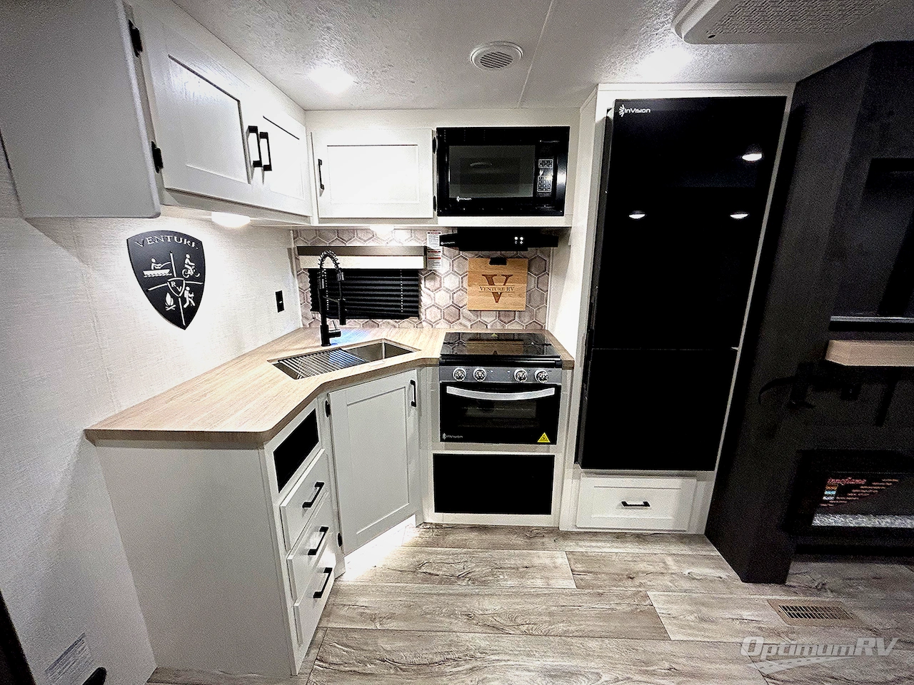 With any Sienna travel trailer by Venture RV, you will enjoy a lightweight unit, convenient amenities, and a durable construction that includes a BAL NXG-bolted frame. There is also a heated and enclosed one-piece underbelly, residential fiberglass insulation, and a reflective PVC roof membrane within the Weather-Shield Package to help extend your camping season. Outside, the BAL 5.0 power stabilizer jacks and power tongue jack will have you set up in no-time, and the Venture RV bottle opener/dog tie down will make it easy to bring your furry friends along. Head inside to enjoy the modern farmhouse design, along with Beauflor throughout with no carpet, custom backsplash, large underbed storage, and a bath skylight to name a few comforts!