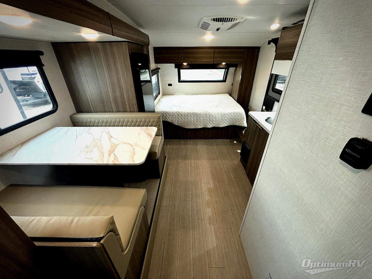 Cook, relax, sleep, and do it all again after your hike, play games and visit with other RVers! This trailer is perfect for a quick trip or a long vacation with sleeping space for three to four when you utilize the booth dinette. There is a 60" x 75" bed up front for two to easily fall asleep and includes a side wardrobe and overhead cabinet for your belongings. In the morning, the cook can use the two burner cooktop and convection microwave to whip up breakfast for you to enjoy under the 12' power awning after grabbing your camping chairs from the pass-through storage that has a motion-activated light which is helpful in the dark. You will also appreciate the full bathroom amenities, the pantry for your goodies and the entertainment center.