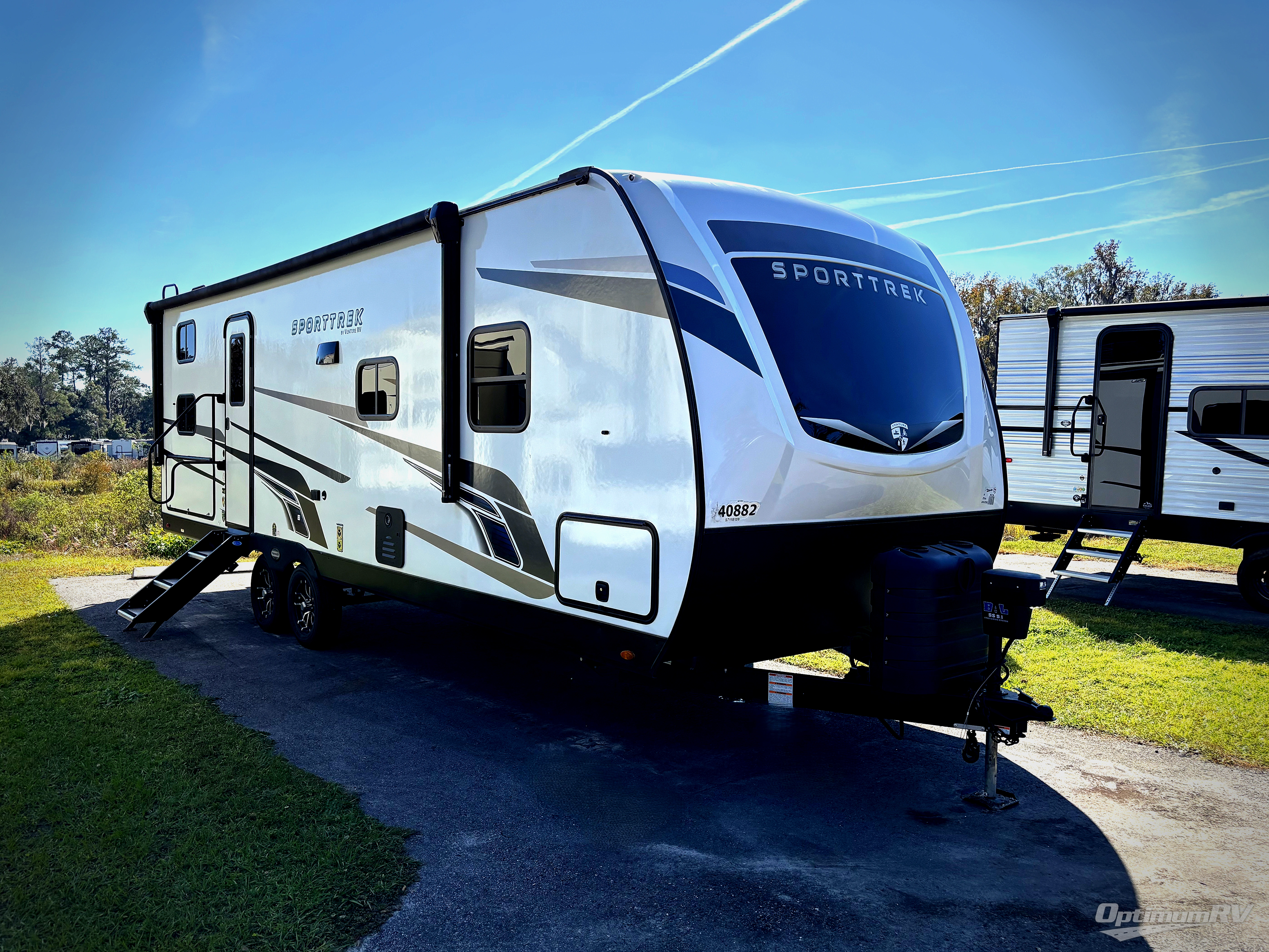 Every Venture RV SportTrek lightweight travel trailer is constructed to offer peace of mind and the comforts of home! Their purposeful residential kitchens are packed with handy features like a Furrion oven and three burner cooktop, a large stainless steel sink with a cover and dish drying rack, plus a 12V refrigerator. You will find plenty of storage throughout, including Safe-Tek hidden storage with a charging center and StorMore nightstands on either side of the bed behind the full-length closets. And the magnetic slam-latch baggage doors and spacious pass-through storage area will hold your outdoor gear in place. They even come with a hot and cold exterior shower and SporTrek's Weather Shield which includes a forced air heated and enclosed underbelly, high output A/C ducting, and more features that will let you extend your camping season. You will also love the new residential upgraded furniture, Serta memory foam mattress, barn style passage doors, and many more comforts!