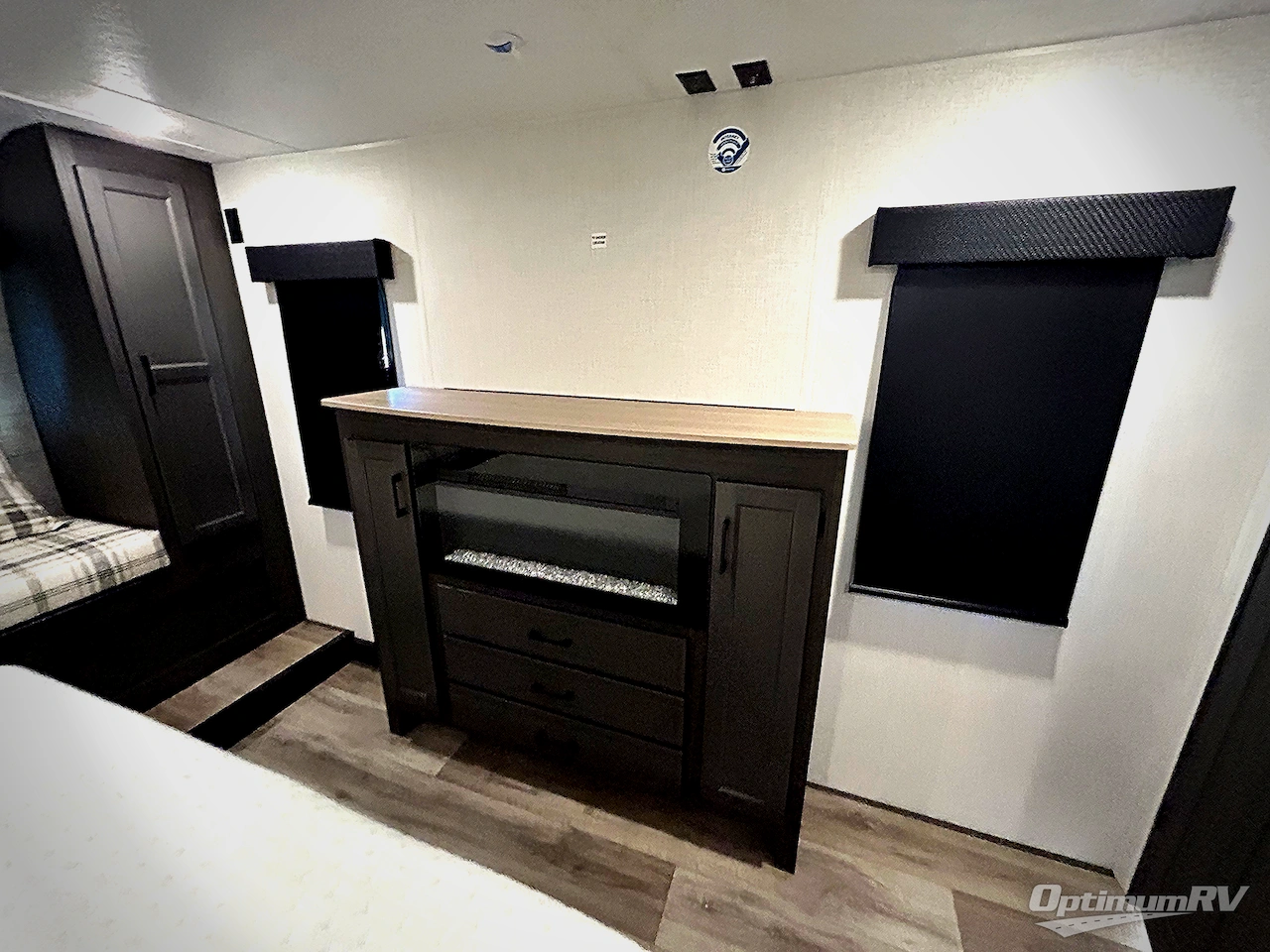 The whole family will have a great time camping in this fifth wheel! The kiddos will enjoy their own privacy with the rear private bunkhouse which has a bunk over bunk, a top bunk above a 70" sofa with table slide, and even its very own half bathroom. With a front private bedroom as well, you will have your own privacy with a Serta king mattress to lay your head on at night, a comfortable window seat to read a book by the 5,000 BTU fireplace, and a shelf storage closet to keep things organized. Everyone can clean up in the 48" fiberglass shower with a seat in the full bathroom, and keep their bellies full with the fully equipped kitchen which even has a 18" GE stainless steel dishwasher at the kitchen island. Relax on the 70" tri-fold sofa in front of the 5,000 BTU fireplace or play a few card games at the table with two chairs and two Versa benches!