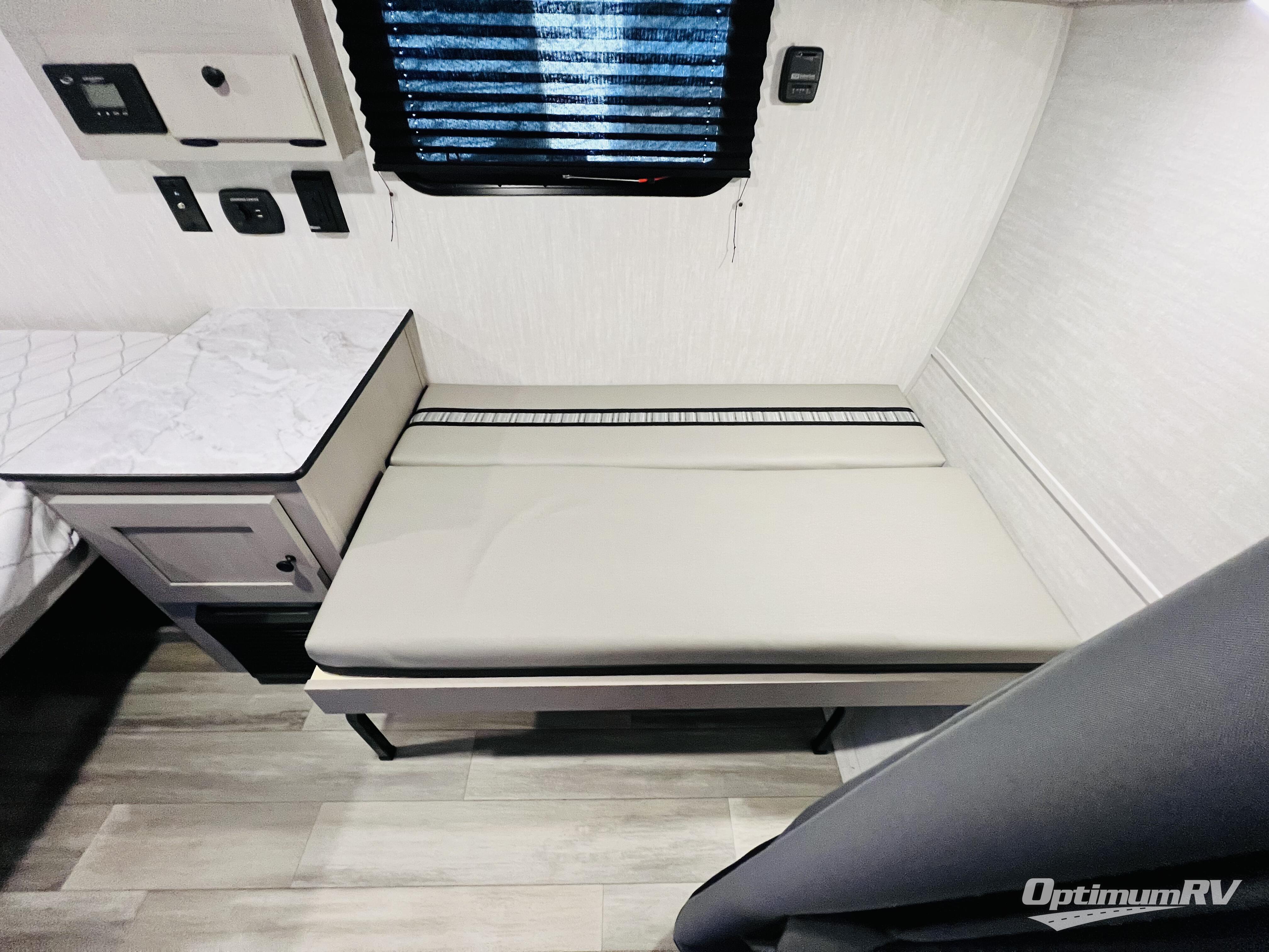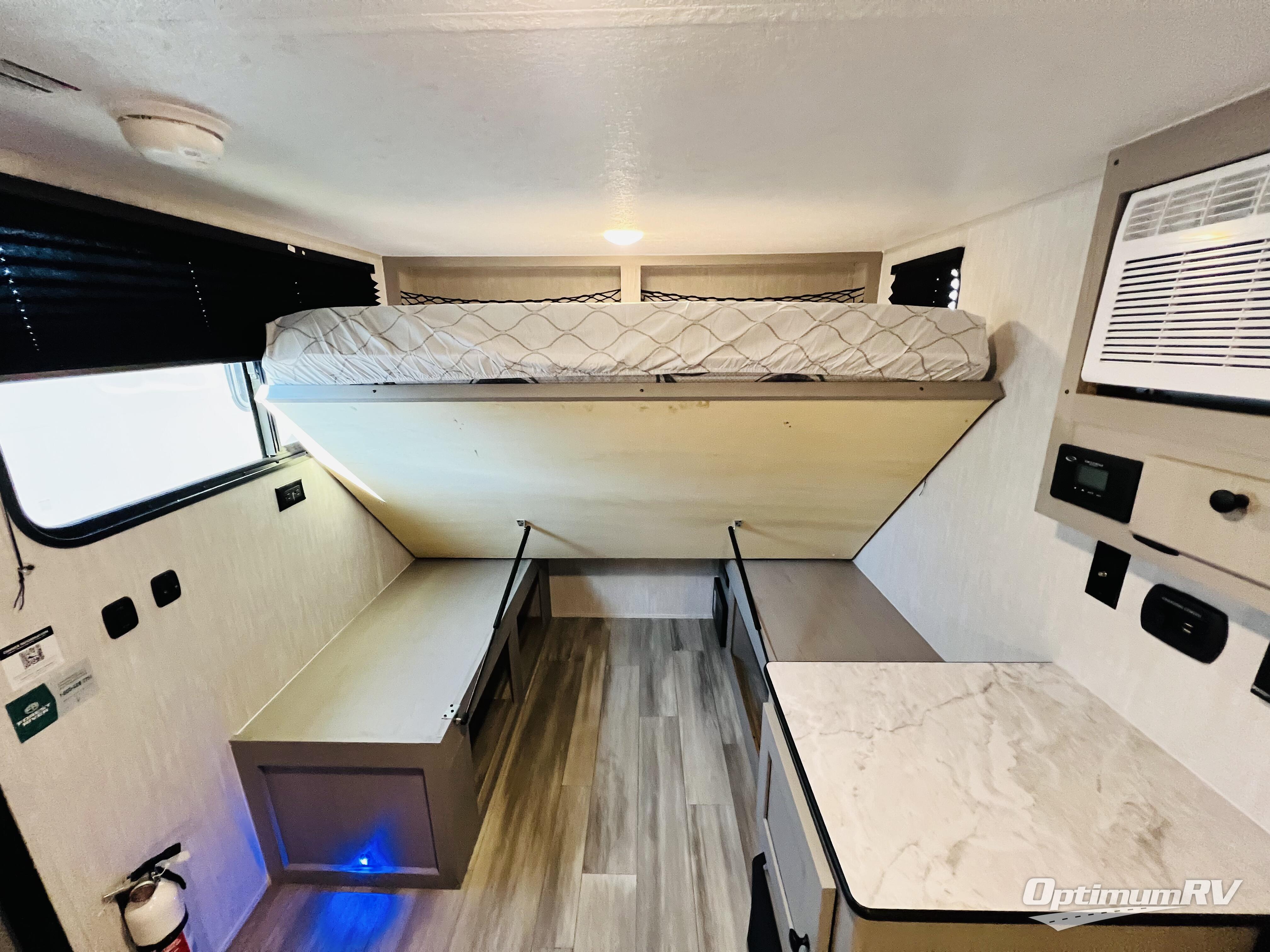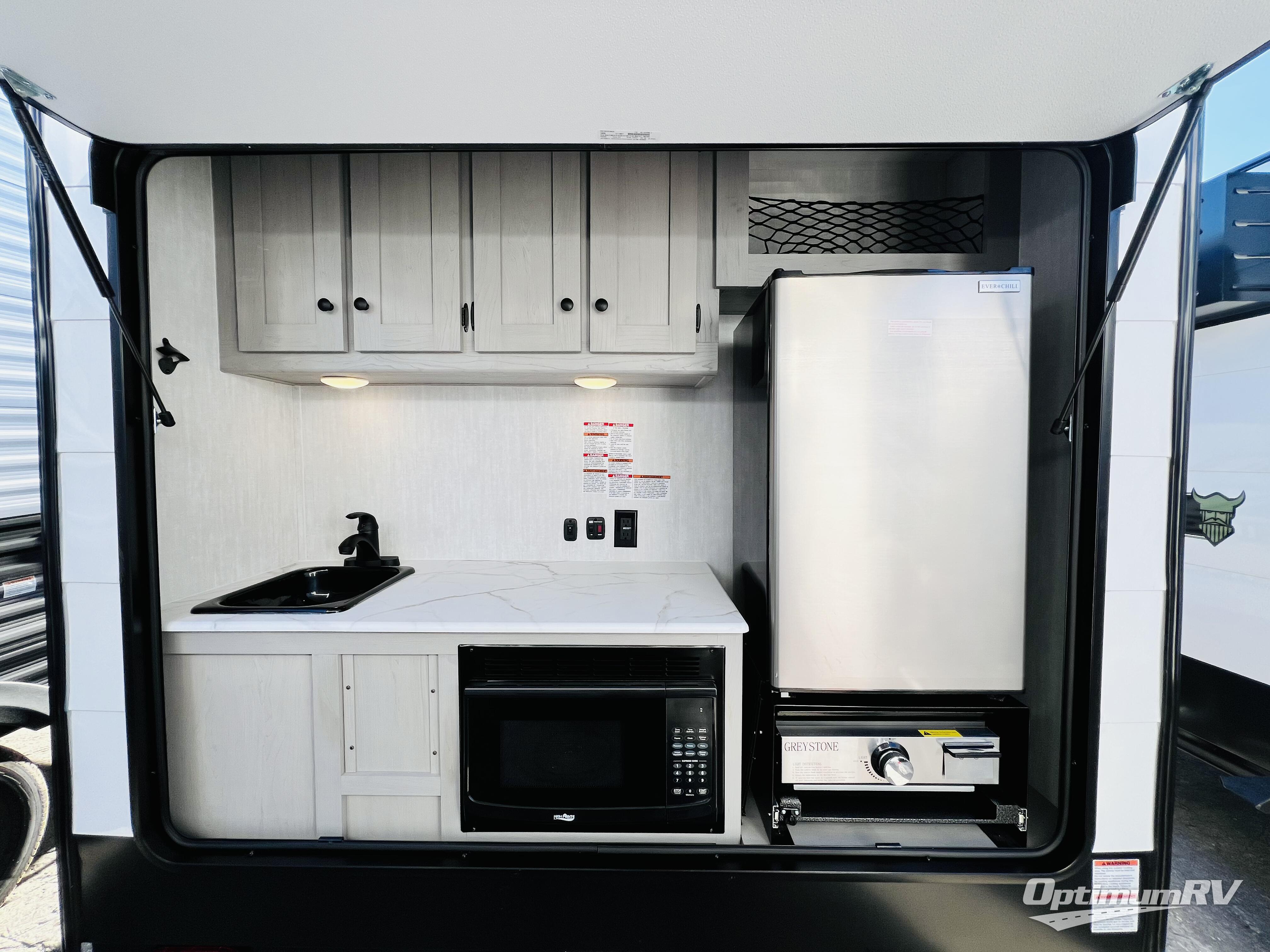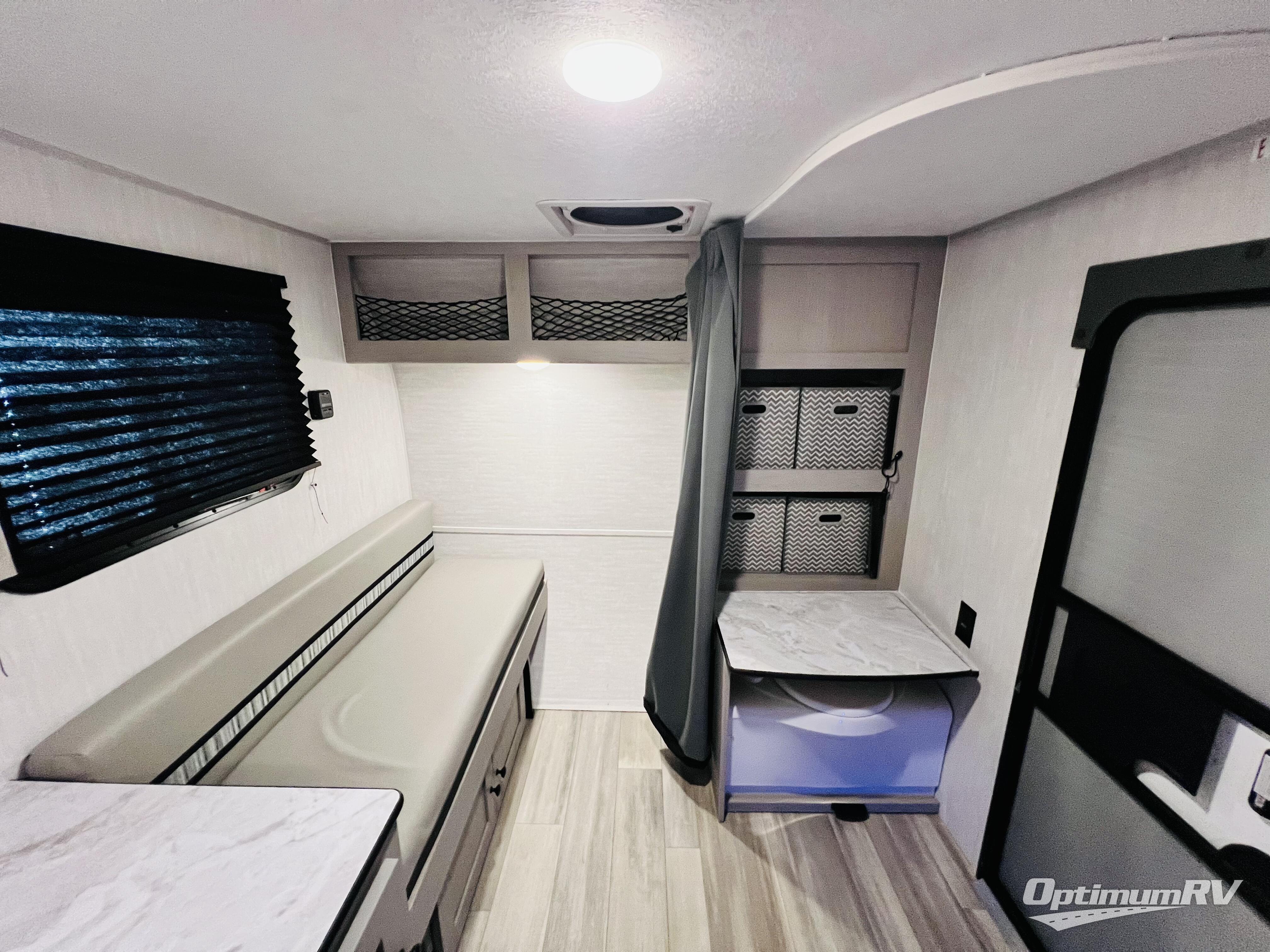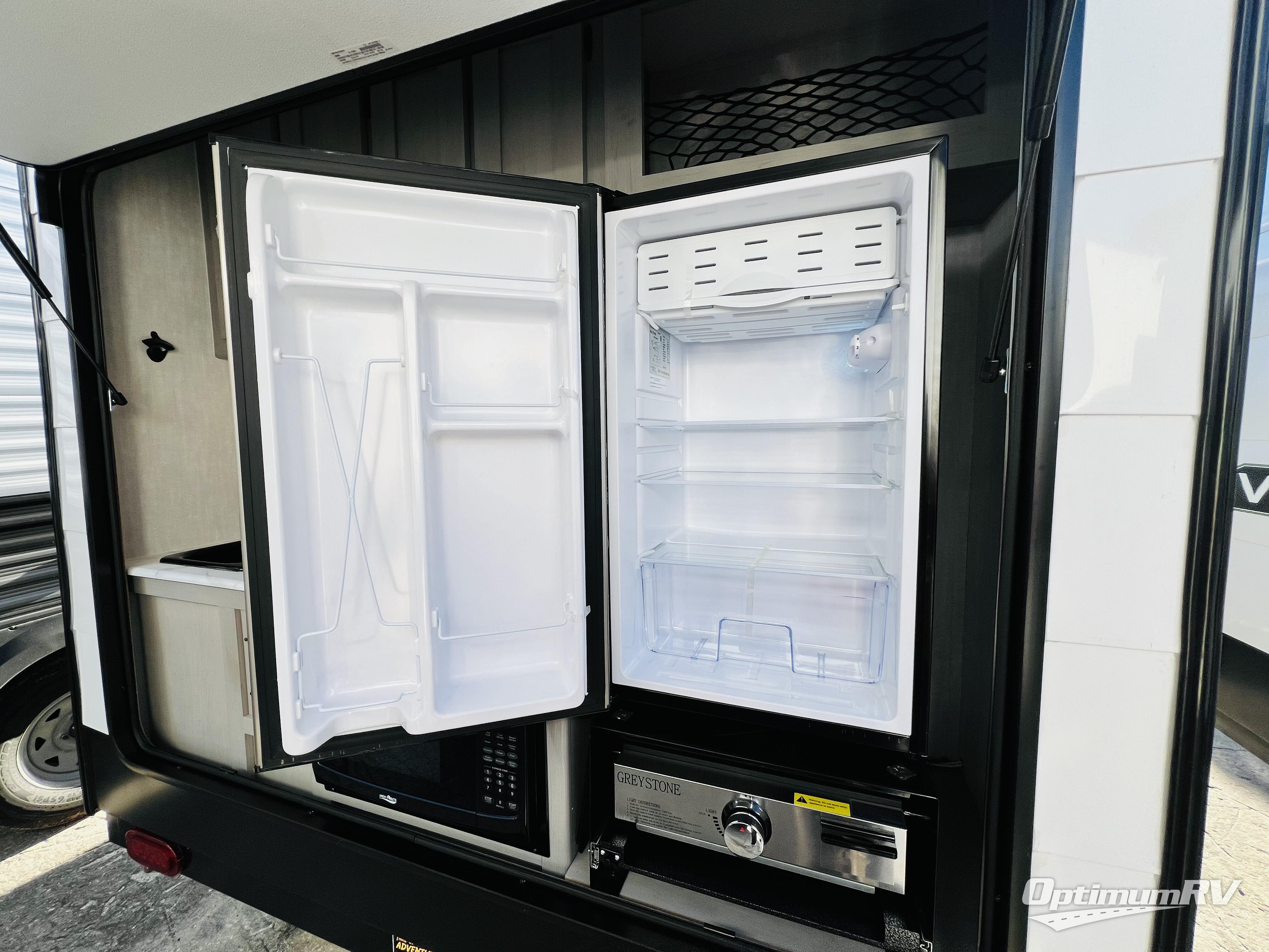 When you want to explore choose this teardrop trailer for your basic off-road adventure needs and a bit more by offering you a 54" X 74" flip-up bed with storage beneath, and gaucho seating that pulls out into a bed for an additional camper at night. There is front and rear overhead cabinetry for storage, and a cassette toilet for added convenience especially at night. A rear hatch camp kitchen provides a place for you to create meals and snacks while you explore. There is a slide-out griddle and grill combo cooktop, a 3.3 cu. ft. 12-volt refrigerator for your cold items, a single sink, and two burner cooktop, plus a microwave oven. A 9' power awning creates a bit of added outdoor living space where you can set up your camp chairs. You can also add an optional roof-top tent for additional sleeping.