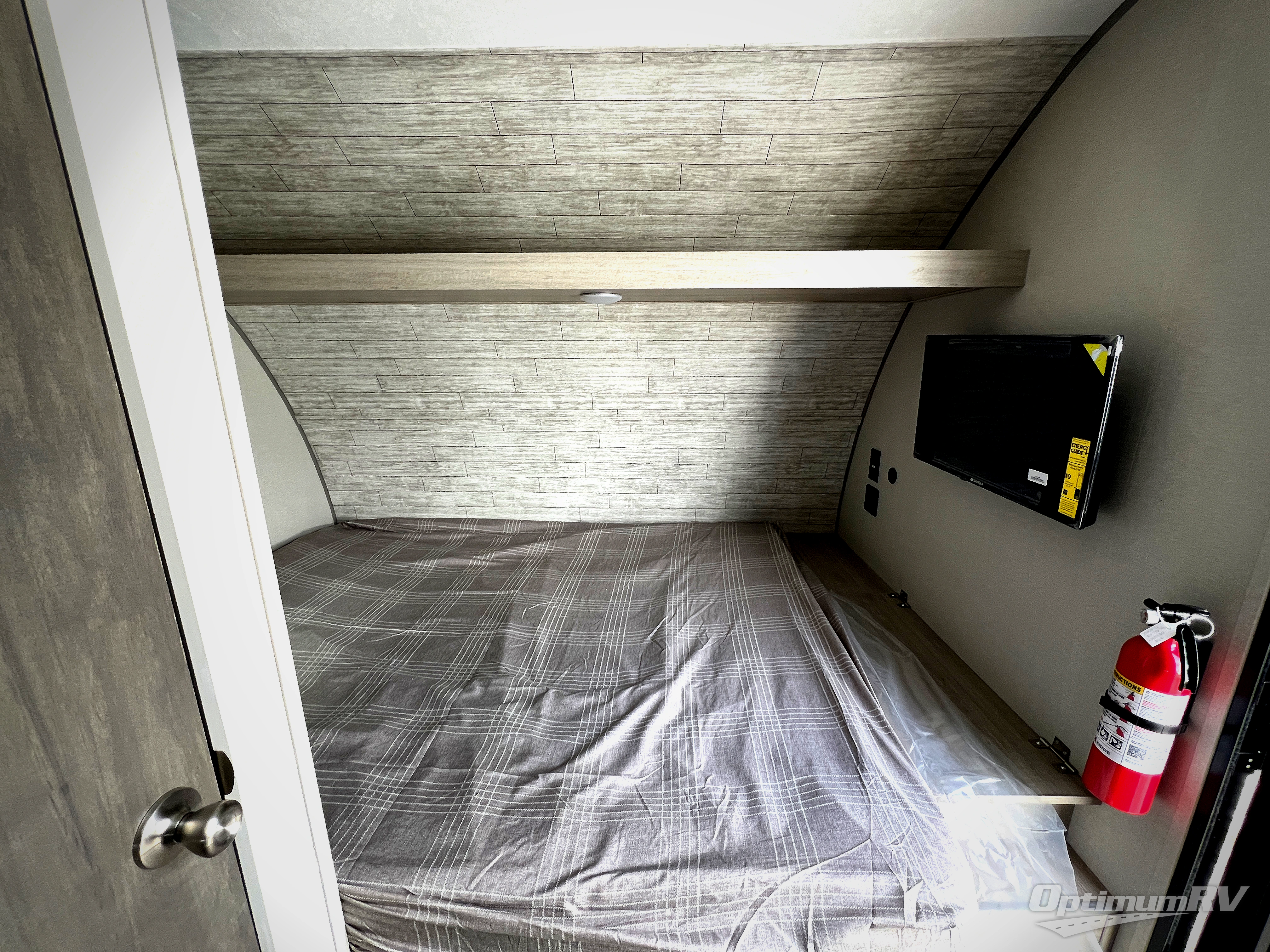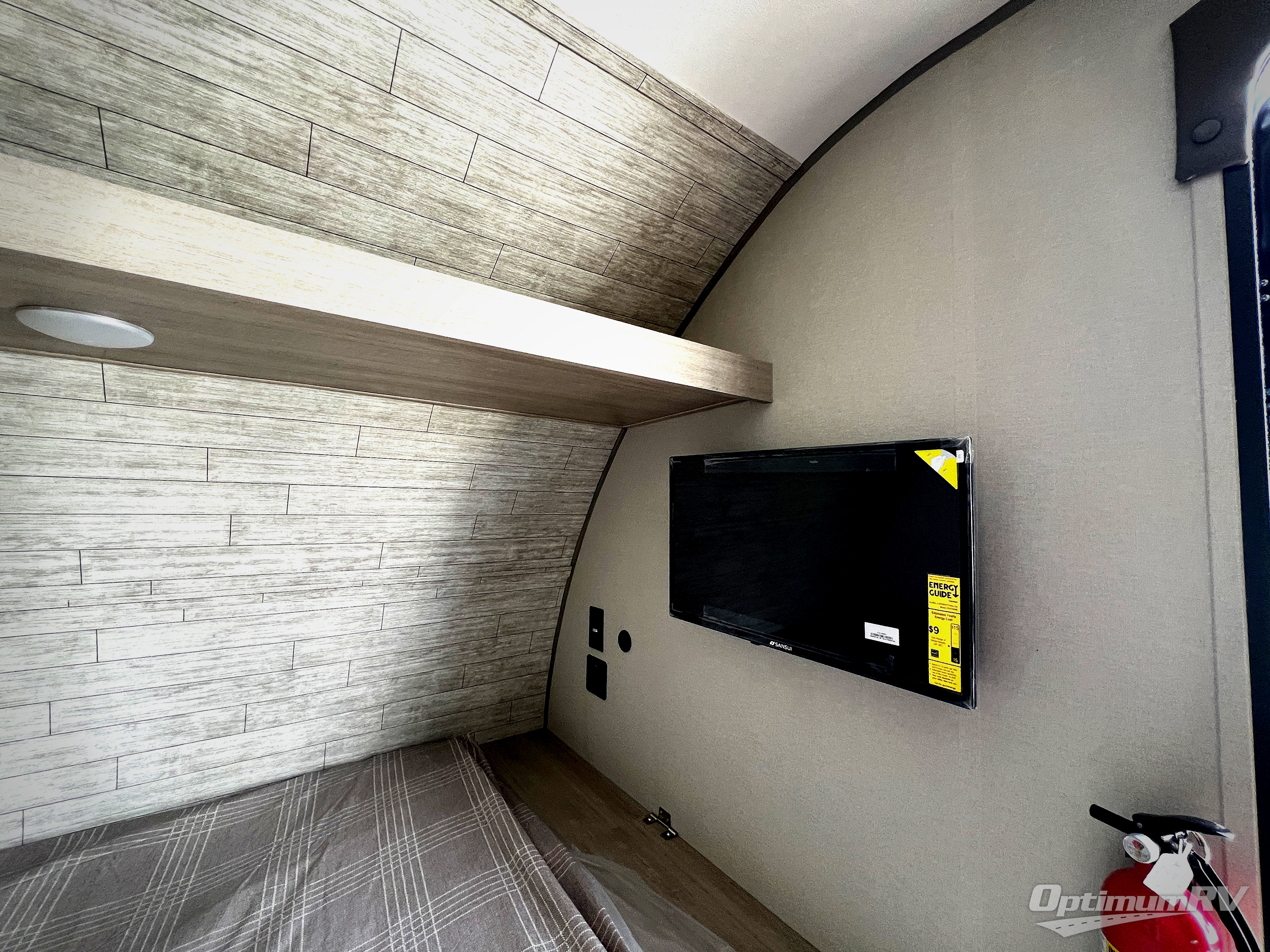 The perfect unit for a cozy weekend retreat for two or three! There is a queen bed up front with overhead storage and more at the foot of the bed to keep your things tidy. The rear of the unit offers a U-shaped dinette that is great for watching TV or playing cards and games, plus it has an end table and a handy overhead shelf. A mid-coach bath includes a 36" x 30" shower and toilet with foot flush, and a mirror. This model also includes a GE two burner cooktop, a GE stainless microwave oven, plus a 3.3 cu. ft. 12V refrigerator to keep food fresh!